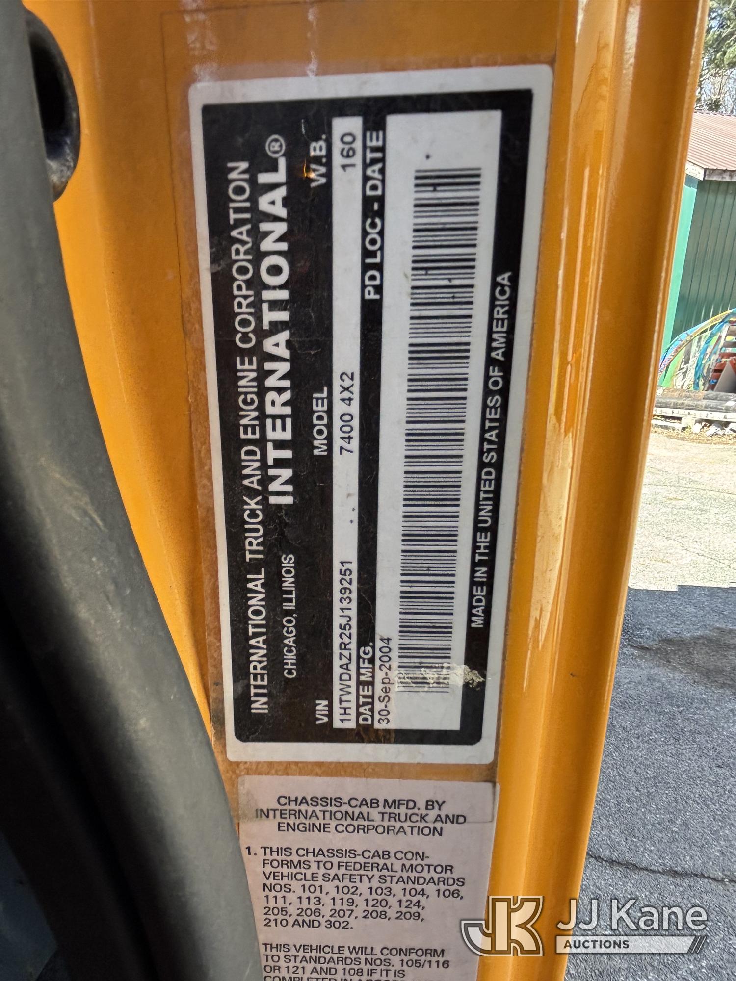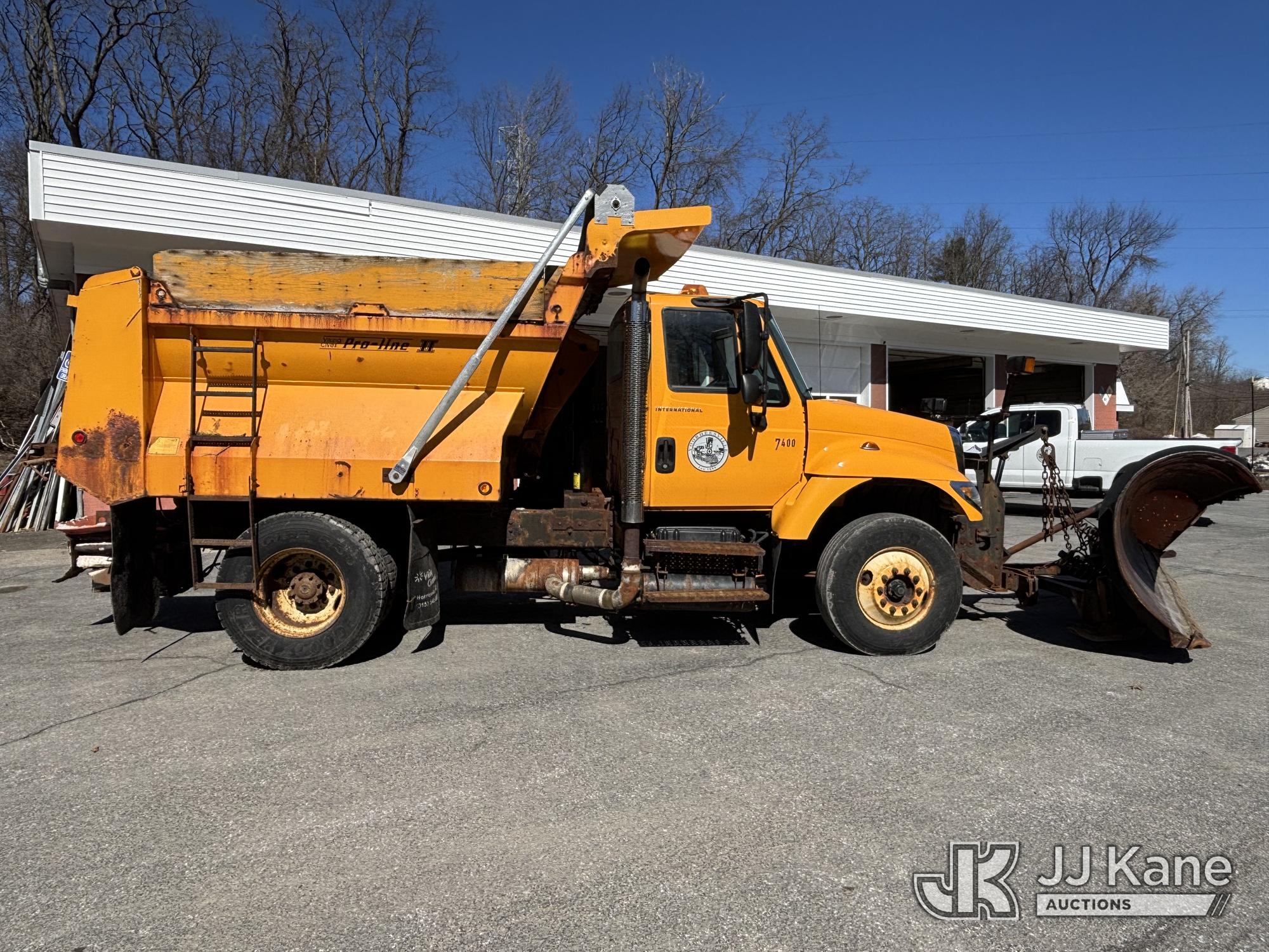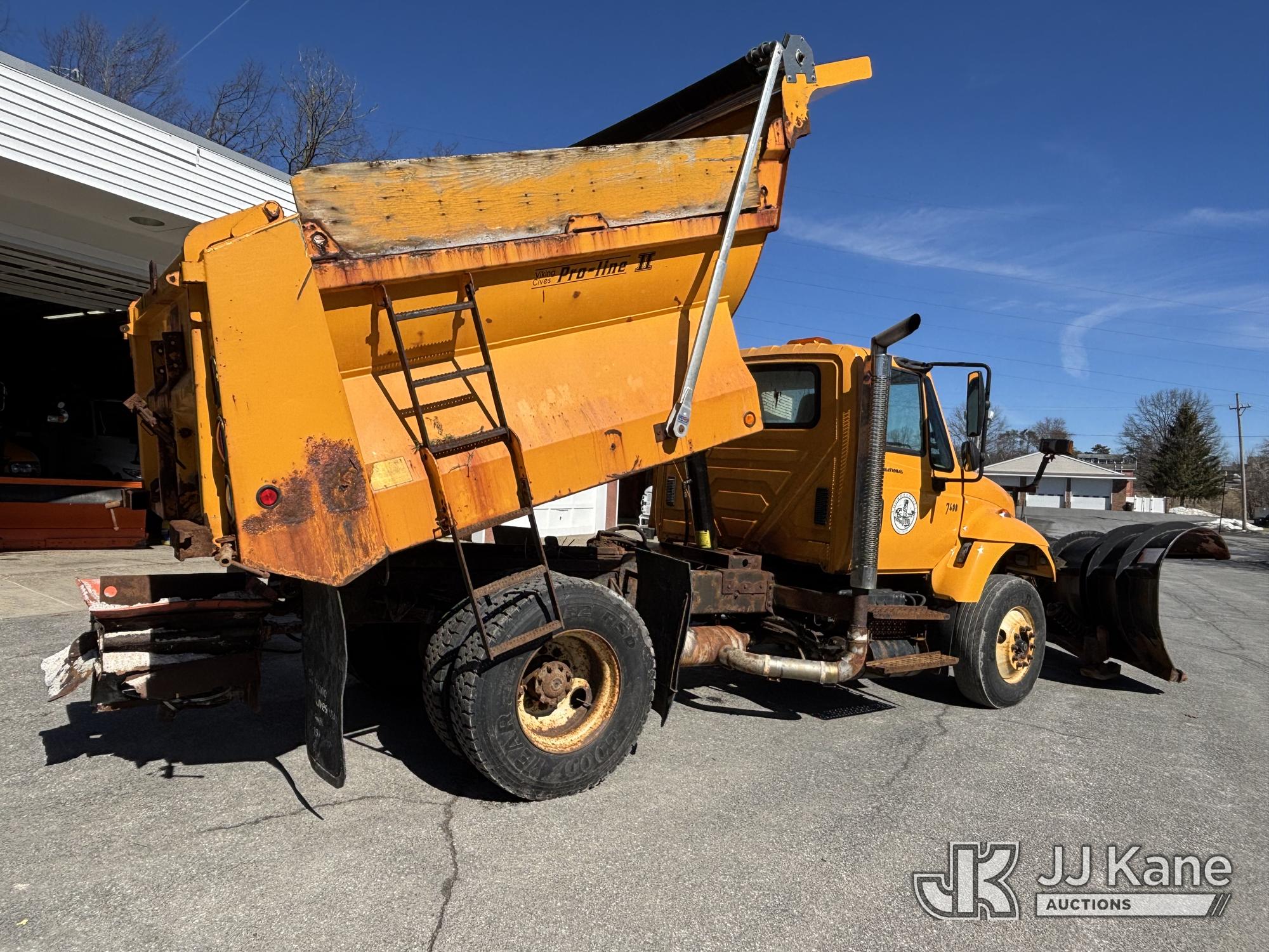 2005 International 7400 Dump Truck, 9.3L L6 Diesel, 4X2, Auto, A/C, with Tenco Snowplow & Viking Cives Proline II All Season Spreader/Dump Body, (Exempt from Odometer Disclosure - Reads 25,823 miles) (Runs, Moves & Operates, Salt Spreader Operates, Rust On Exposed Metal) This is a Titled Item*