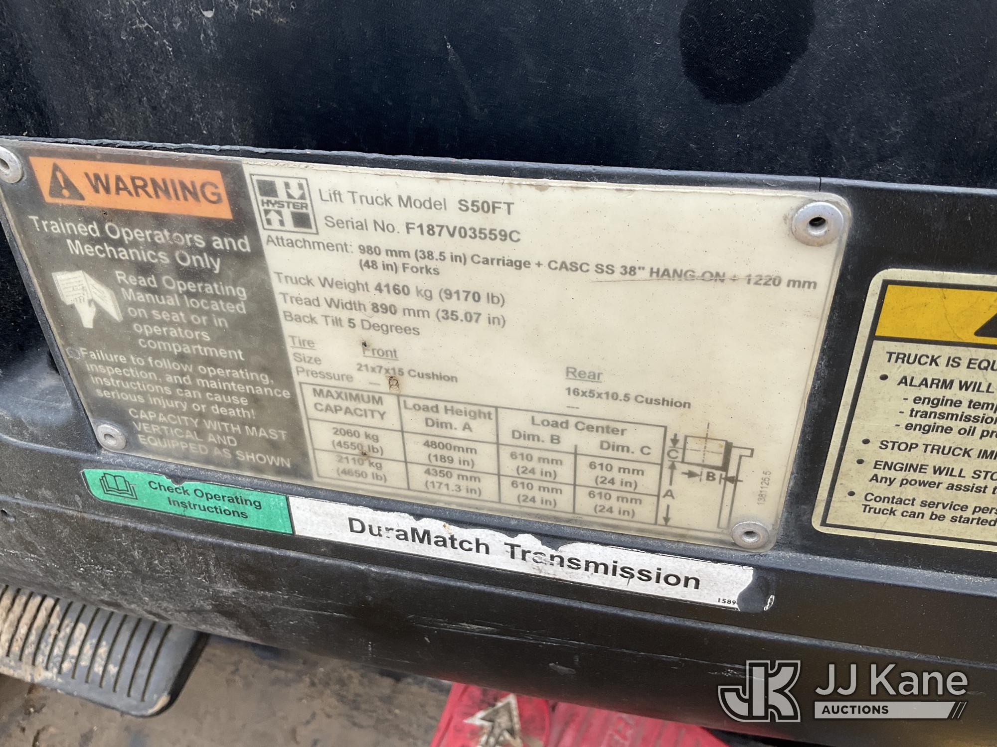 Hyster S50FT Forklift, s/n F187V03559C, LPG, (Turns Over, Wont Start, Condition Unknown)*