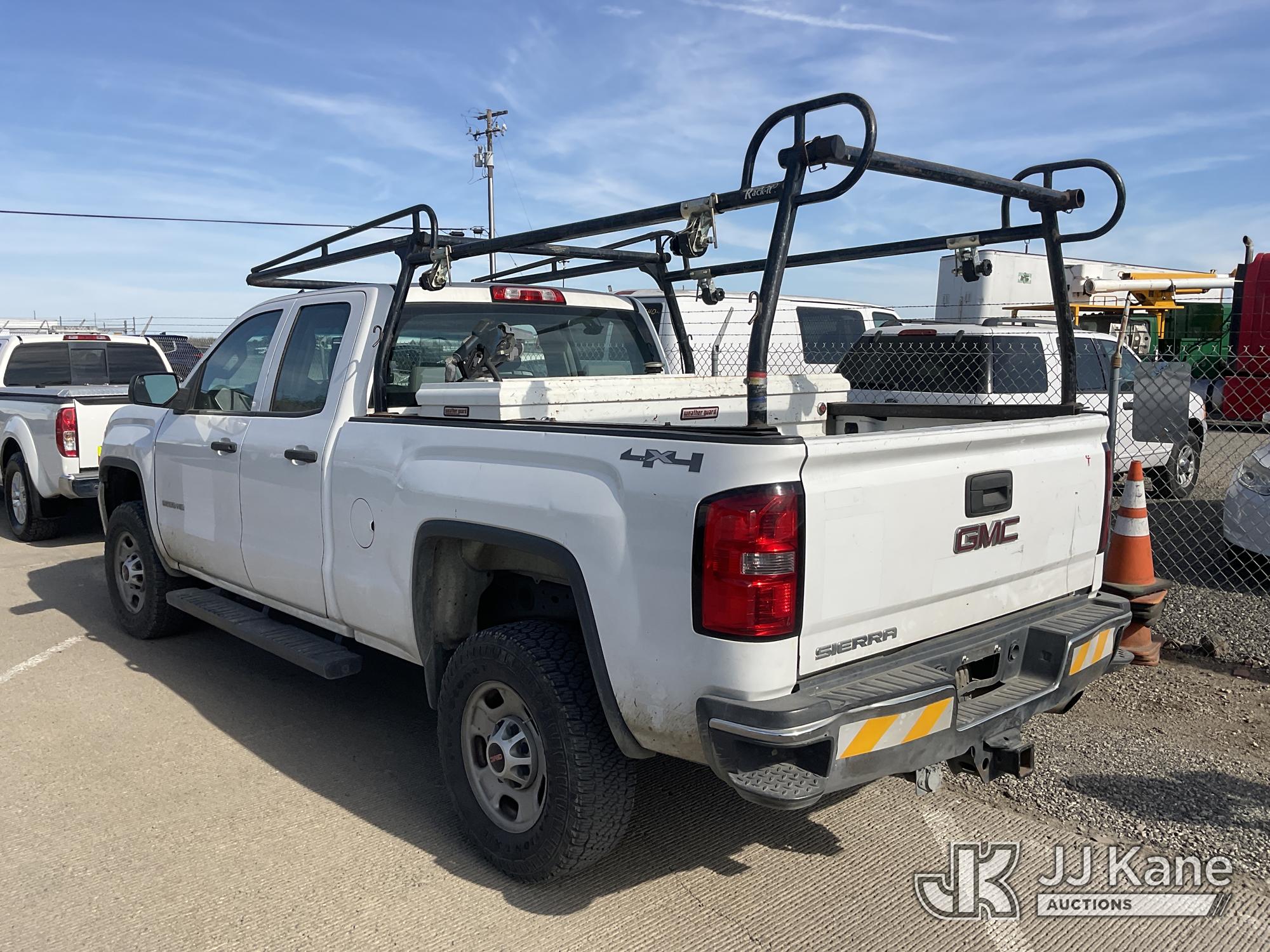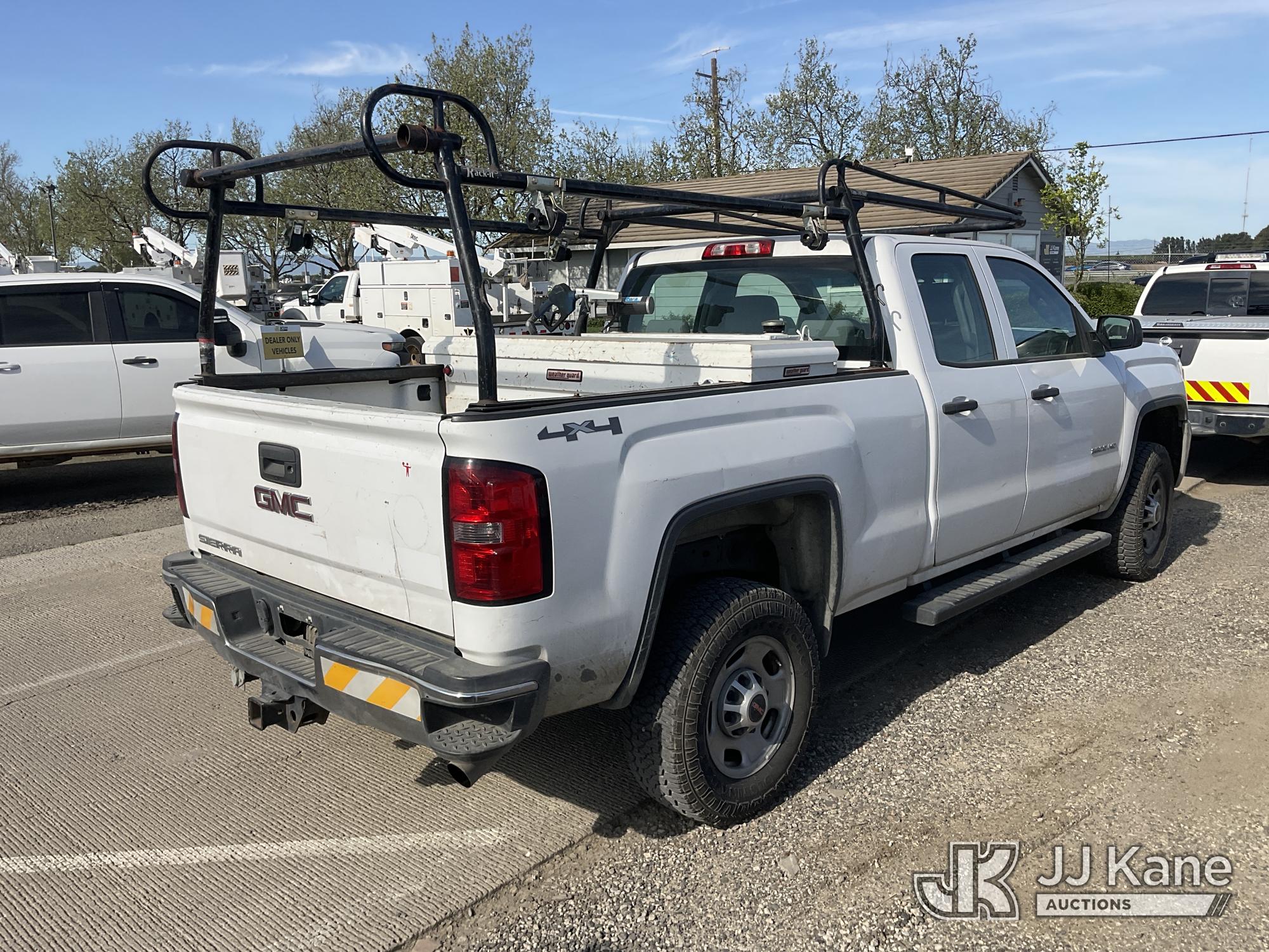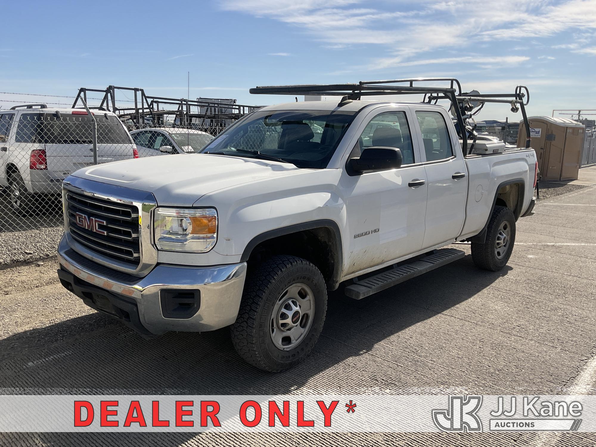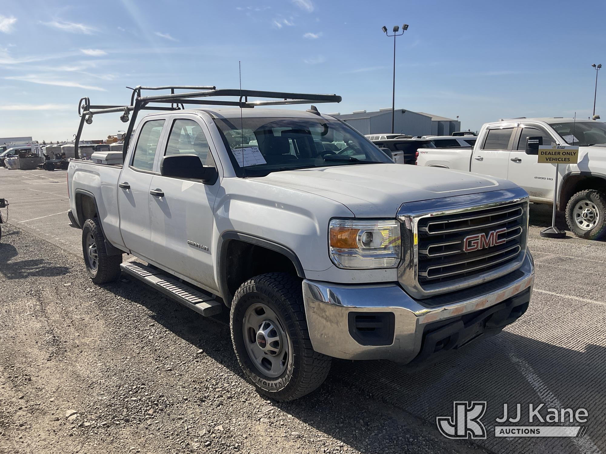 2015 GMC Sierra 2500HD Extended-Cab Pickup Truck, s/n 1GT22XEG4FZ549917, 6.0L V8 OHV 16V 4WD, FFV, 6-Speed Automatic, A/C, with Tow Package, Ladder Rack, Tool Box, Fuel Pump With Tank, (229,964 miles) True Mileage Unknown (Runs & Moves, Check Engine Light On, Front Bumper Damage) (Bidding Restricted to Licensed Vehicle Dealers Only), This is a Titled Item*