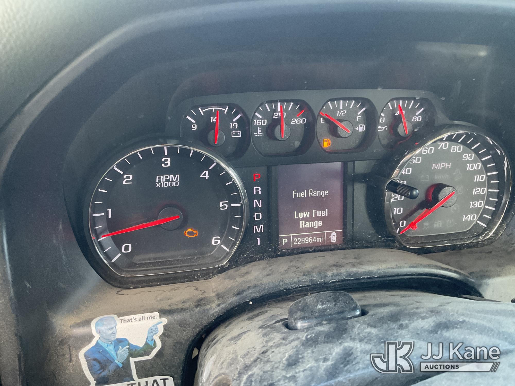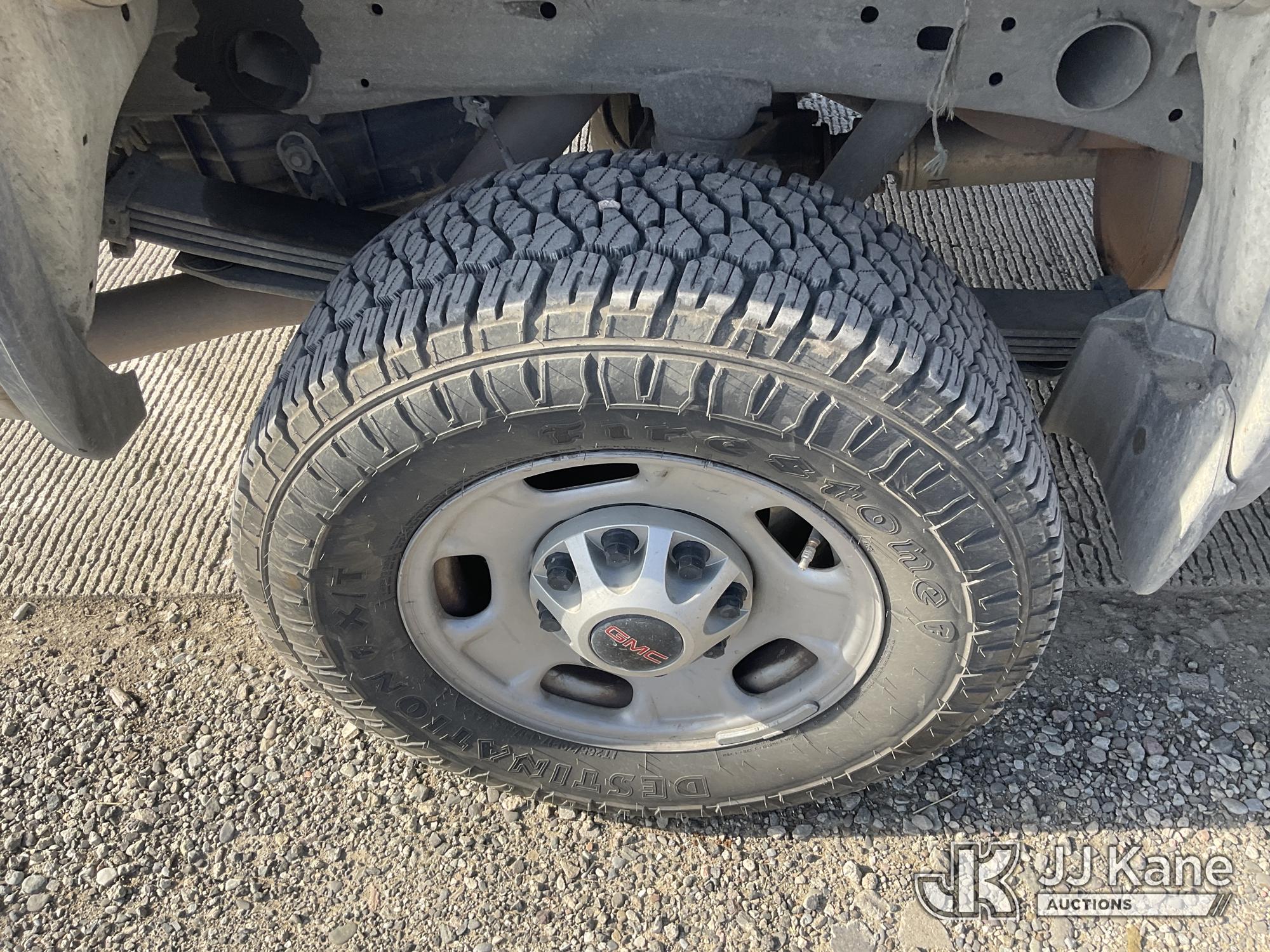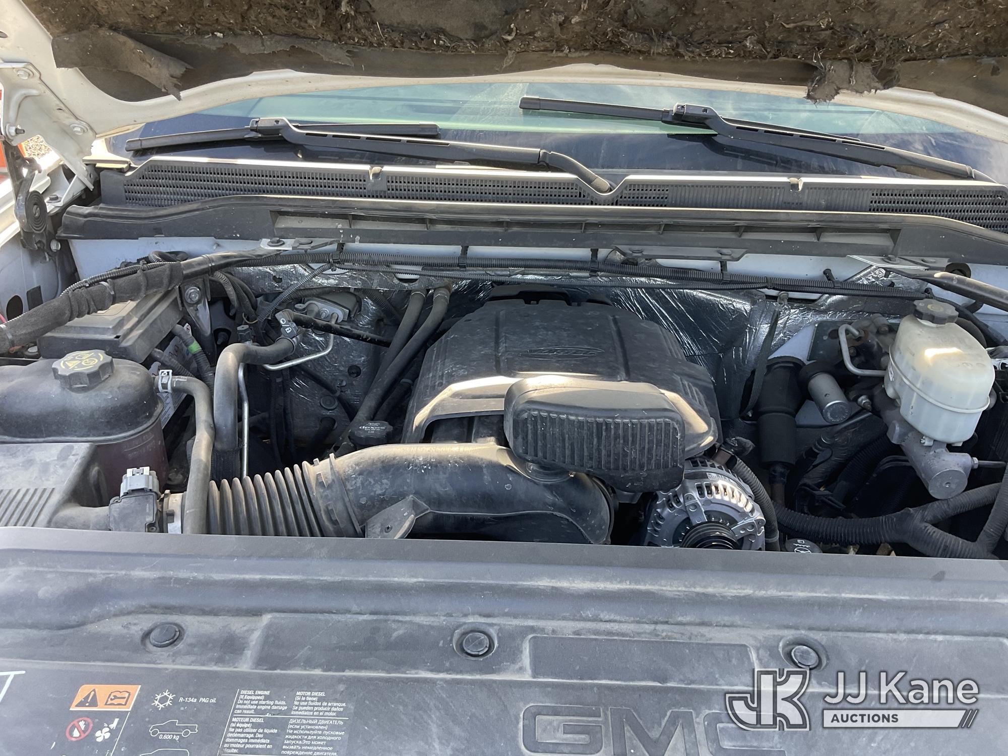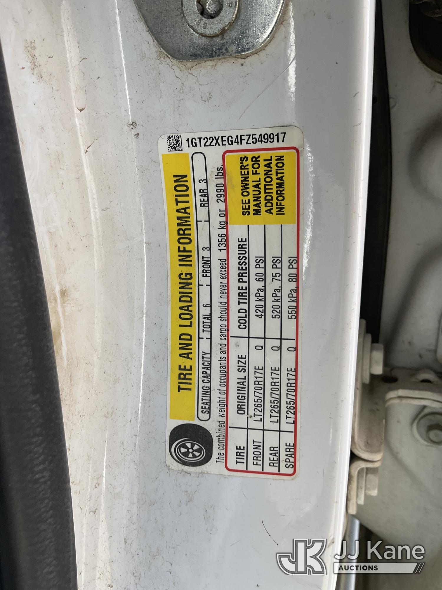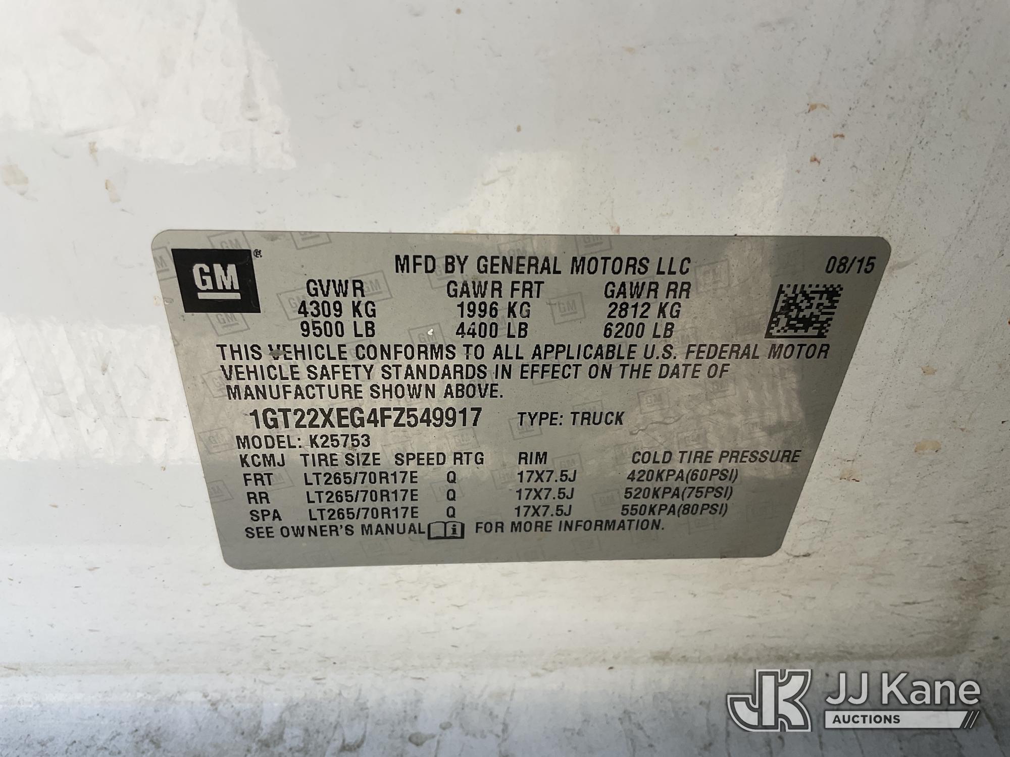 2015 GMC Sierra 2500HD Extended-Cab Pickup Truck, s/n 1GT22XEG4FZ549917, 6.0L V8 OHV 16V 4WD, FFV, 6-Speed Automatic, A/C, with Tow Package, Ladder Rack, Tool Box, Fuel Pump With Tank, (229,964 miles) True Mileage Unknown (Runs & Moves, Check Engine Light On, Front Bumper Damage) (Bidding Restricted to Licensed Vehicle Dealers Only), This is a Titled Item*