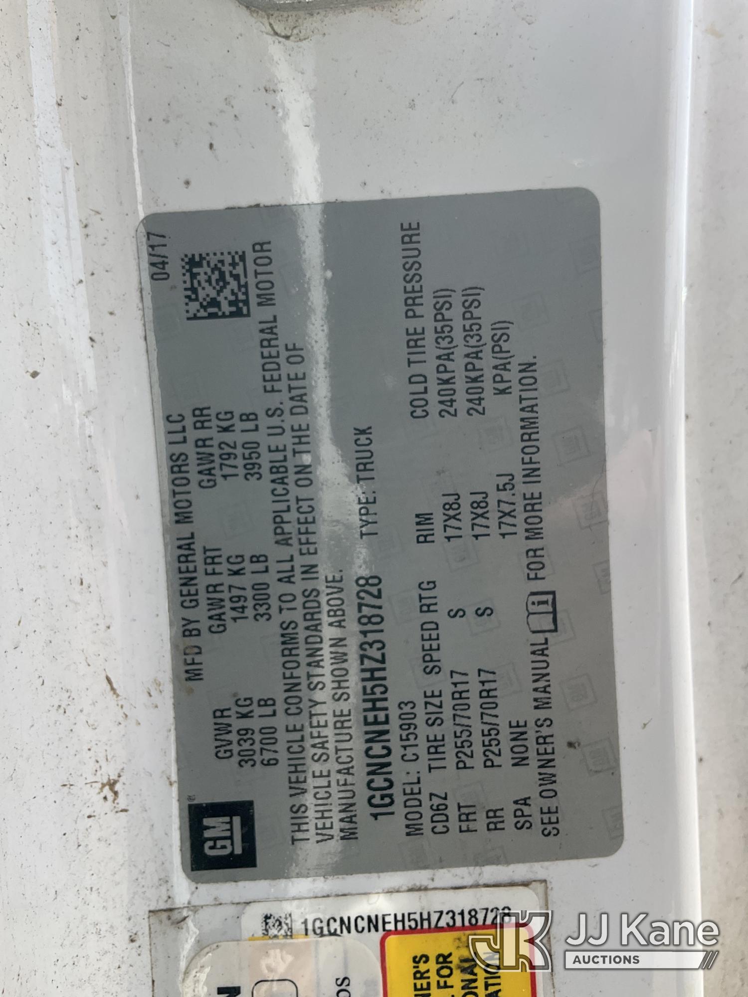 2017 Chevrolet Silverado 1500 Pickup Truck, 6-cyl gas, RWD, 6-Speed Automatic, A/C, (180,777 miles) (Runs & Moves) (Check Engine Light On, Right Rear Bedside & Right Rear Bumper Damage) (Reads 4,115 hours) This is a Titled Item*