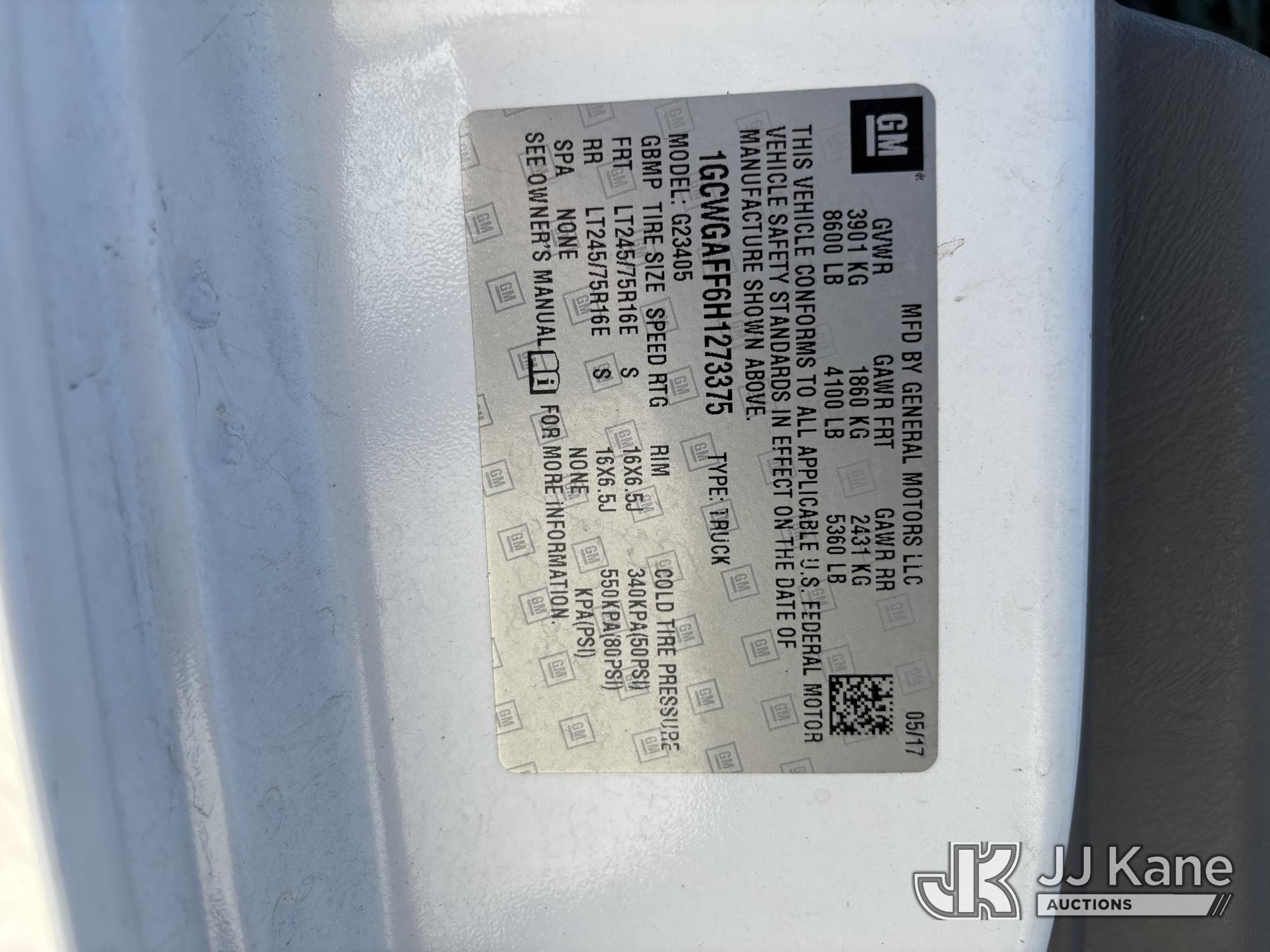 2017 Chevrolet Express 2500 Cargo Van, 8-cyl gas, RWD, Auto, A/C, (85,625 miles) (Runs & Moves) (Runs Rough, Rough Idle, Check Engine Light On, ABS Light On, ESC Light On, Body & Paint Damage) This is a Titled Item*