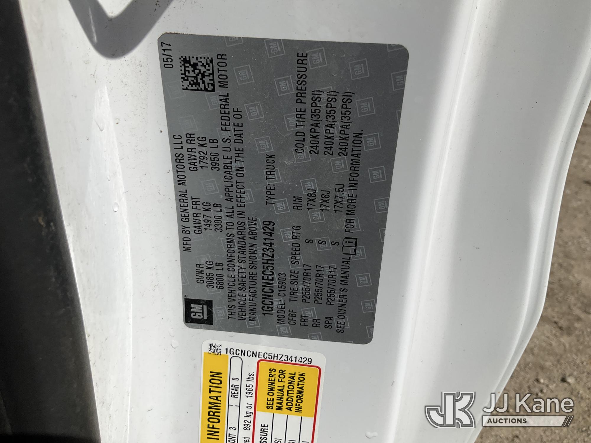 2017 Chevrolet Silverado 1500 Pickup Truck, 8-cyl gas, RWD, 6-Speed Automatic, A/C, (114,205 miles) (Runs & Moves) (Seller States: Transmission Issues Starting, Passenger Mirror missing) This is a Titled Item*