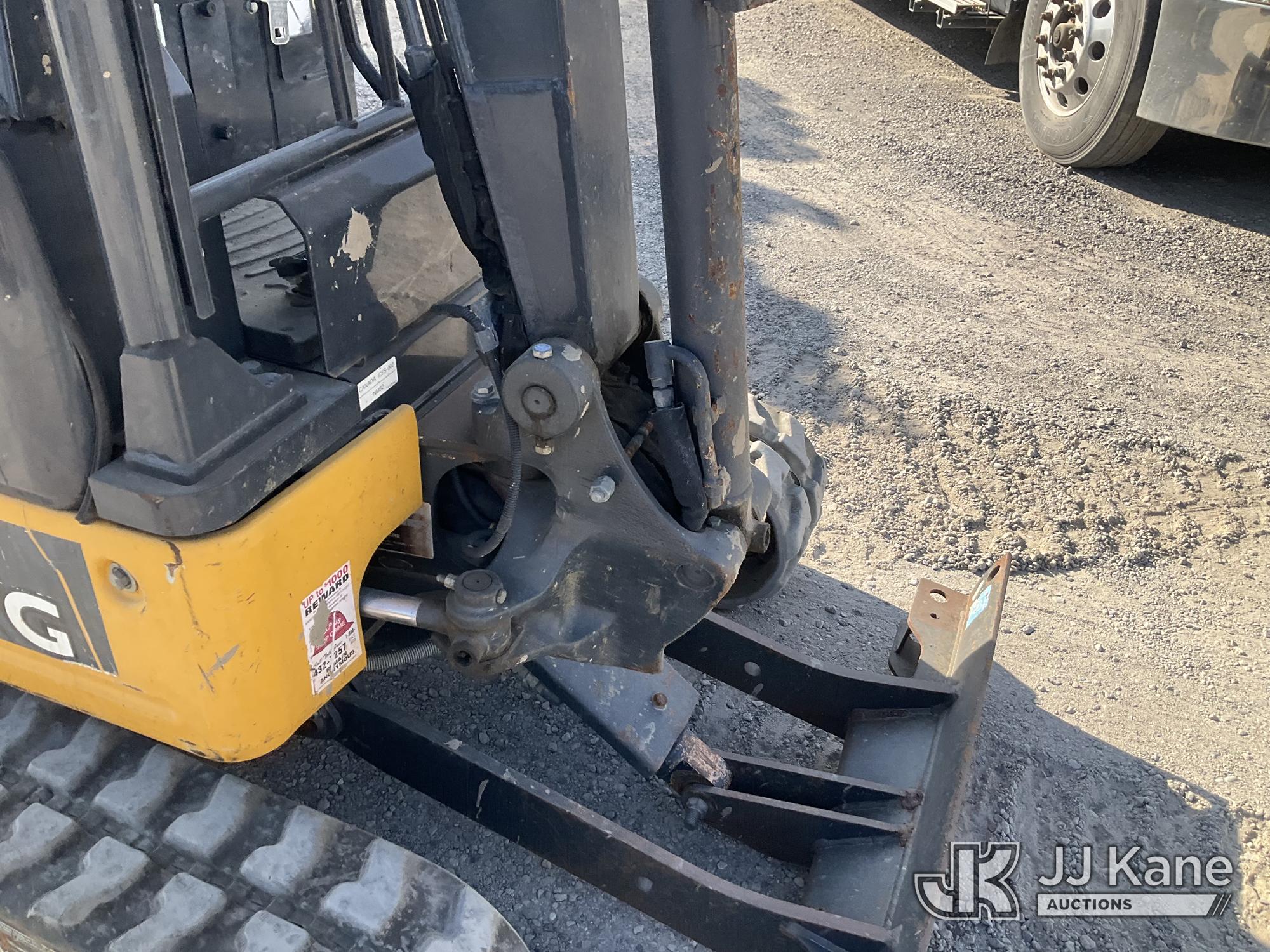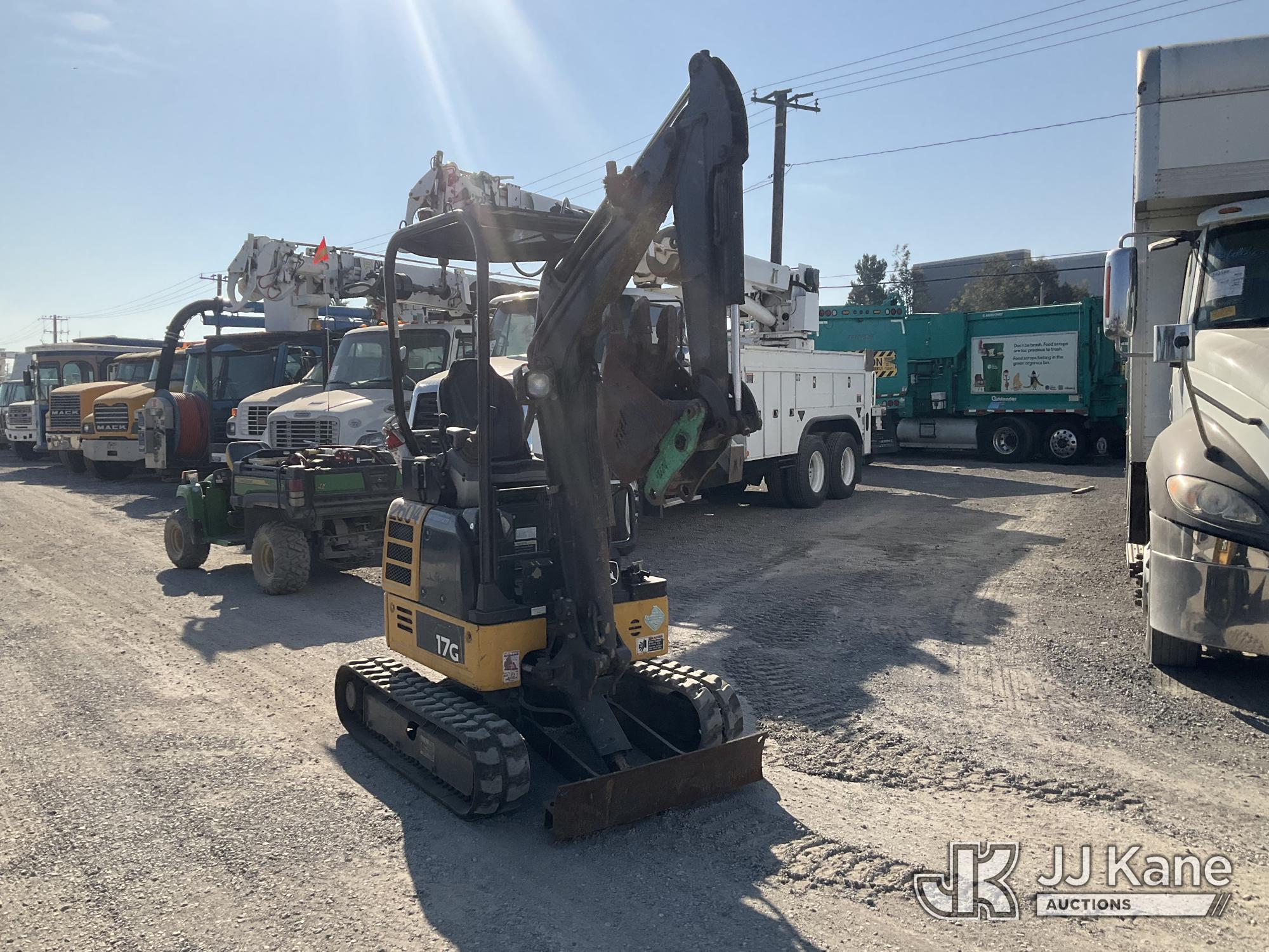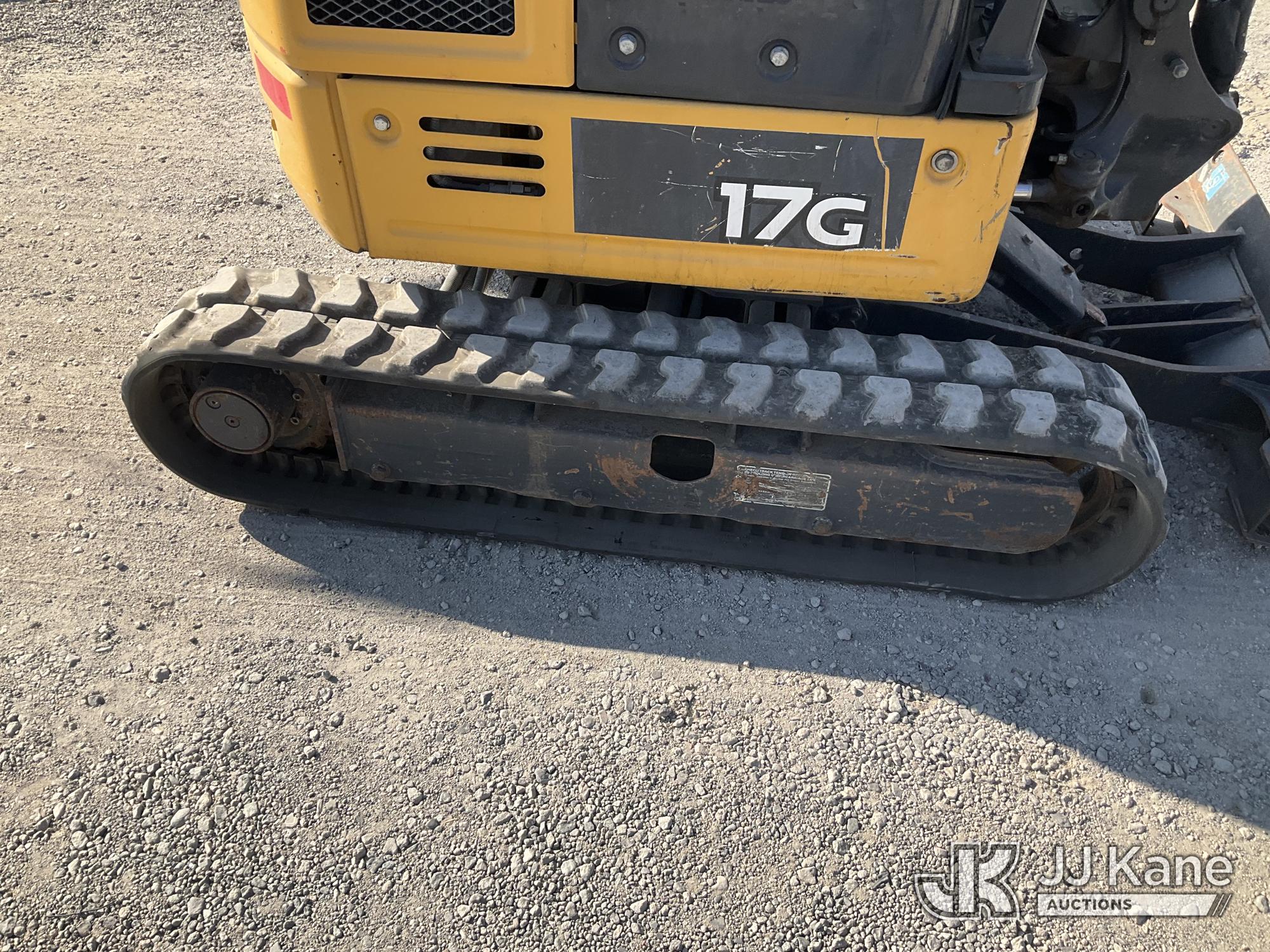 2019 John Deere 17G Mini Hydraulic Excavator, s/n 1FF017GXCJK228241, Yanmar diesel, Hydraulic Driven, with backfill blades, medium arm, 9'' rubber tracks, digging bucket, & ROPS, (Runs & Operates) (Reads 1,127 hours) May be subject to ARB Regulations*