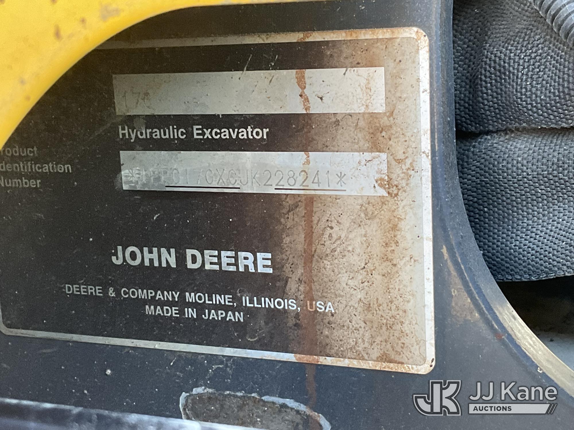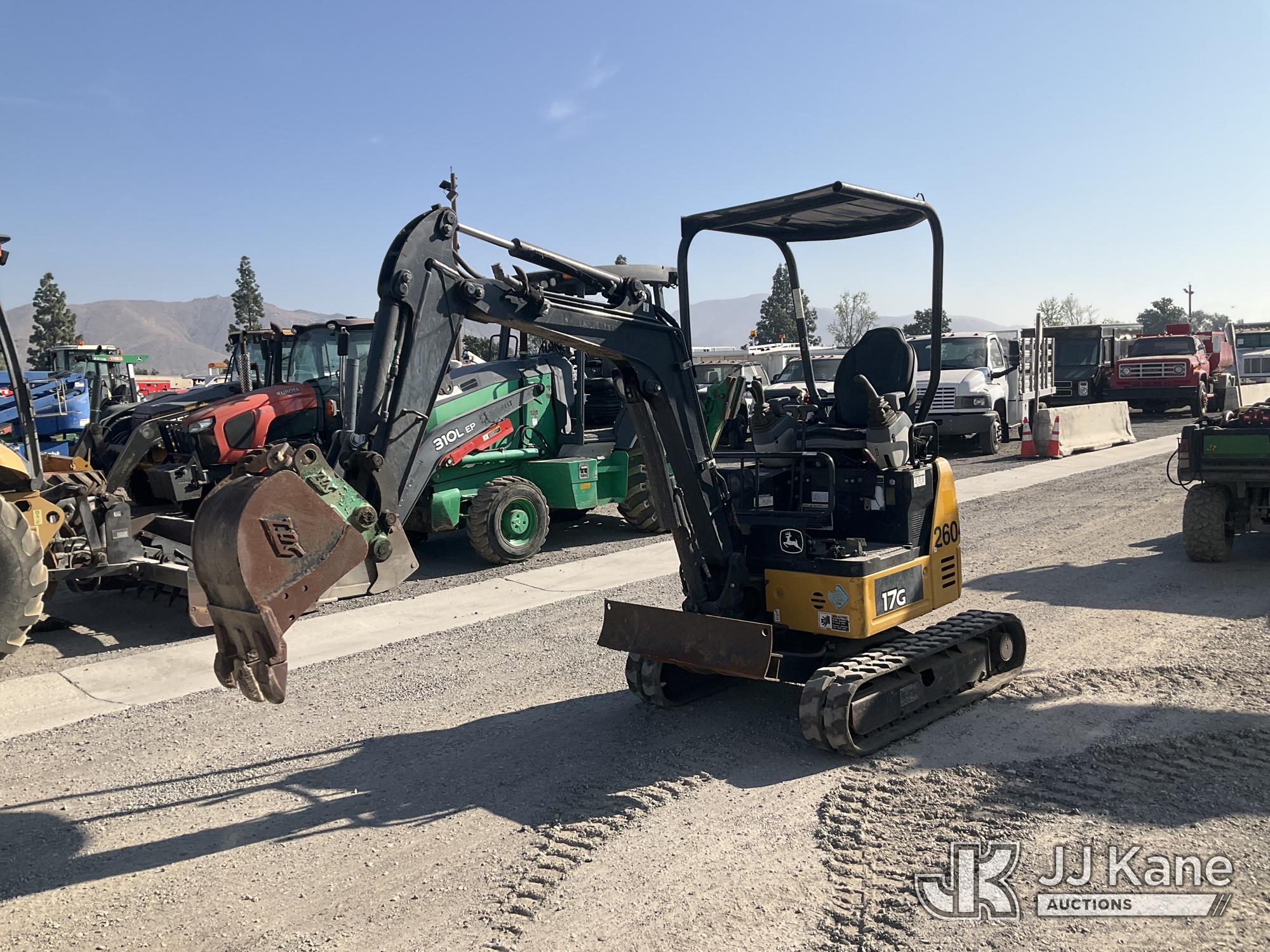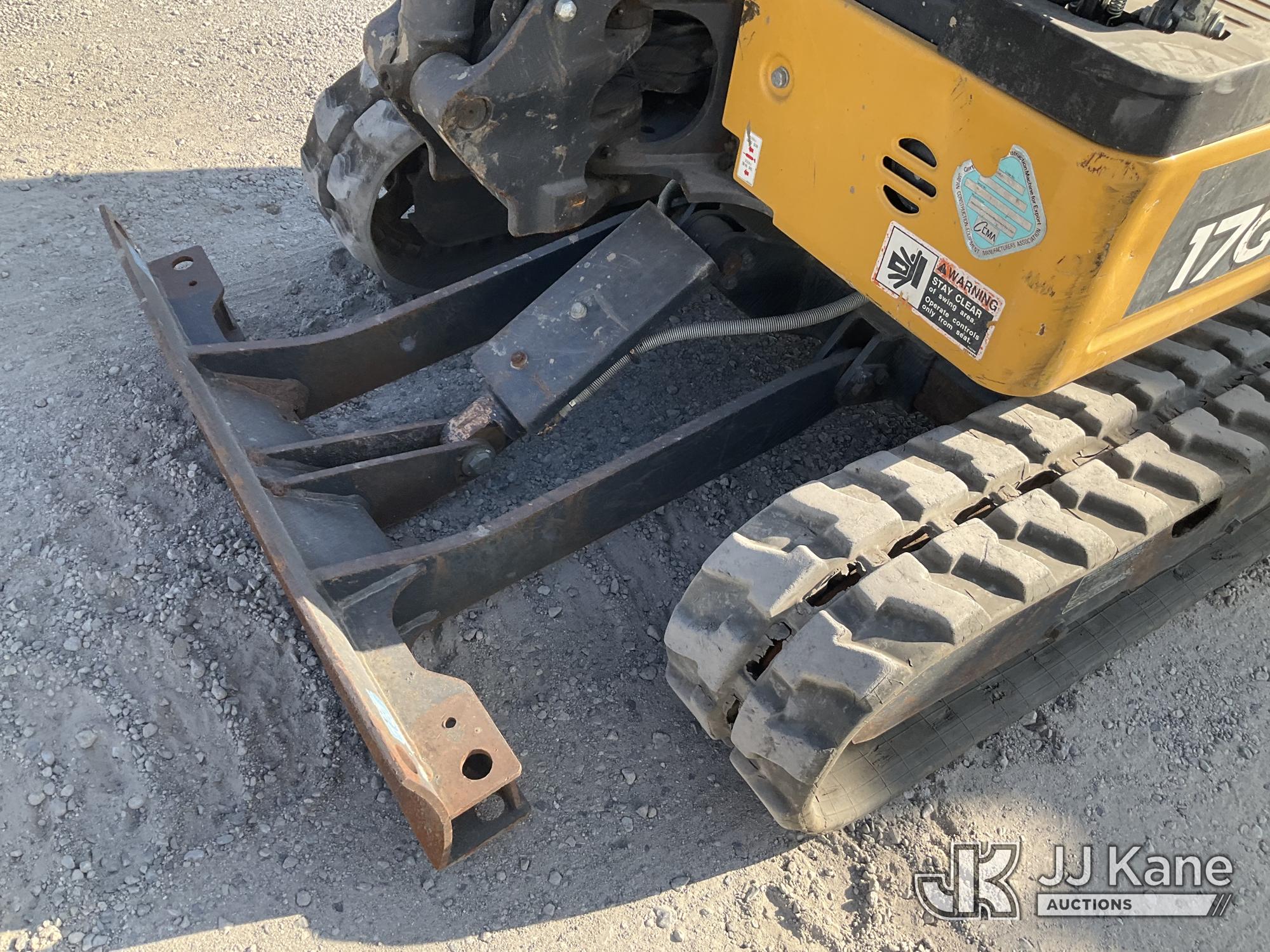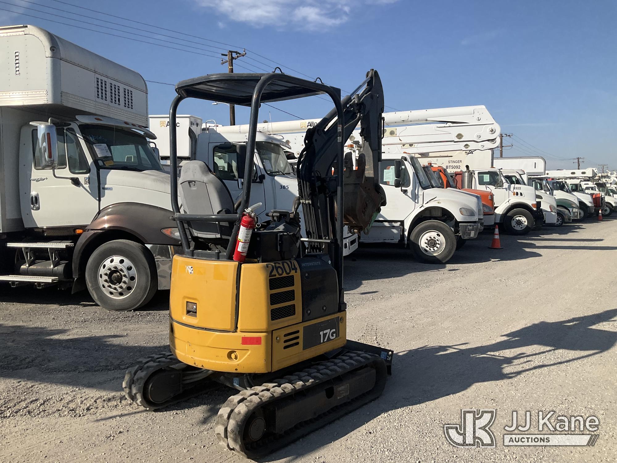 2019 John Deere 17G Mini Hydraulic Excavator, s/n 1FF017GXCJK228241, Yanmar diesel, Hydraulic Driven, with backfill blades, medium arm, 9'' rubber tracks, digging bucket, & ROPS, (Runs & Operates) (Reads 1,127 hours) May be subject to ARB Regulations*