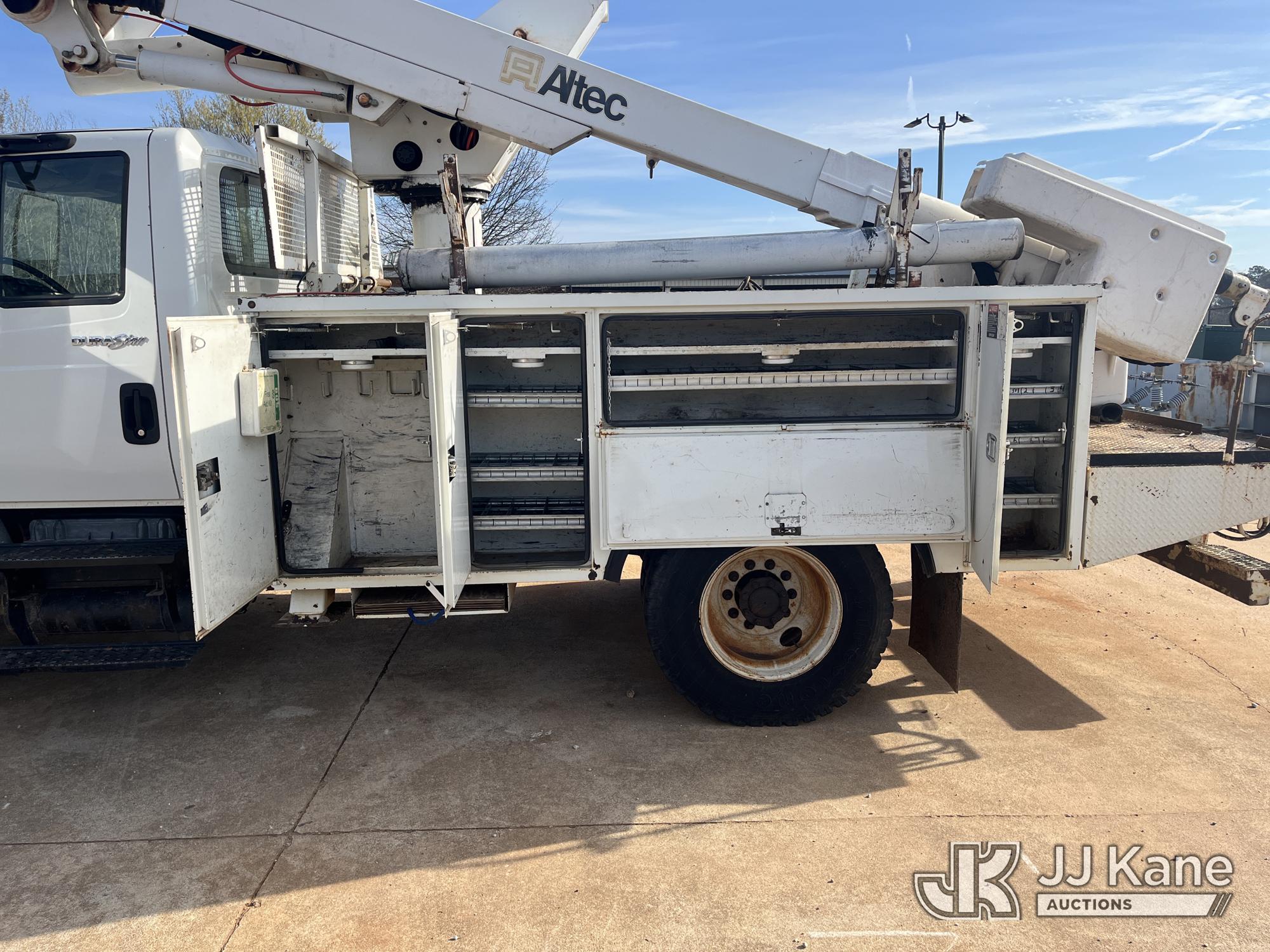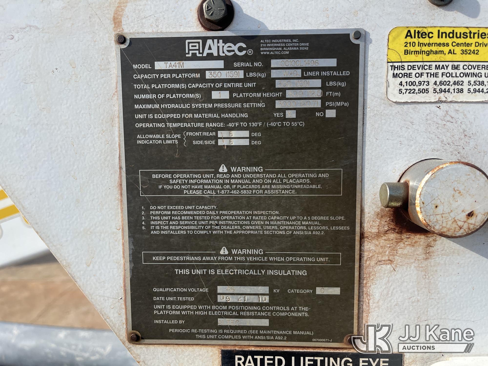 Altec TA41M, 46 ft, Articulating & Telescopic Material Handling Bucket Truck s/n 0810CL1496, with single-man bucket & 2 hyd outriggers, mounted behind cab on 2011 International 4300 Utility Truck, 7.6L L6 Diesel, 4X2, Auto, A/C, (336,486 miles) (Not Running, Condition Unknown) (Seller States Engine Issues, PTO is Disengaged) (Seller States: Boom Operates) This is a Titled Item*