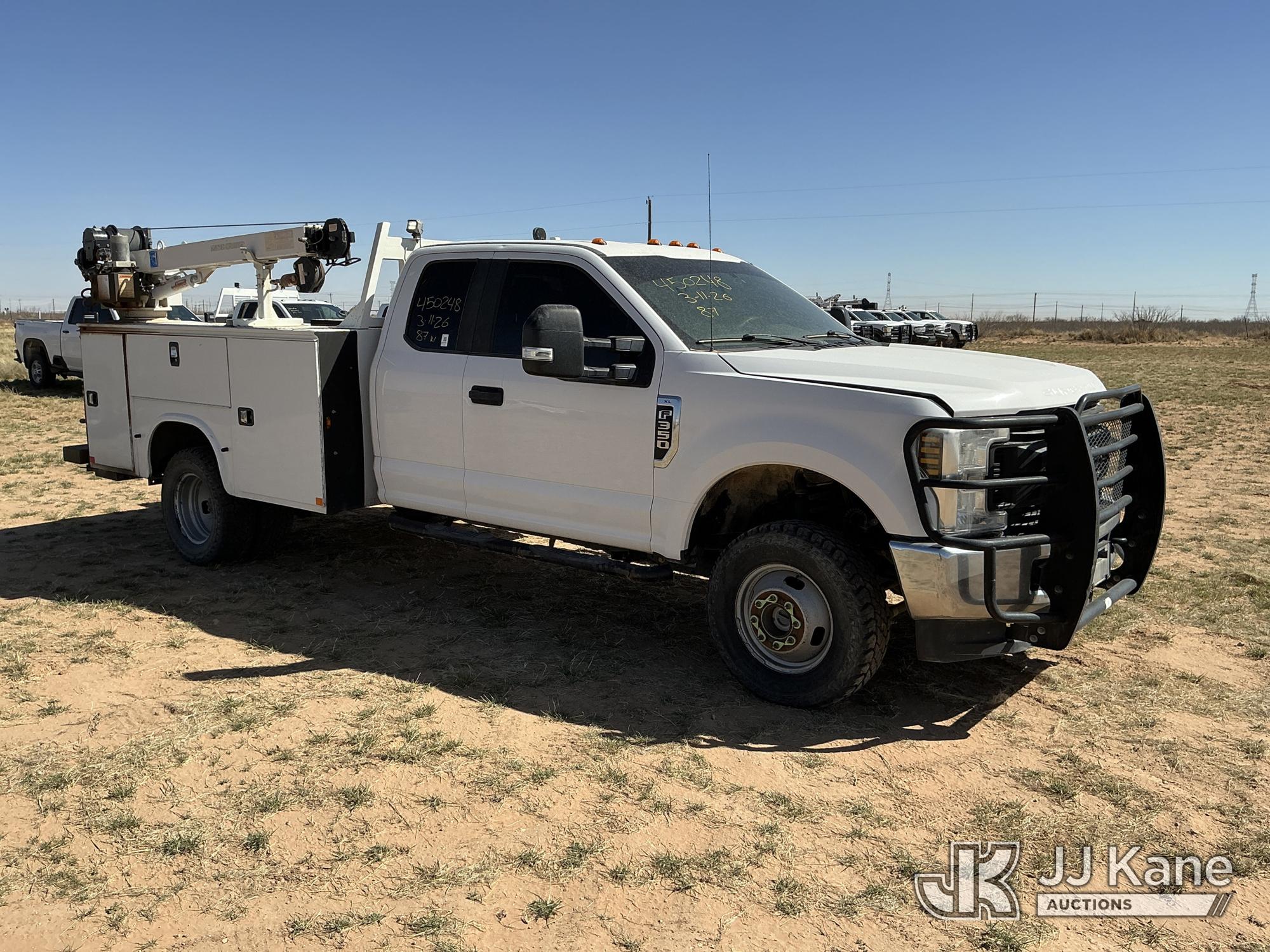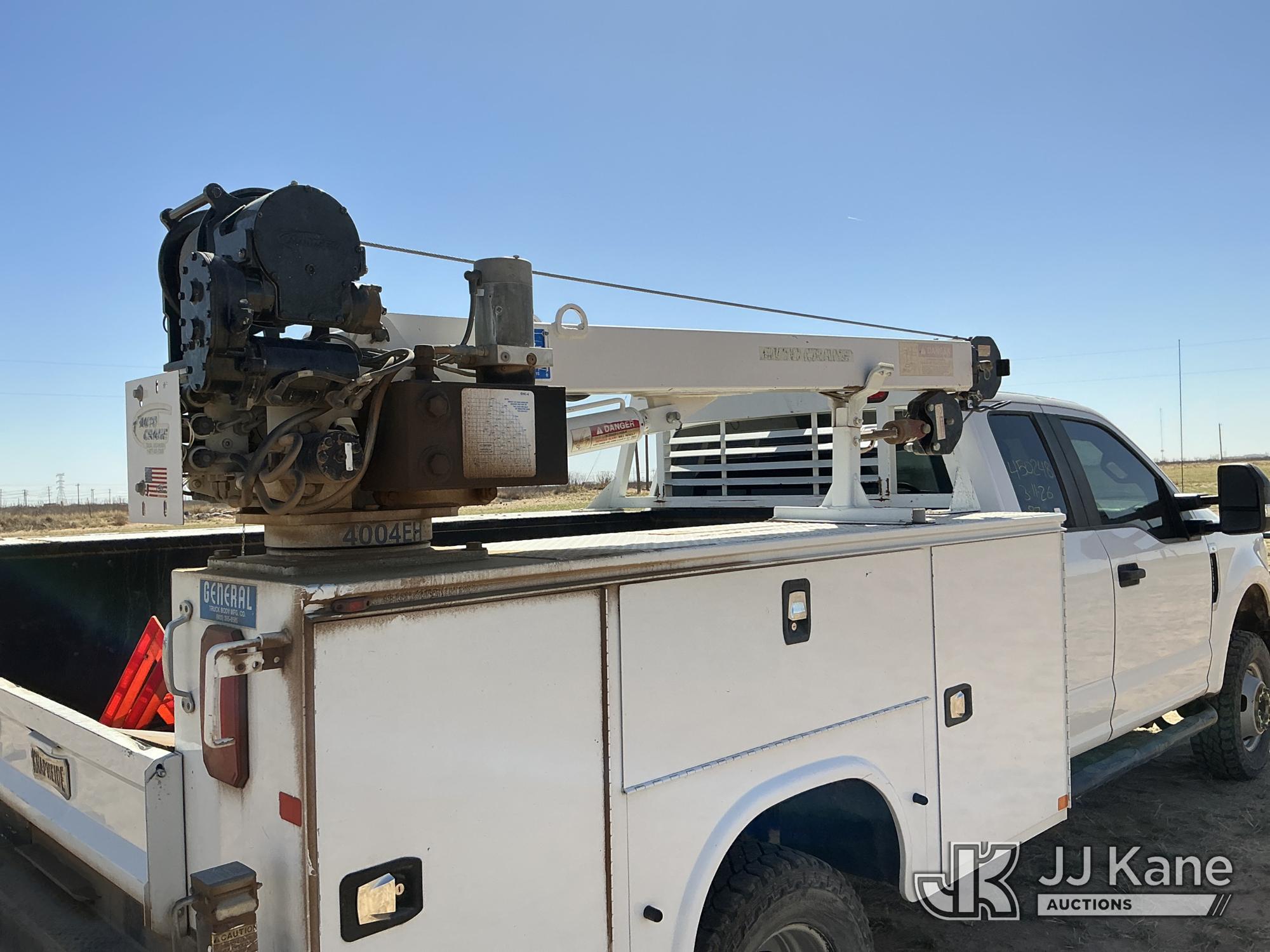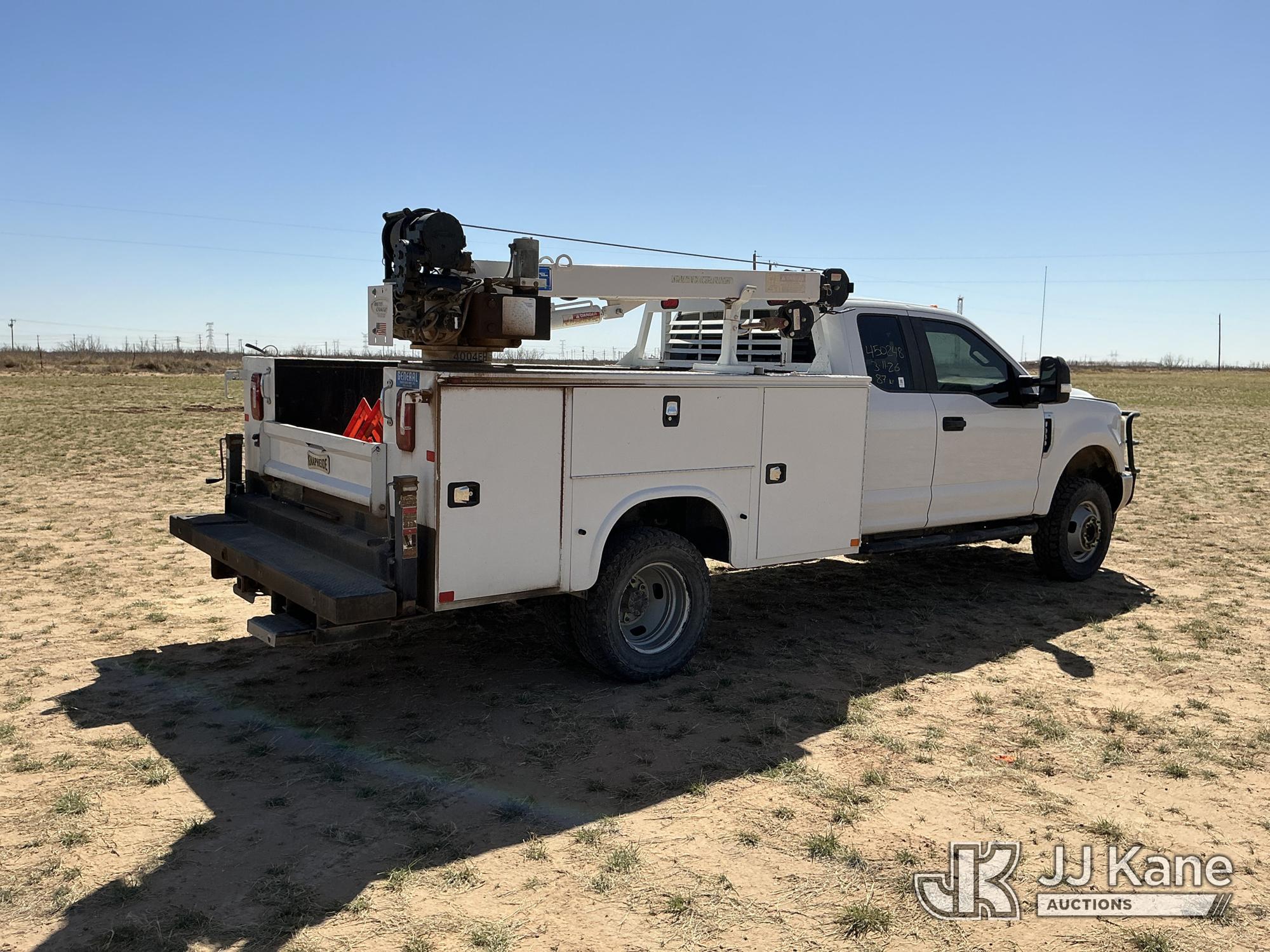 2019 Ford F-350 SD Extended-Cab Mechanics Service Truck, 8-cyl gas, 4WD, 6-Speed Automatic, A/C, with heavy duty front brush guard, Auto Crane 4004EH Service Crane, (169,499 miles) (Runs & Moves) (Upper Does Not Operate, Condition Unknown, Check Engine Light On, Paint & Body Damage, Hail Damage To Hood, None Of The Mechanic’s Doors Open, Driver’s Seat Torn) This is a Titled Item*