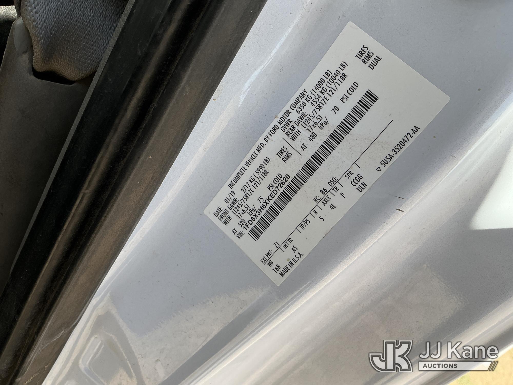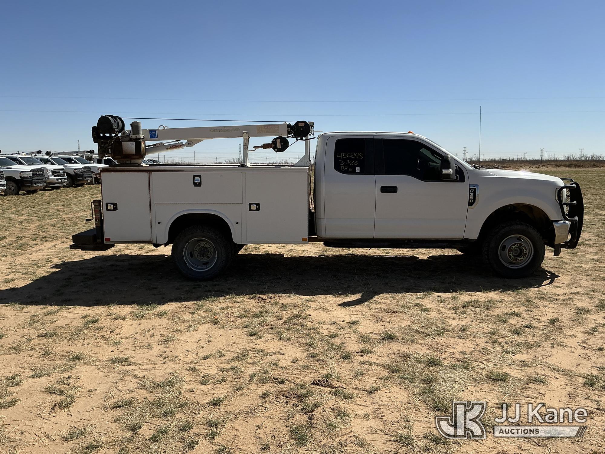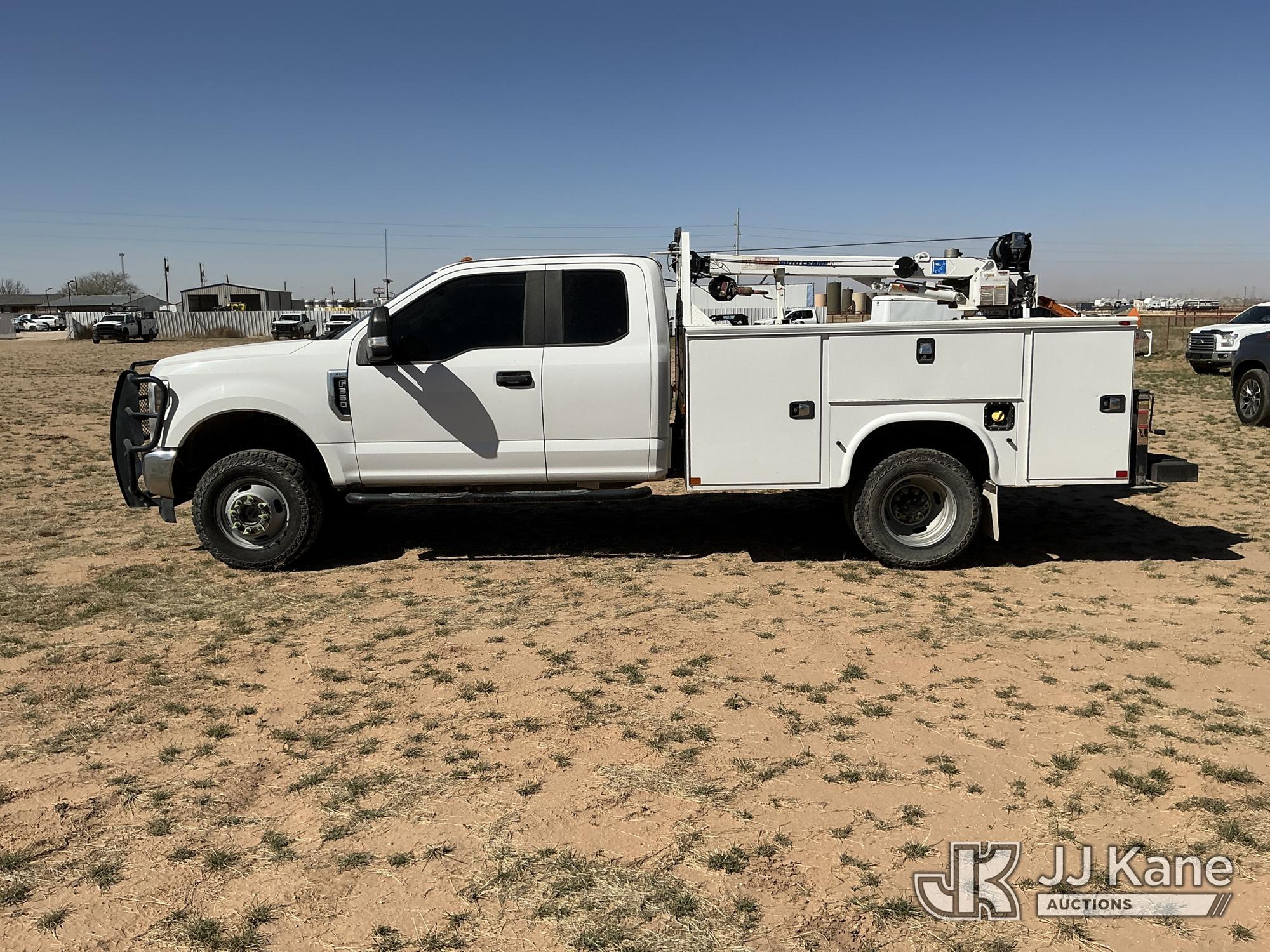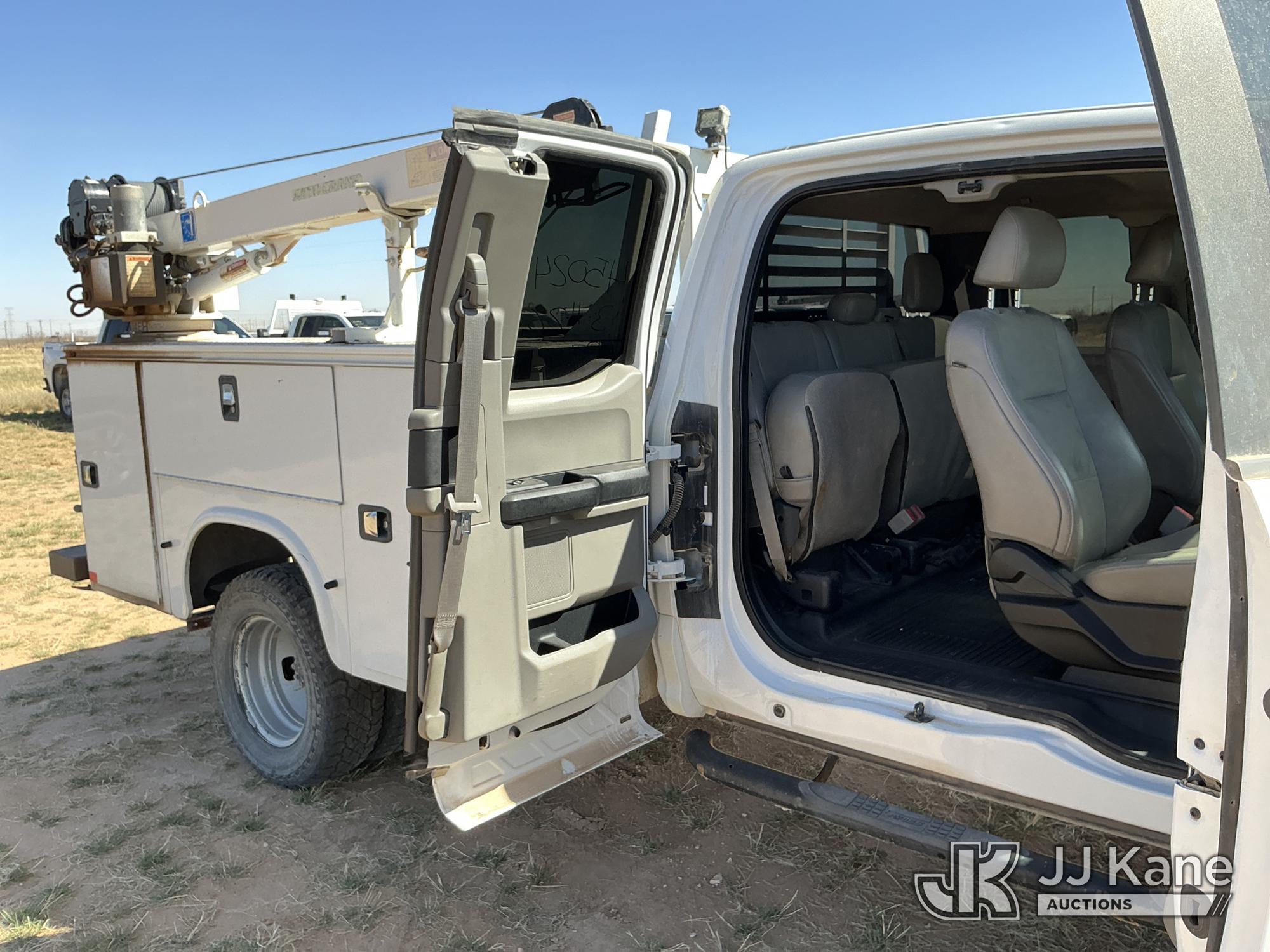 2019 Ford F-350 SD Extended-Cab Mechanics Service Truck, 8-cyl gas, 4WD, 6-Speed Automatic, A/C, with heavy duty front brush guard, Auto Crane 4004EH Service Crane, (169,499 miles) (Runs & Moves) (Upper Does Not Operate, Condition Unknown, Check Engine Light On, Paint & Body Damage, Hail Damage To Hood, None Of The Mechanic’s Doors Open, Driver’s Seat Torn) This is a Titled Item*