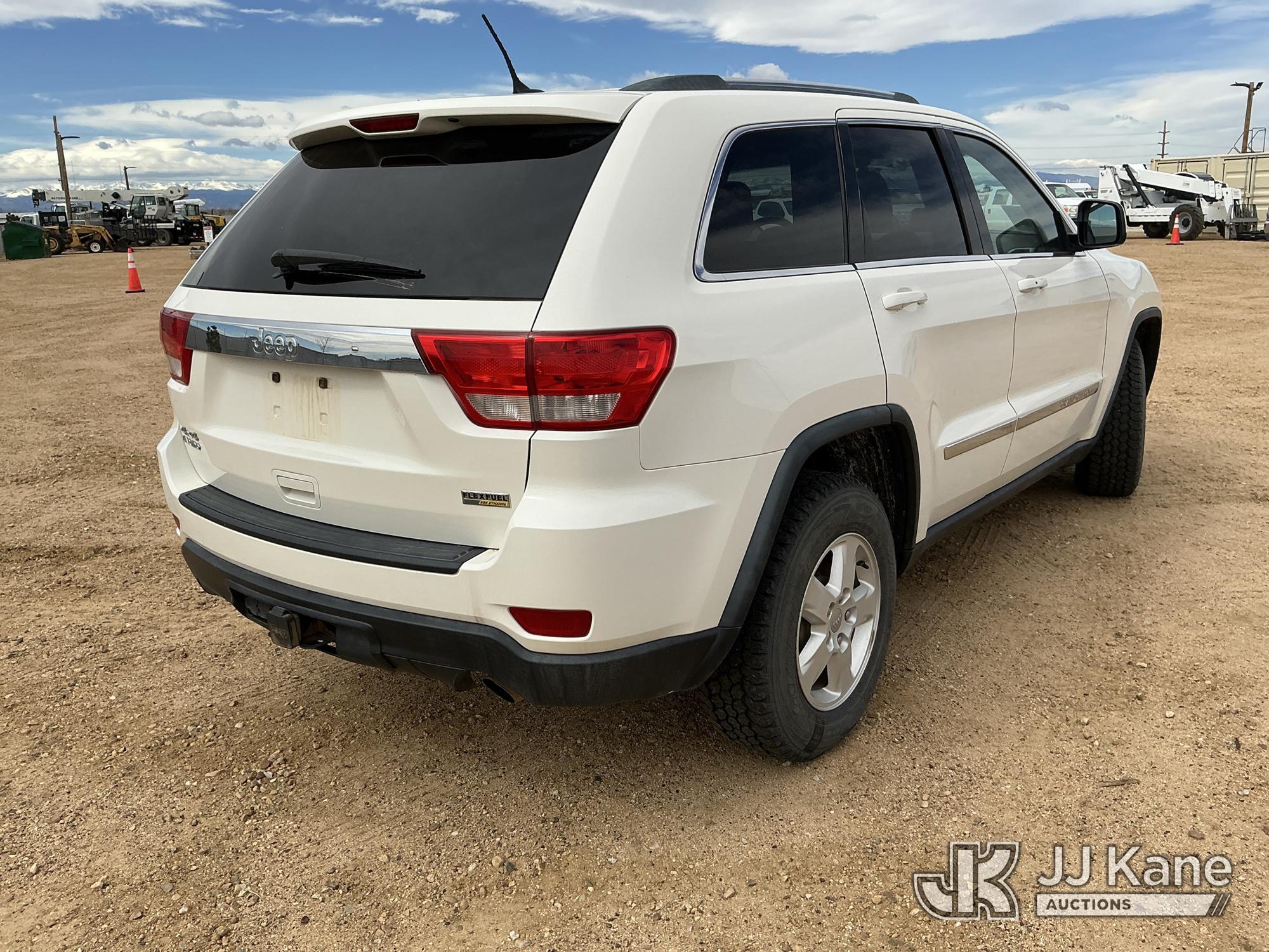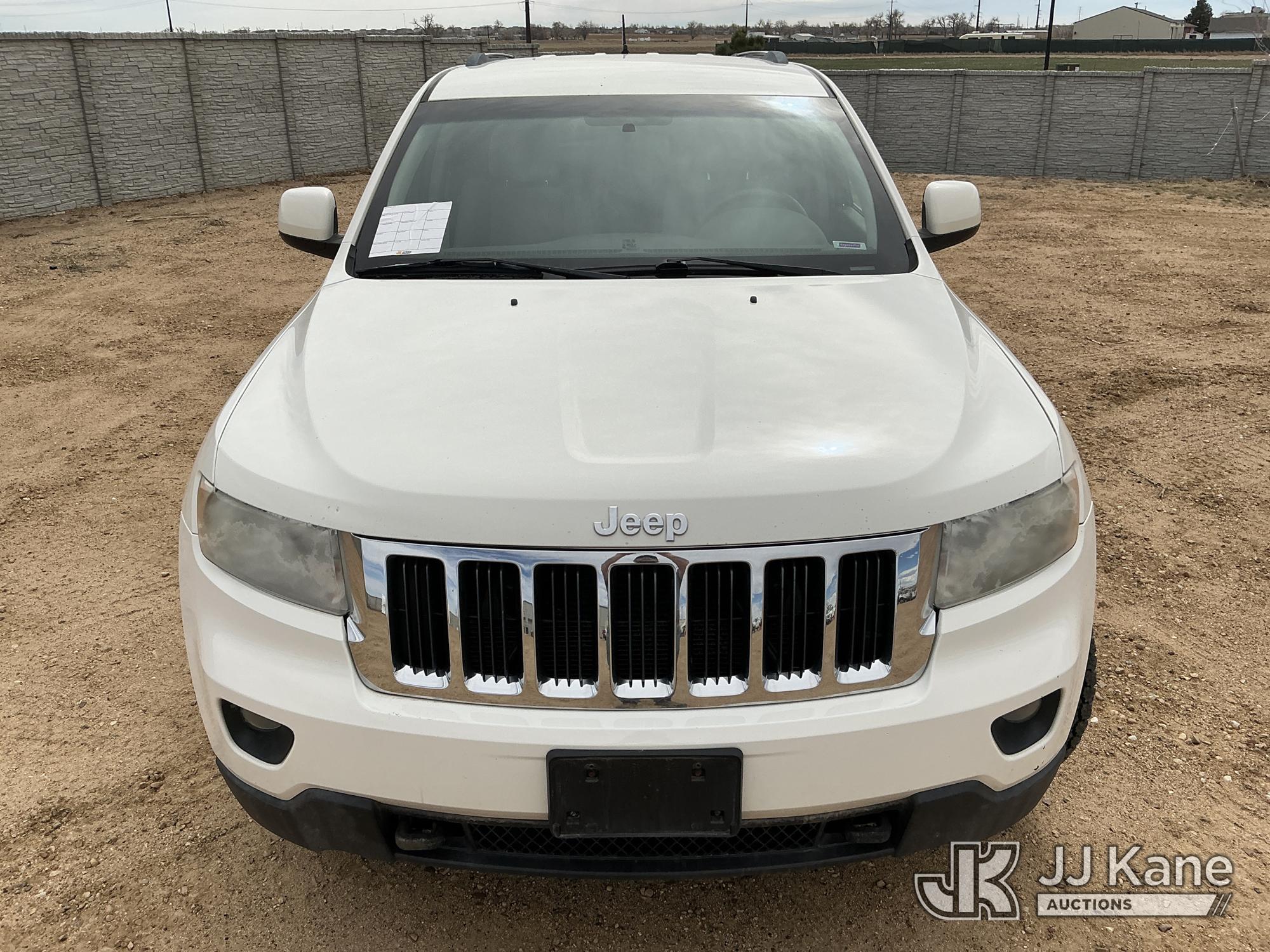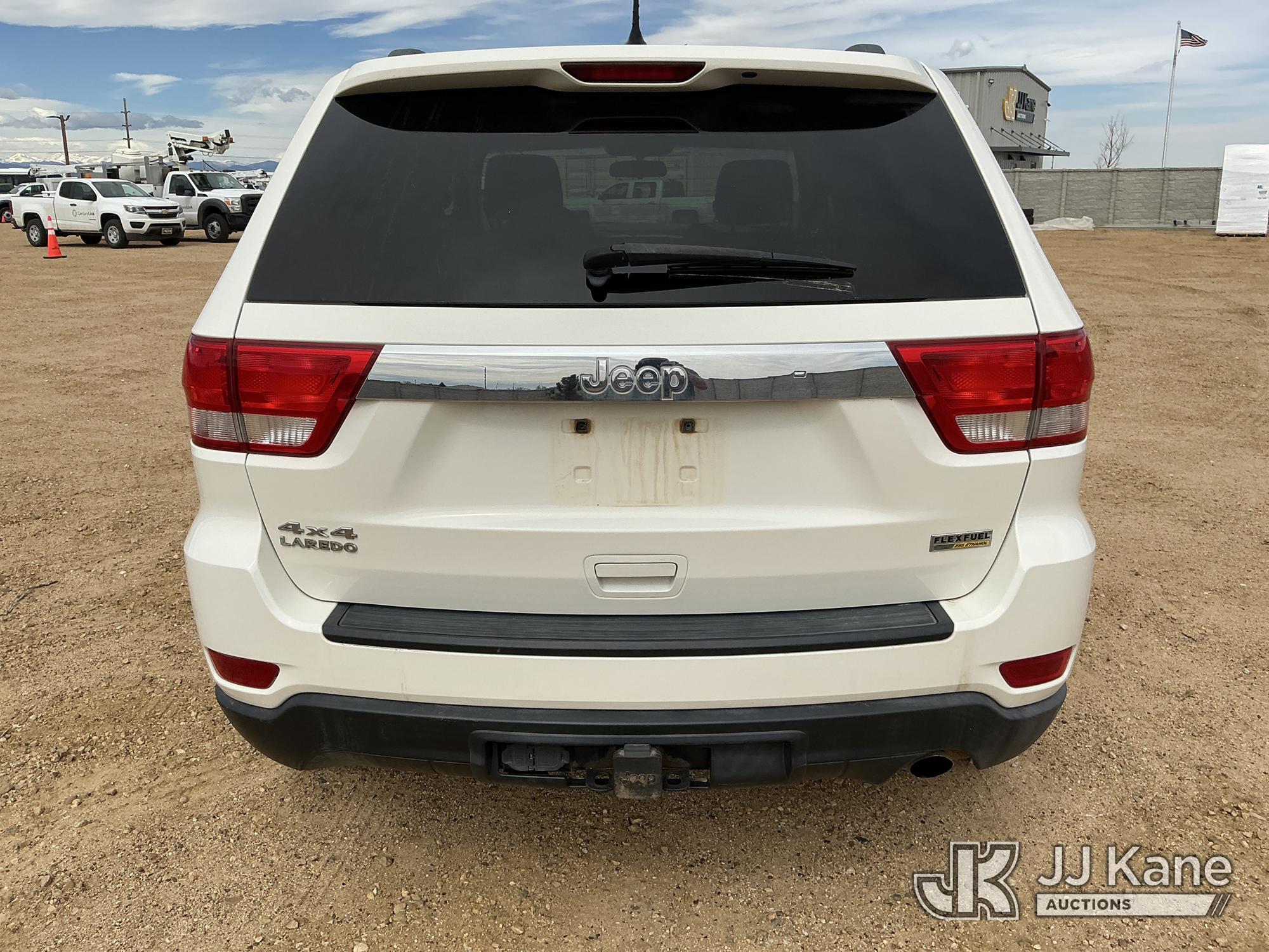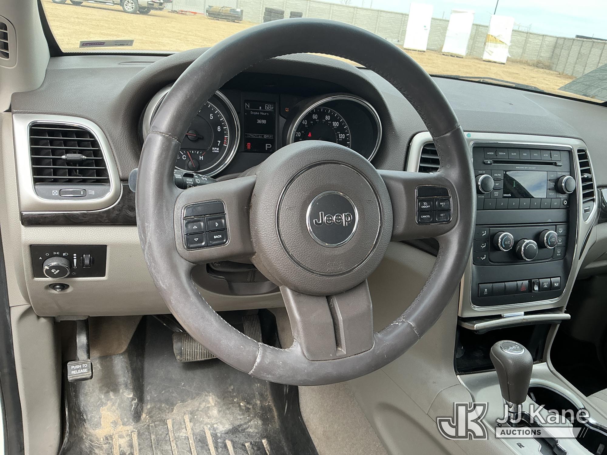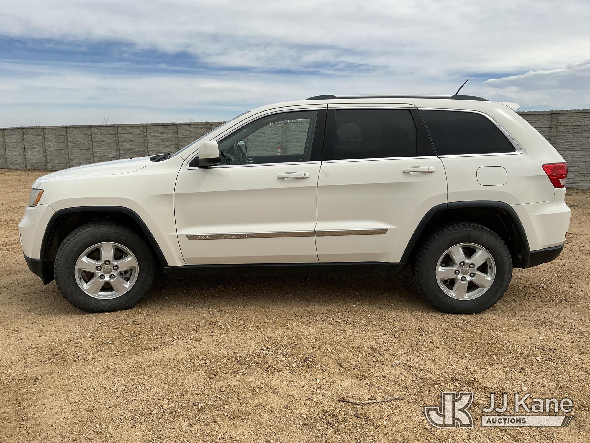 2012 Jeep Grand Cherokee Laredo 4WD 4-Door Sport Utility Vehicle, 3.6L V6 DOHC 24V gas, 5-Speed Automatic, A/C, (124,621 miles) (Runs & Moves) (Tire Pressure Monitor System Light On) (Reads 3,698 hours) This is a Titled Item*