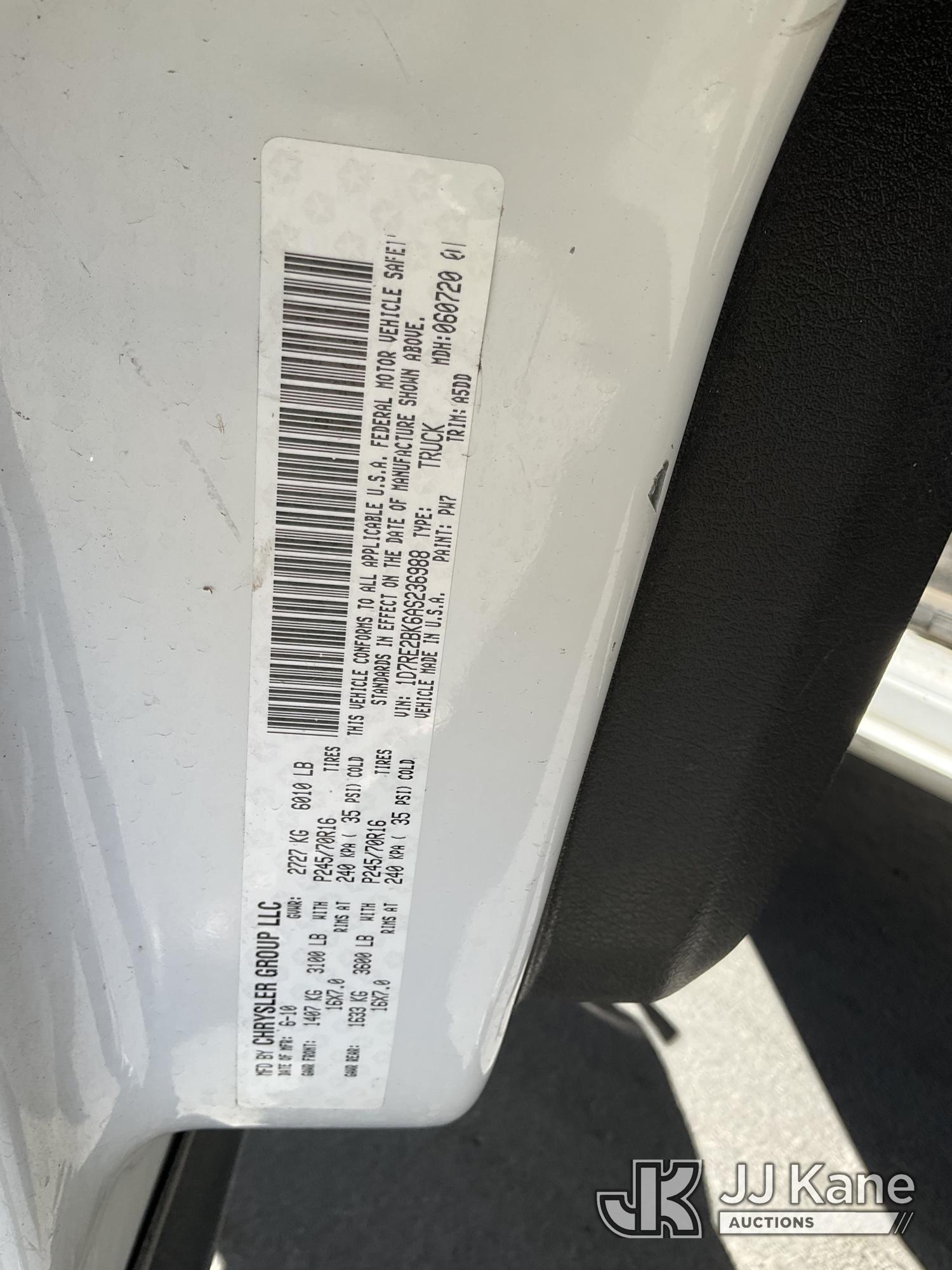 2010 RAM Dakota ST Extended Cab 2WD Extended-Cab Pickup Truck, s/n 1D7RE2BK6AS236988, 3.7L V6 SOHC 12V RWD, GAS, 4-Speed Automatic, A/C, with Toolbox, tow package, (57,007 miles) (Runs & Moves) This is a Titled Item*