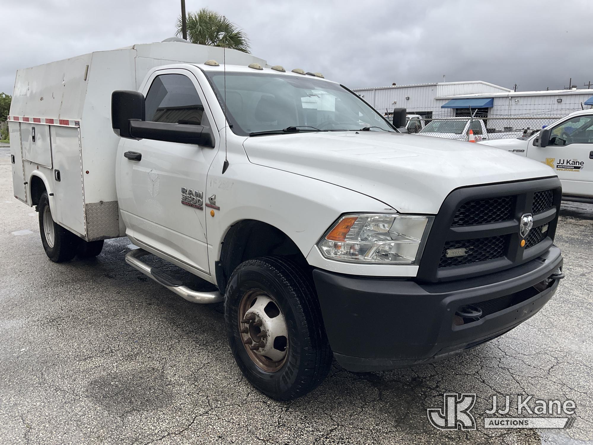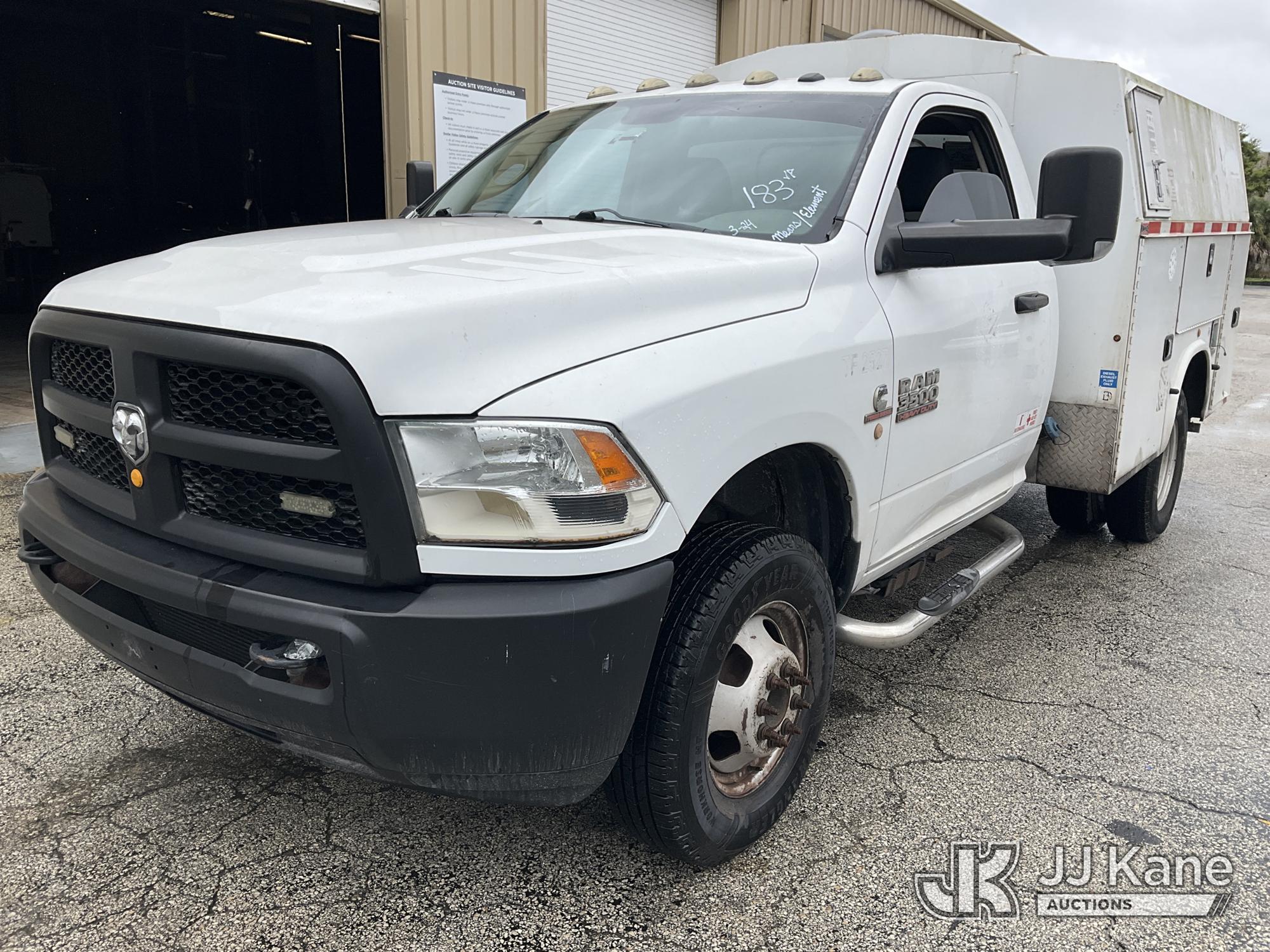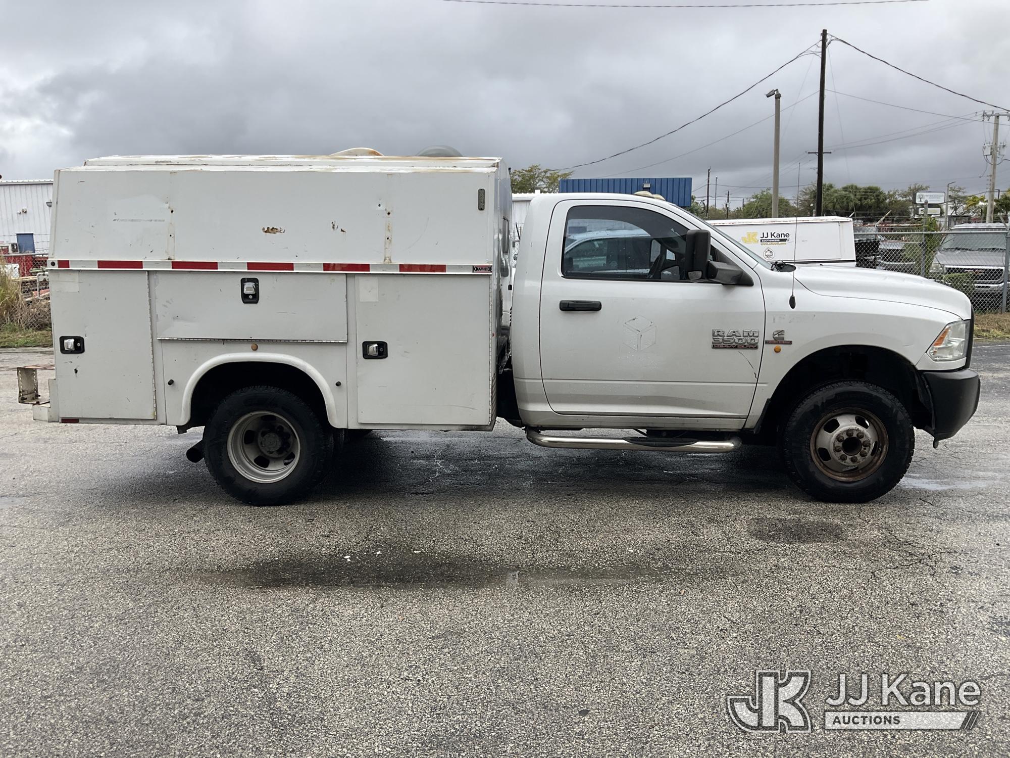2014 RAM 3500 Enclosed High Top Service Truck, Cummins 6.7L diesel, Auto, A/C, with aux fuel tank, (126,288 miles) (Runs & Moves) (Body/Rust Damage) (Seller States: Bad Alternator) (FL Residents Purchasing Titled Items – tax, title & registration fees will be collected at the maximum rate of $400.00 under 25,999 and $800.00 for Over 26,000 and $250.00 for Trailers – Proof of insurance is mandatory; Out of State Residents Purchasing Title Items – tax will be collected based upon your state rate) (Reads 5,331 hours) This is a Titled Item*