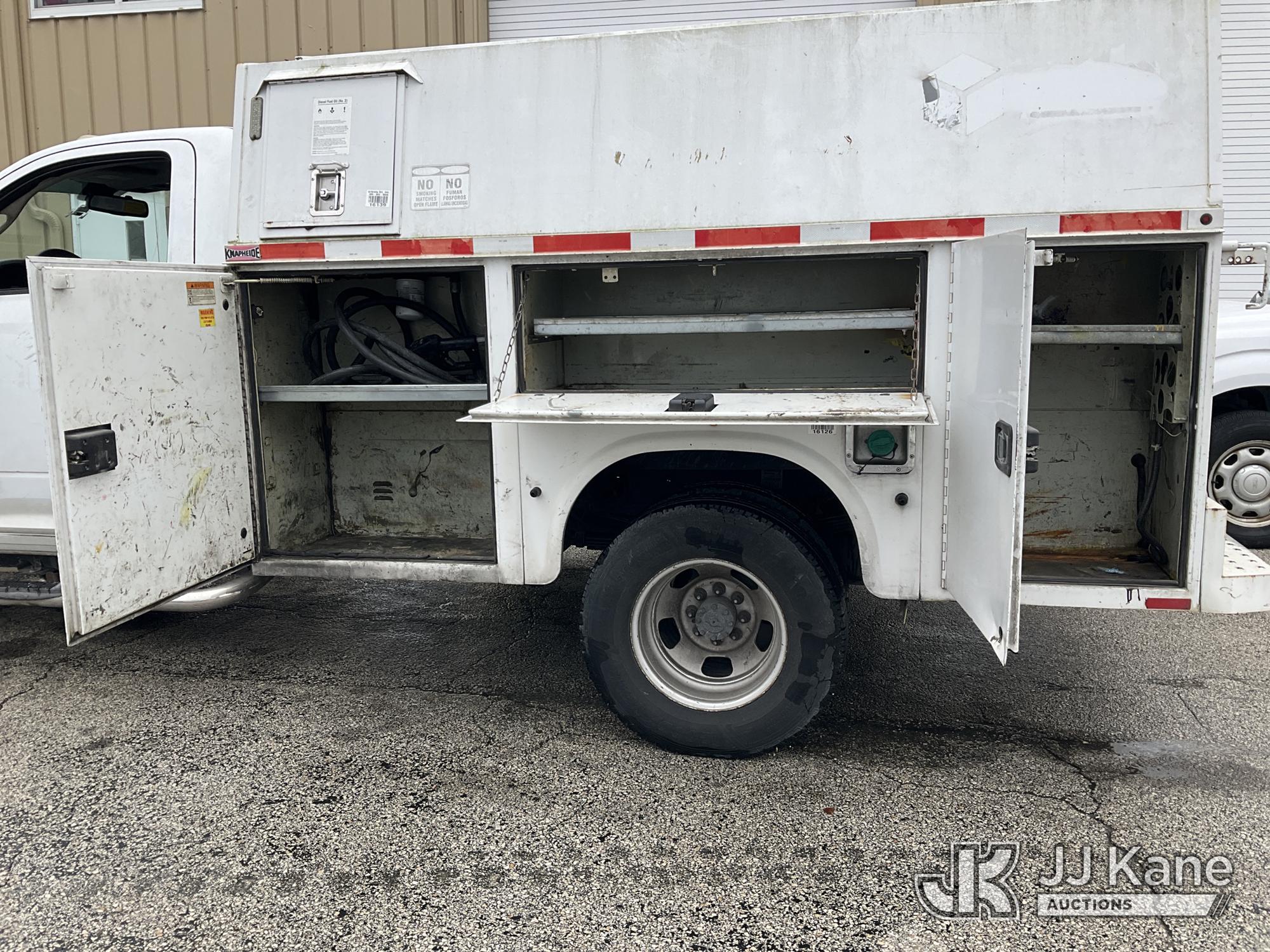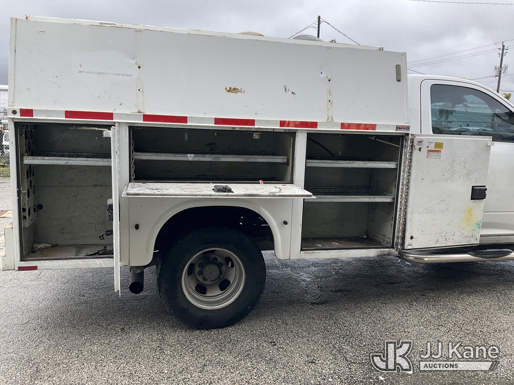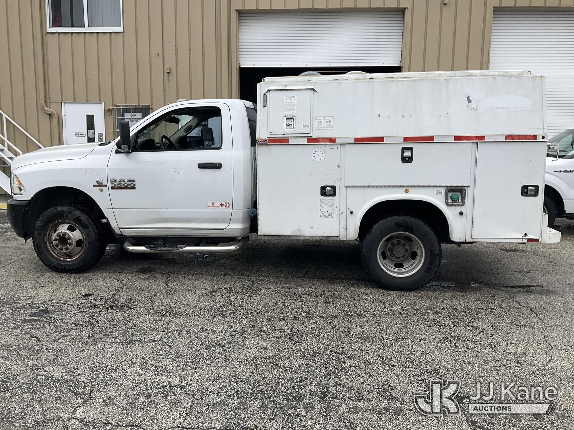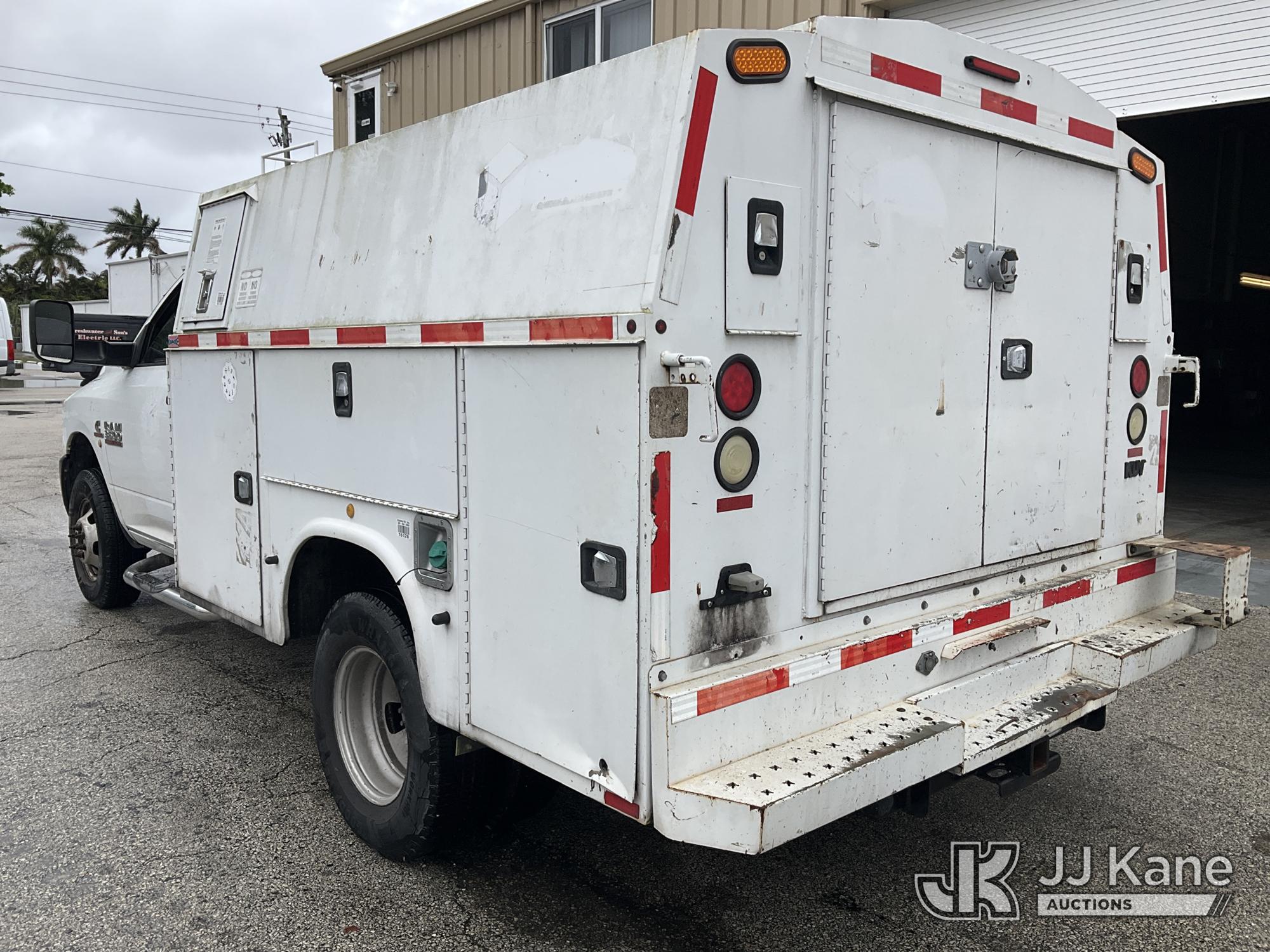 2014 RAM 3500 Enclosed High Top Service Truck, Cummins 6.7L diesel, Auto, A/C, with aux fuel tank, (126,288 miles) (Runs & Moves) (Body/Rust Damage) (Seller States: Bad Alternator) (FL Residents Purchasing Titled Items – tax, title & registration fees will be collected at the maximum rate of $400.00 under 25,999 and $800.00 for Over 26,000 and $250.00 for Trailers – Proof of insurance is mandatory; Out of State Residents Purchasing Title Items – tax will be collected based upon your state rate) (Reads 5,331 hours) This is a Titled Item*