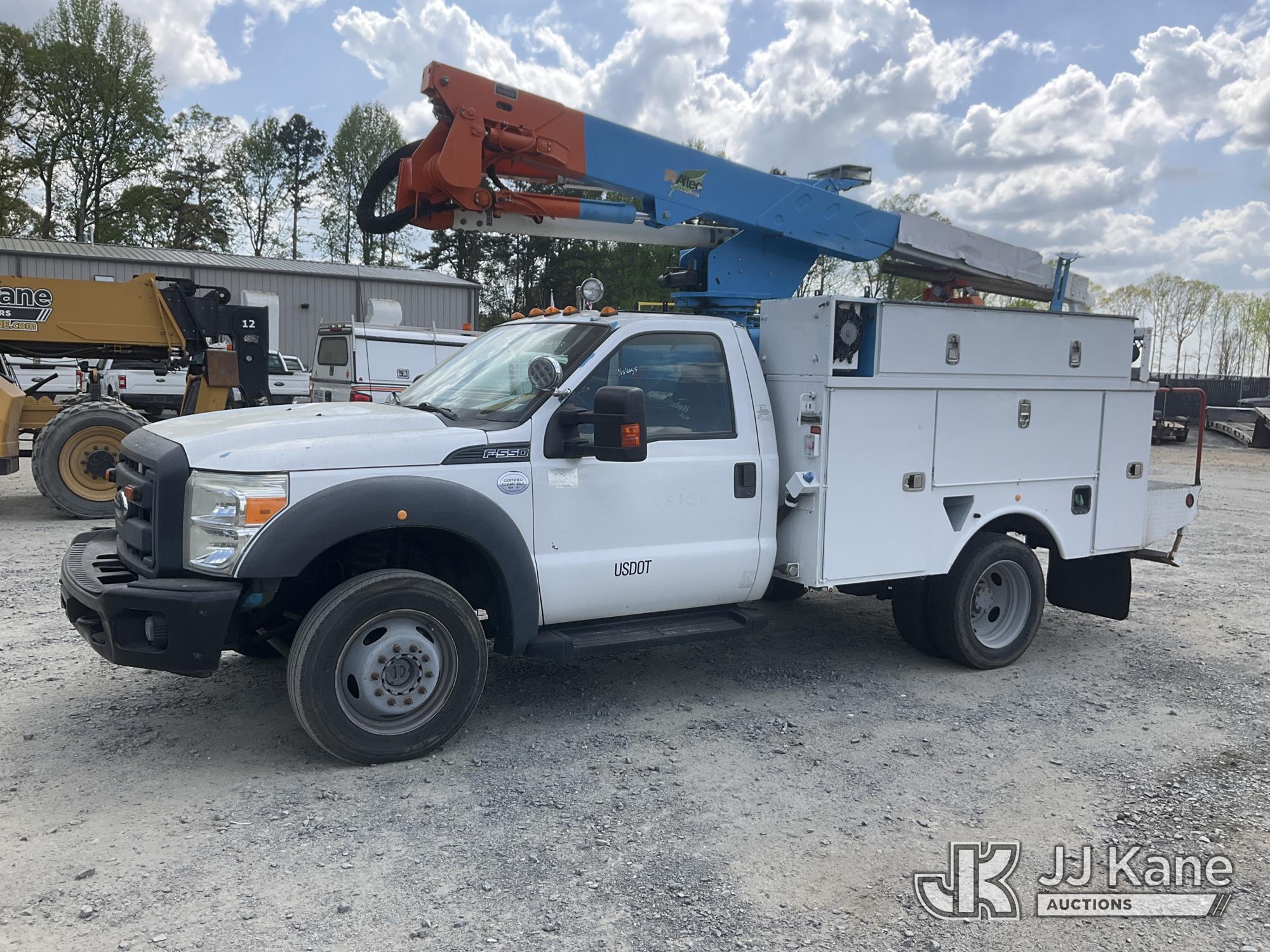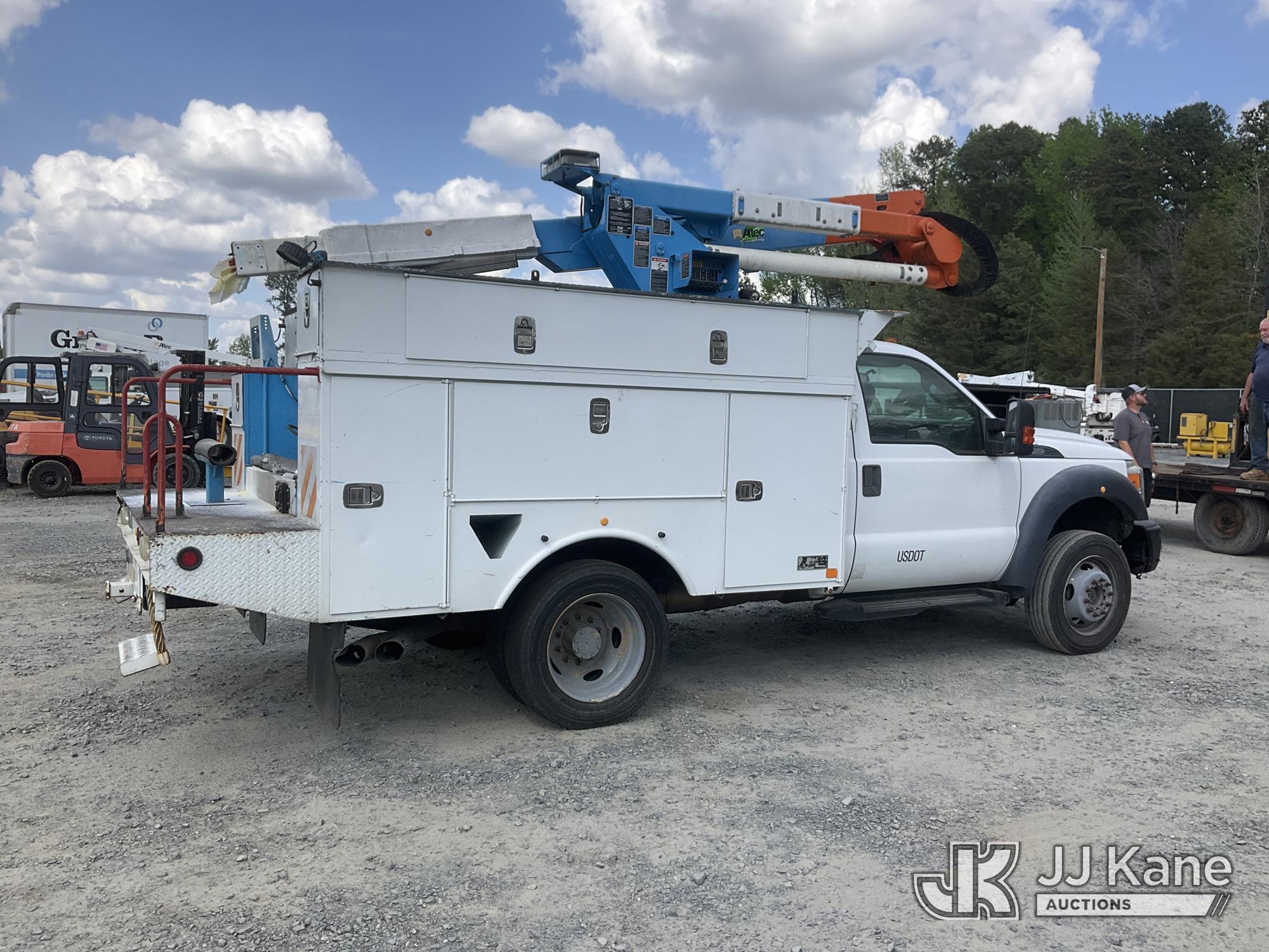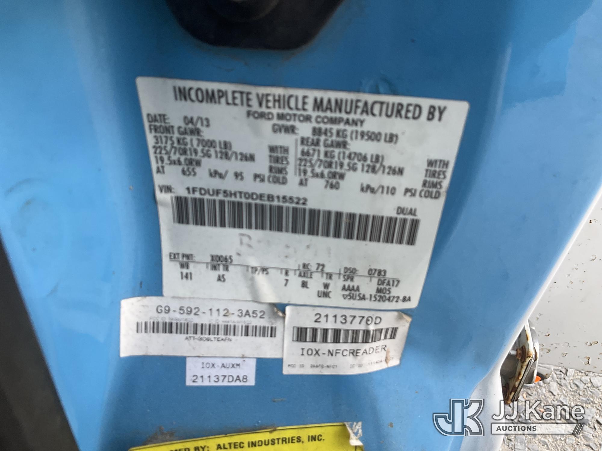 Altec AT37G, 42 ft, Articulating & Telescopic Bucket Truck s/n 0813DE15804, mounted behind cab on 2013 Ford F550 4X4 Service Truck, 6.7L diesel, Auto, A/C, True Mileage Unknown (Not Running, Condition Unknown, Engine Parts In Back, Bucket Removed, No Keys, Seller States: Blown Motor) This is a Titled Item*