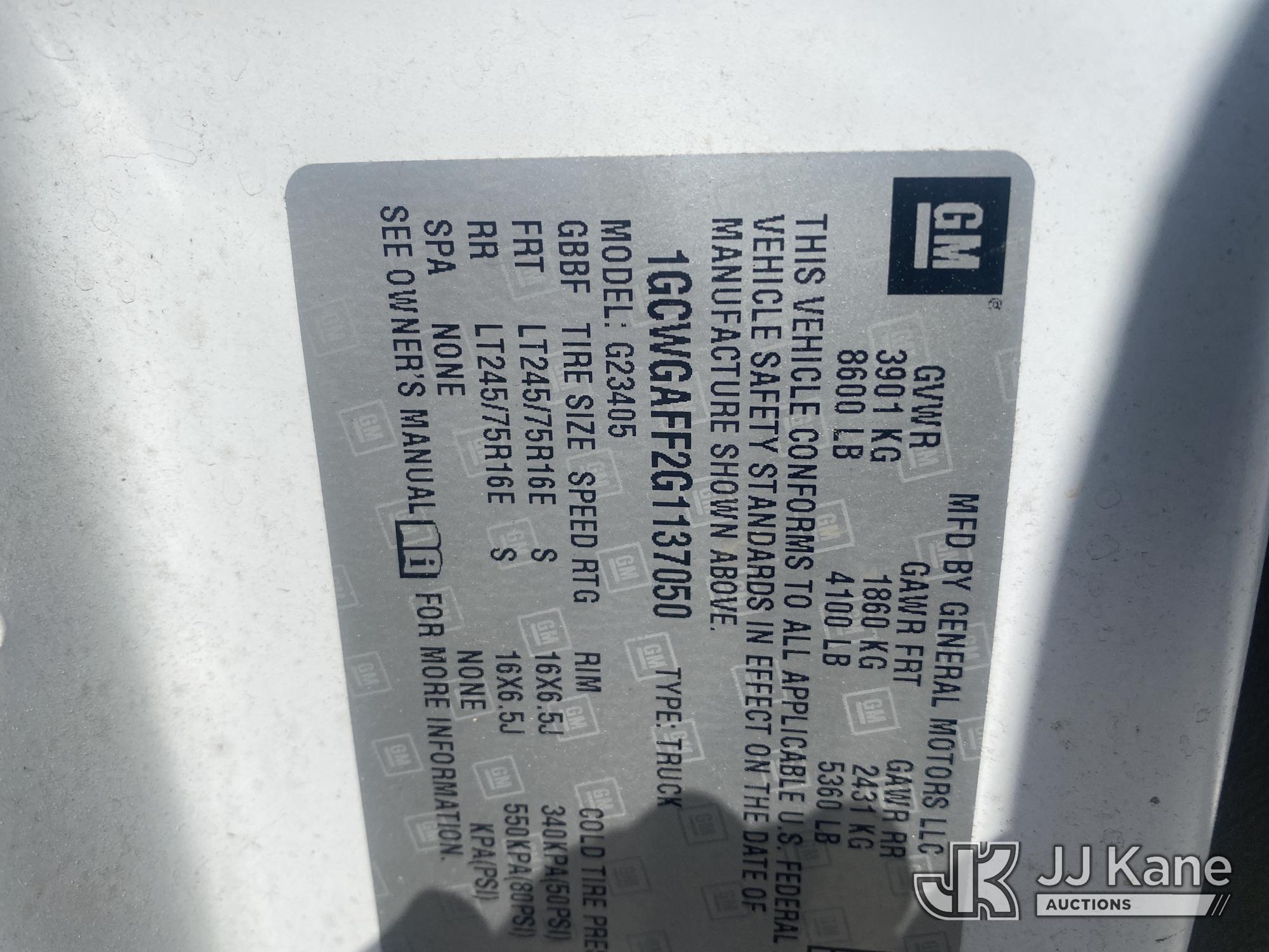 2016 Chevrolet Express G2500 Cargo Van, 8-cyl gas, RWD, Auto, A/C, (155,054 miles) (Runs & Moves) (Jump To Start, Flat Tire, Missing Passenger Side Window ) This is a Titled Item*