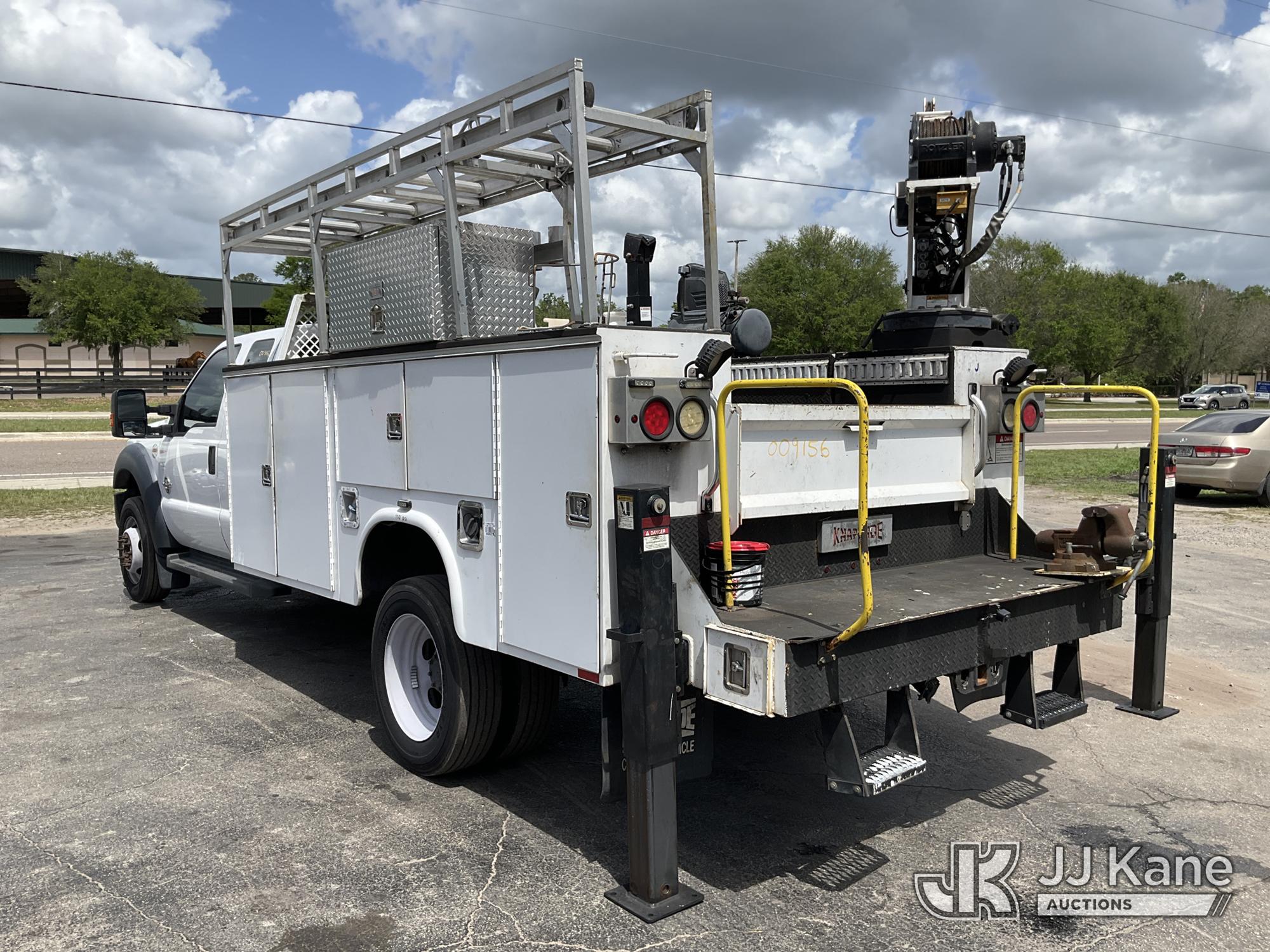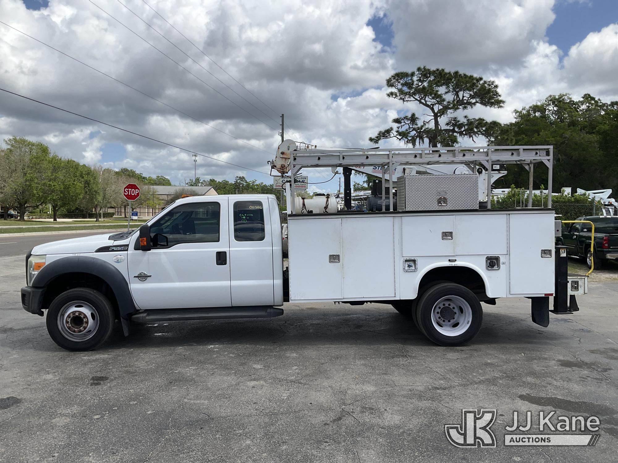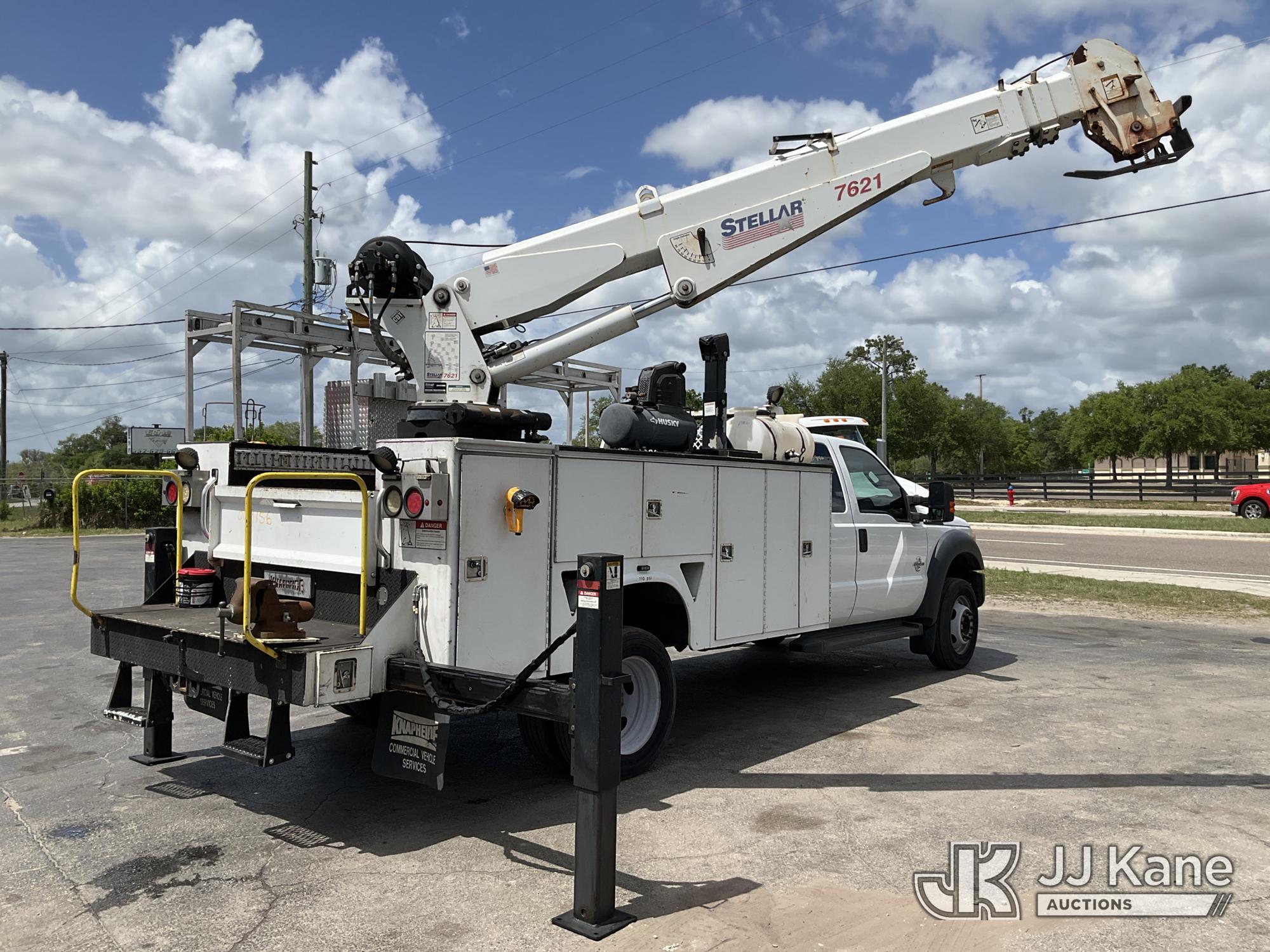 2015 Ford F550 Extended-Cab Mechanics Service Truck, 6.7L V8 OHV 16V DIESEL, RWD, Auto, A/C, with Stellar 7621 material crane, air compressor, (128,735 miles) (Runs, Moves & Crane Operates) (Chipped Windshield) This is a Titled Item*