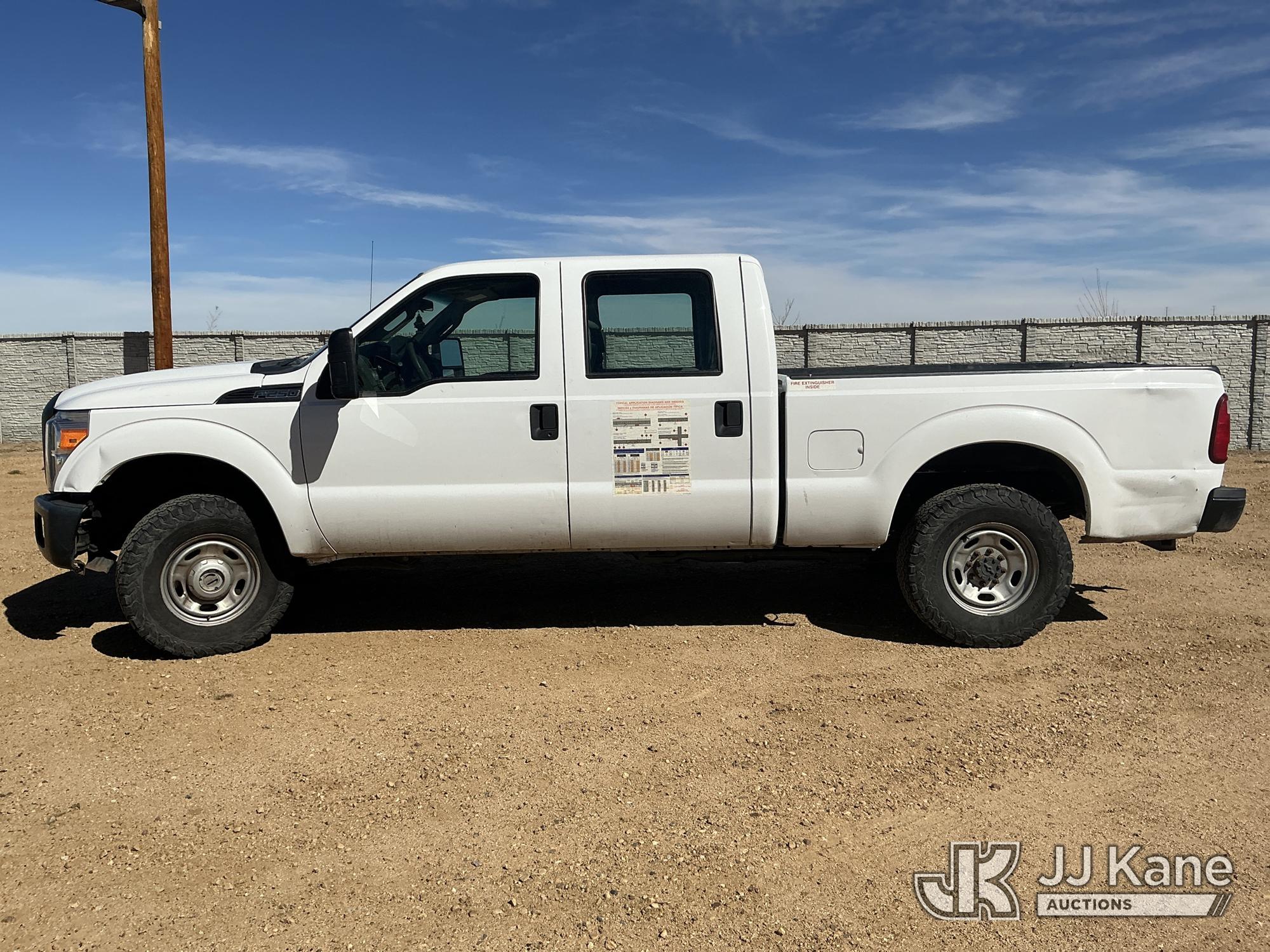 2016 Ford F250 4x4 Crew-Cab Pickup Truck, 6.2L V8 OHV 16V gas, 6-Speed Automatic, A/C, (121,081 miles) (Runs & Moves) (Traction Control Light On, Emergency Brake Not Operating, Body Damage) (Seller States: Needs New Tires) (Non Drive Away Removal Only Due To Emergency Brake) (Reads 6,167 hours) This is a Titled Item*