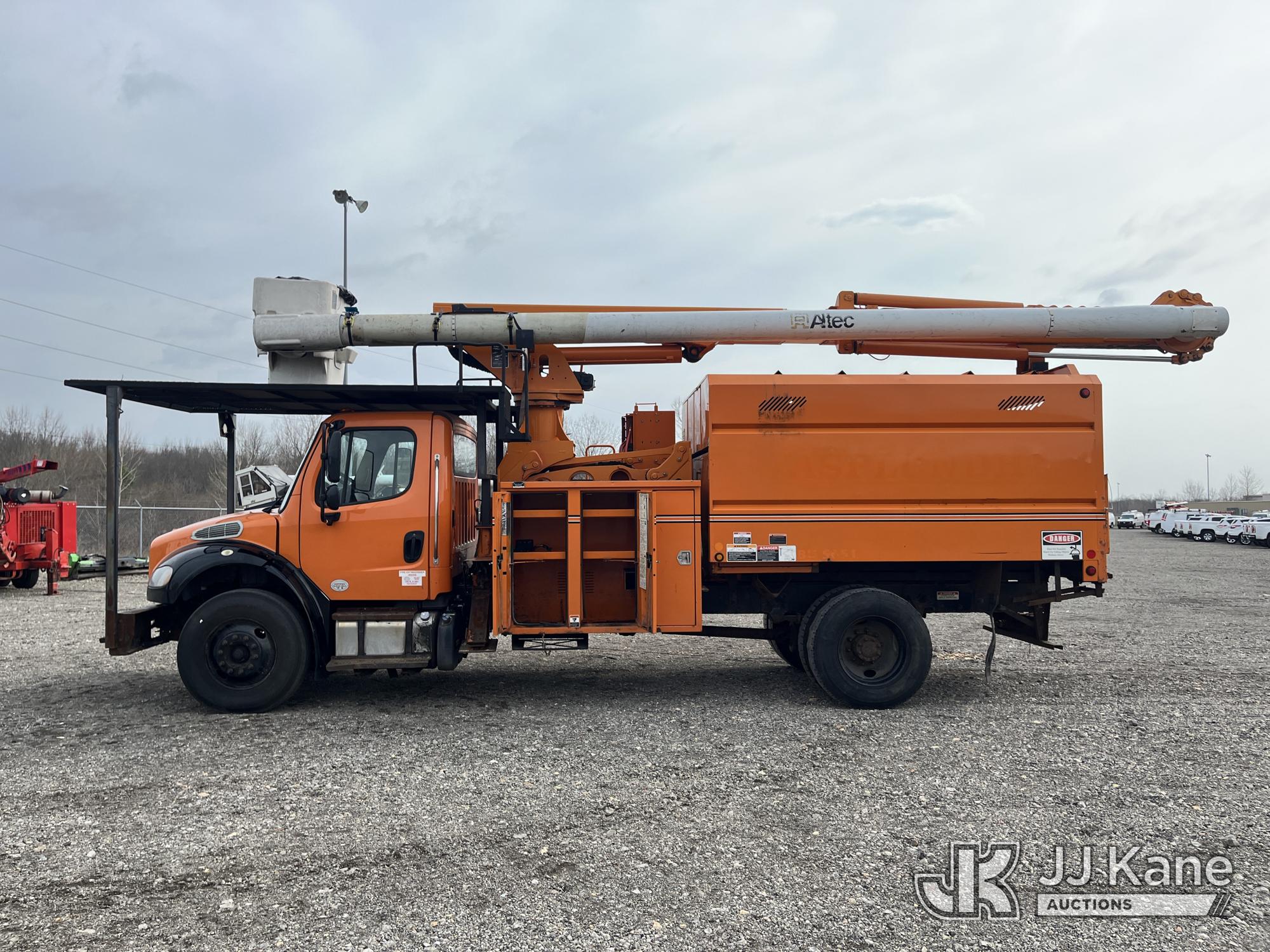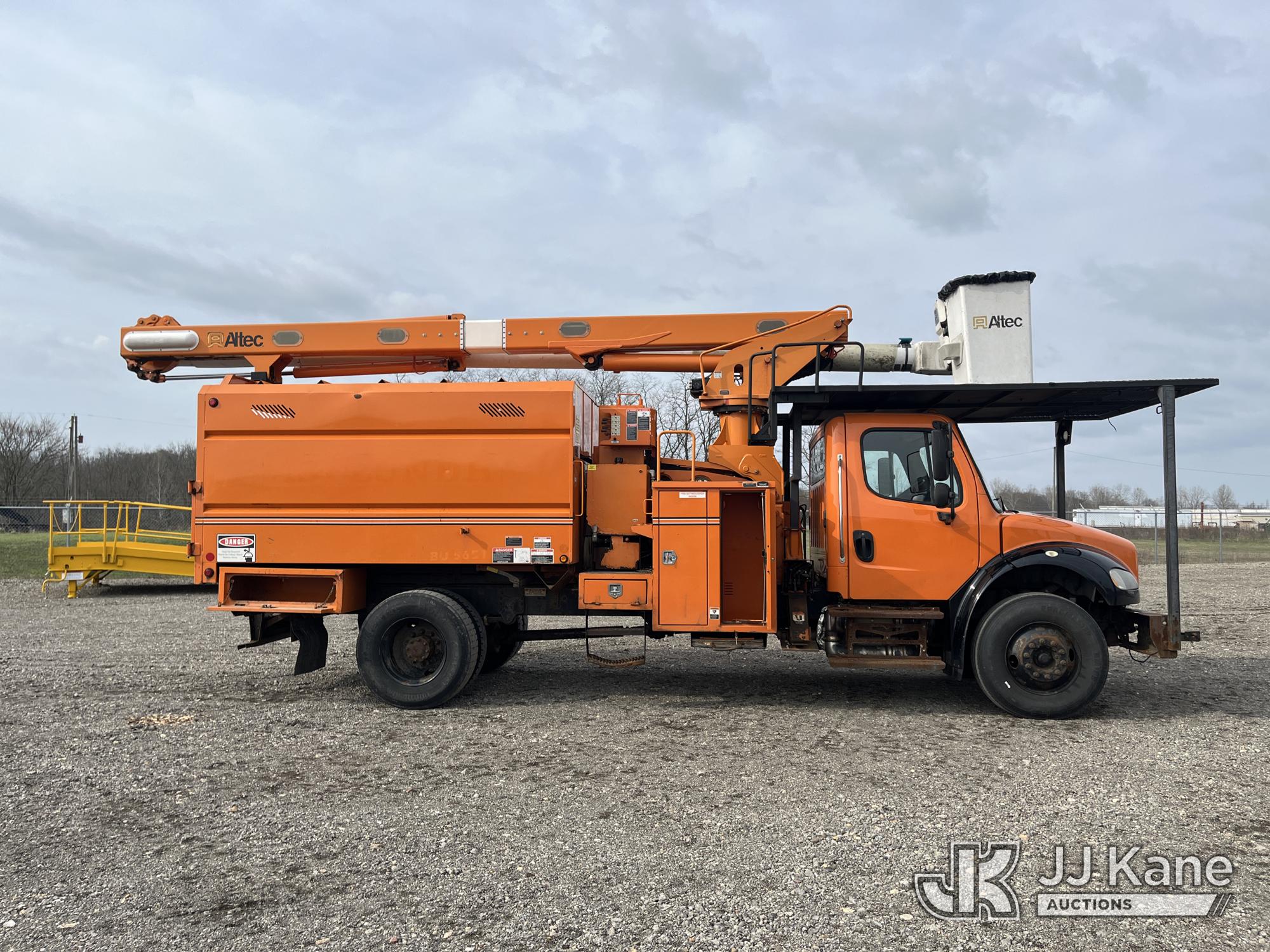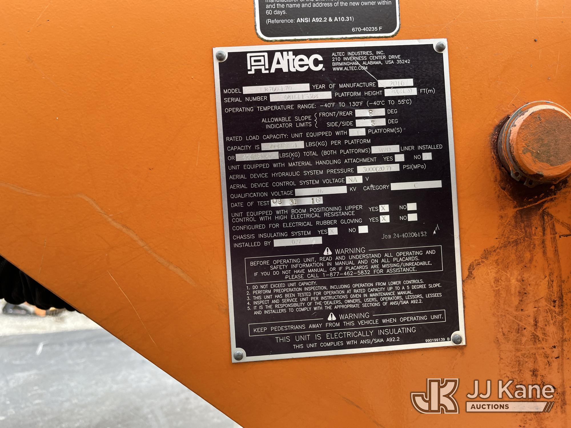 Altec LR760-E70, 75 ft, Over-Center Elevator Bucket Truck s/n 0816FF5368, with single-man bucket & 2 hyd outriggers (PTO Hours 6980), mounted behind cab on 2016 Freightliner M2 106 Chipper Dump Truck, 6.7L L6 Diesel 4X2, 6-spd, (36,455 miles) (Runs & Moves, Engine Light On, Power Steering Issue, Interior Damage, PTO Issue, Upper Operation Unknown, Body & Rust Damage) (Seller States: TRUCK HAS POWER STEERING ISSUES. UNSAFE TO DRIVE) This is a Titled Item*
