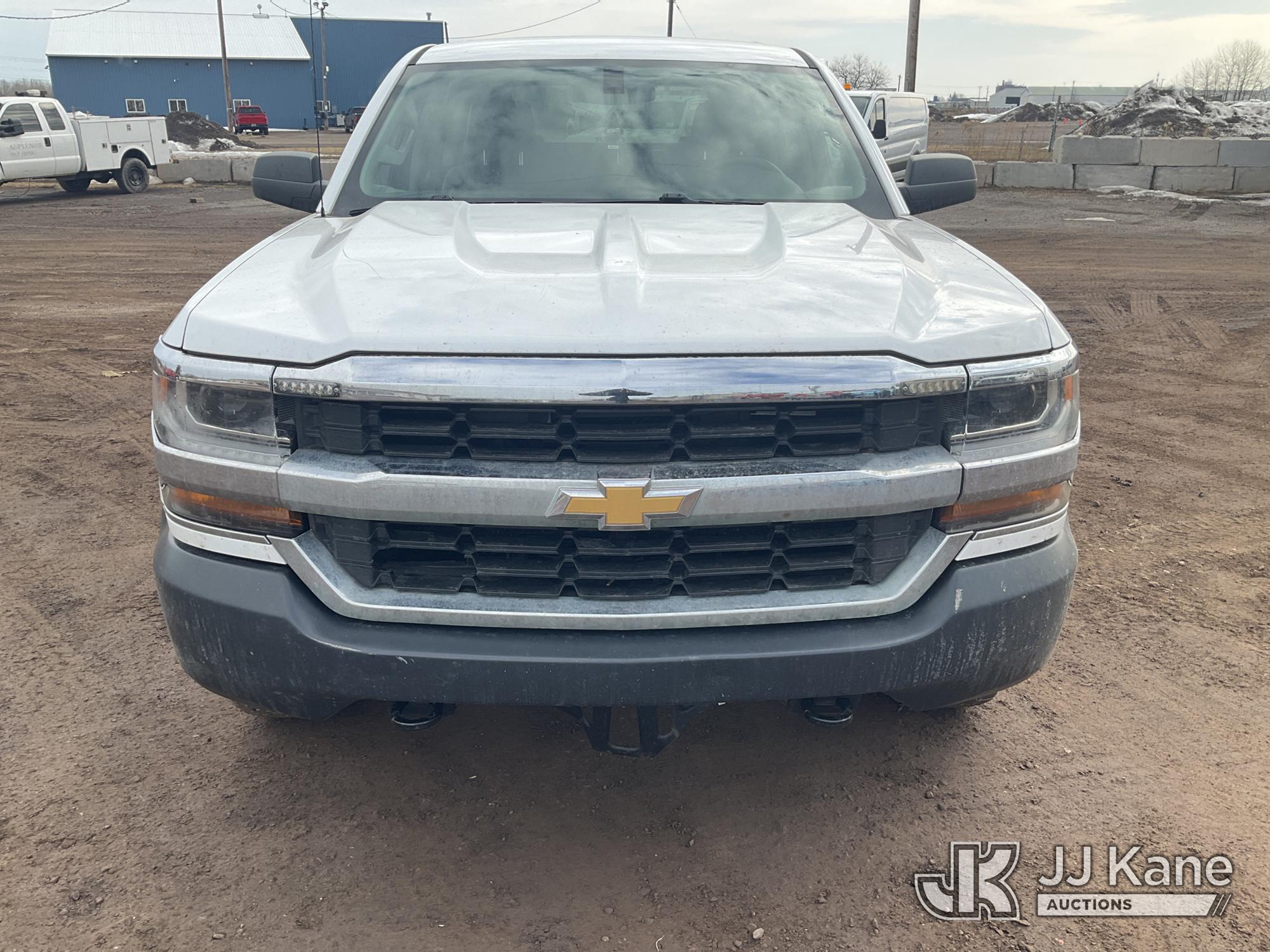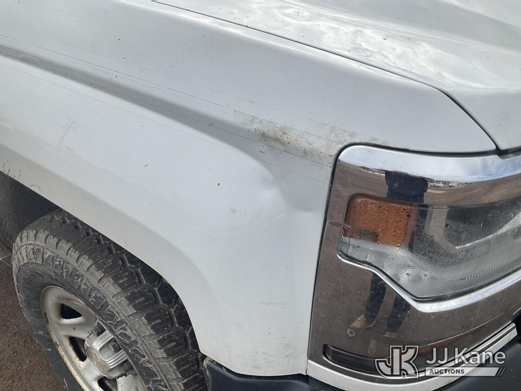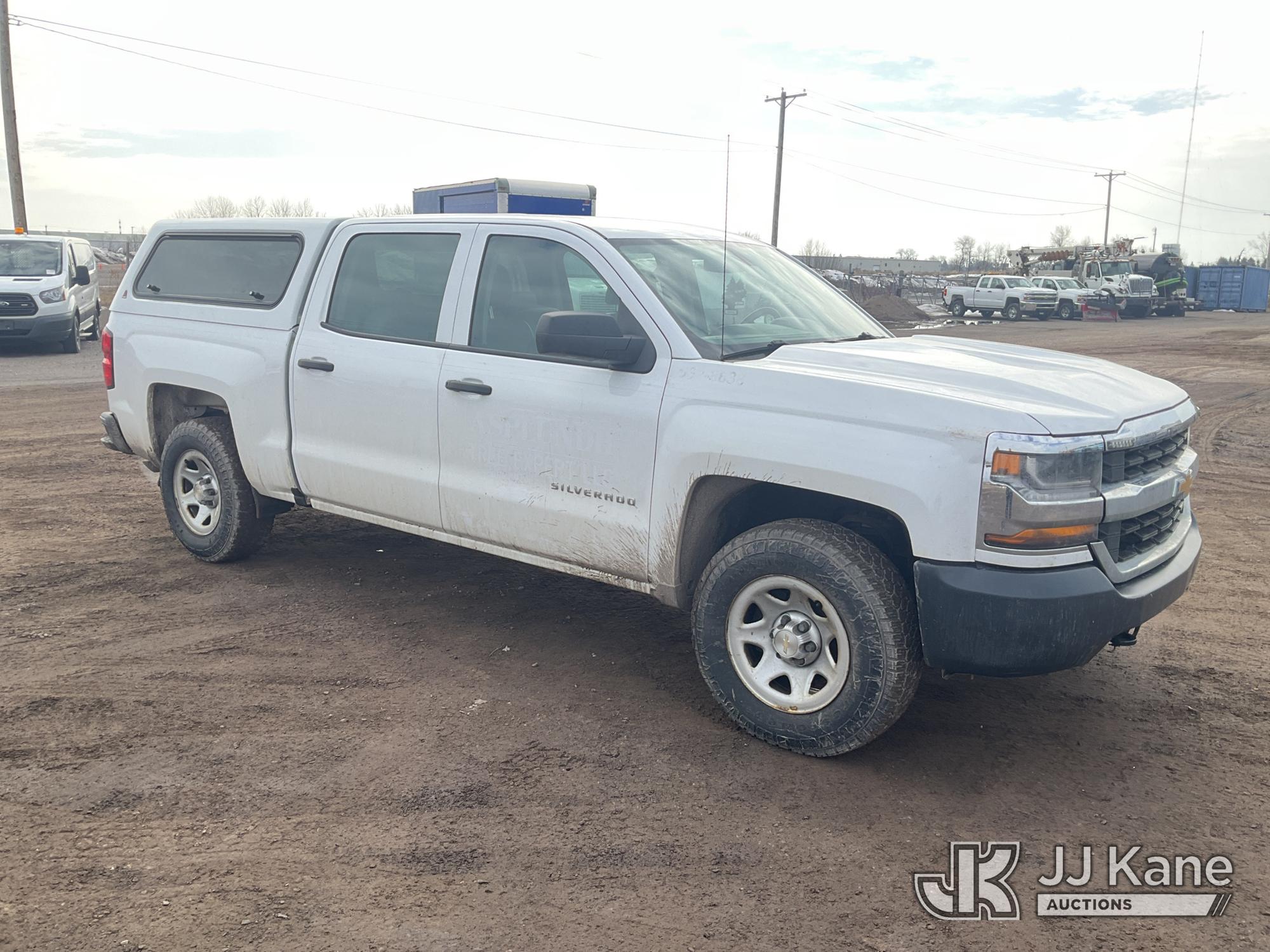 2018 Chevrolet Silverado 1500 4x4 Crew-Cab Pickup Truck, 5.3L V8 OHV 16V gas, 6-Speed Automatic, A/C, with bed cap, (235,481 miles) (Runs & Moves) (Check Engine Light On, Body Damage) (Seller States: Needs A New Windshield) This is a Titled Item*