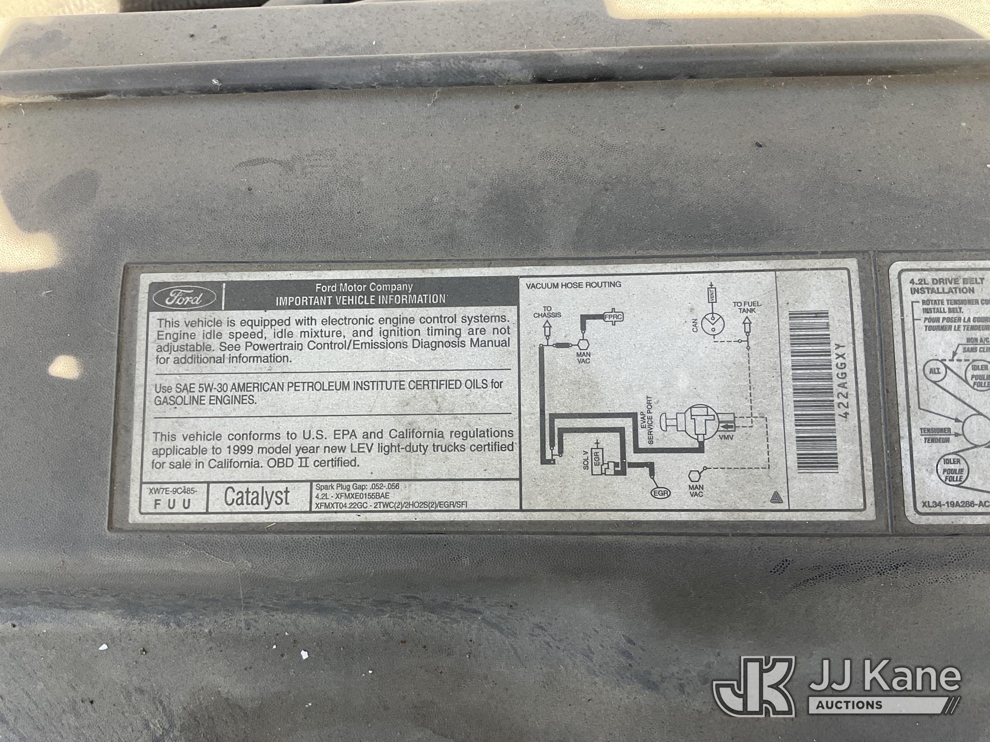 1999 Ford F-150 Extended-Cab Pickup Truck, s/n 1FTZX1729XKB19423, 4.2L V6 OHV 12V RWD, GAS, Auto, A/C, with Tow Package, True Mileage Unknown (Runs & Moves, Hard To Shift To Park) (Bidding Restricted to Licensed Vehicle Dealers Only), This is a Titled Item*
