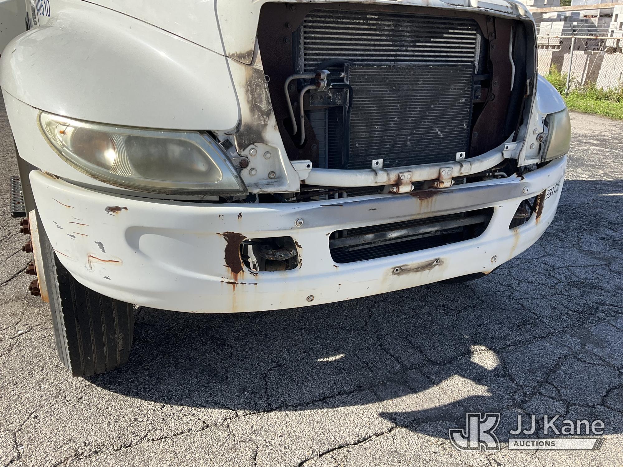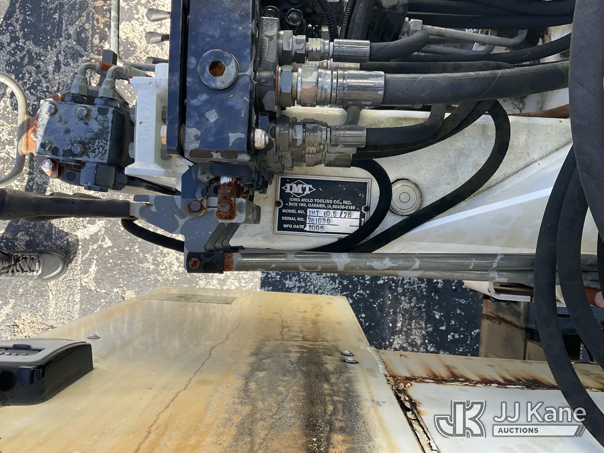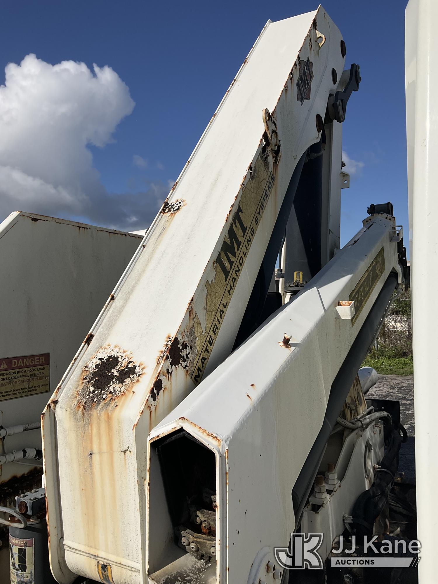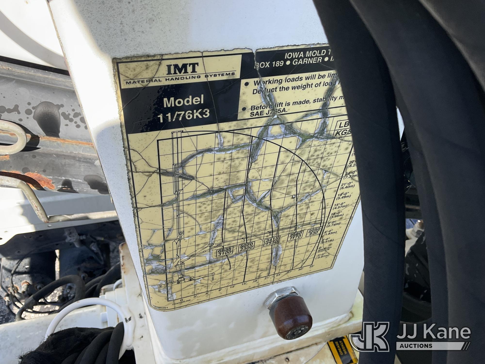 IMT 11/76-K3, 6,835 Lb Knuckleboom Crane s/n 761036, with 30 ft. reach, dual controls & 2 hyd outriggers, mounted behind cab on 2006 International 4300 URD/Flatbed Truck, 7.6L L6 Diesel, 6-spd, A/C, (Exempt from Odometer Disclosure - Reads 134,530 miles) (Runs & Moves With Jump, Blown Hydraulic Hoses, Boom Operating Condition Unknown, ABS Light On, Body Damage & Rust, Interior & Engine Grill Damaged) (FL Residents Purchasing Titled Items – tax, title & registration fees will be collected at the maximum rate of $400.00 under 25,999 and $800.00 for Over 26,000 and $250.00 for Trailers – Proof of insurance is mandatory; Out of State Residents Purchasing Title Items – tax will be collected based upon your state rate) (Reads 7,833 hours) This is a Titled Item*