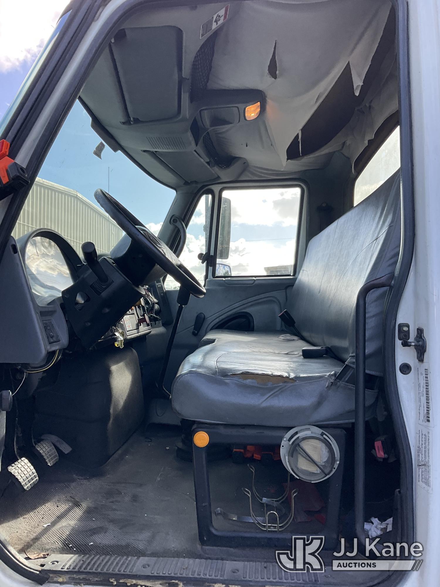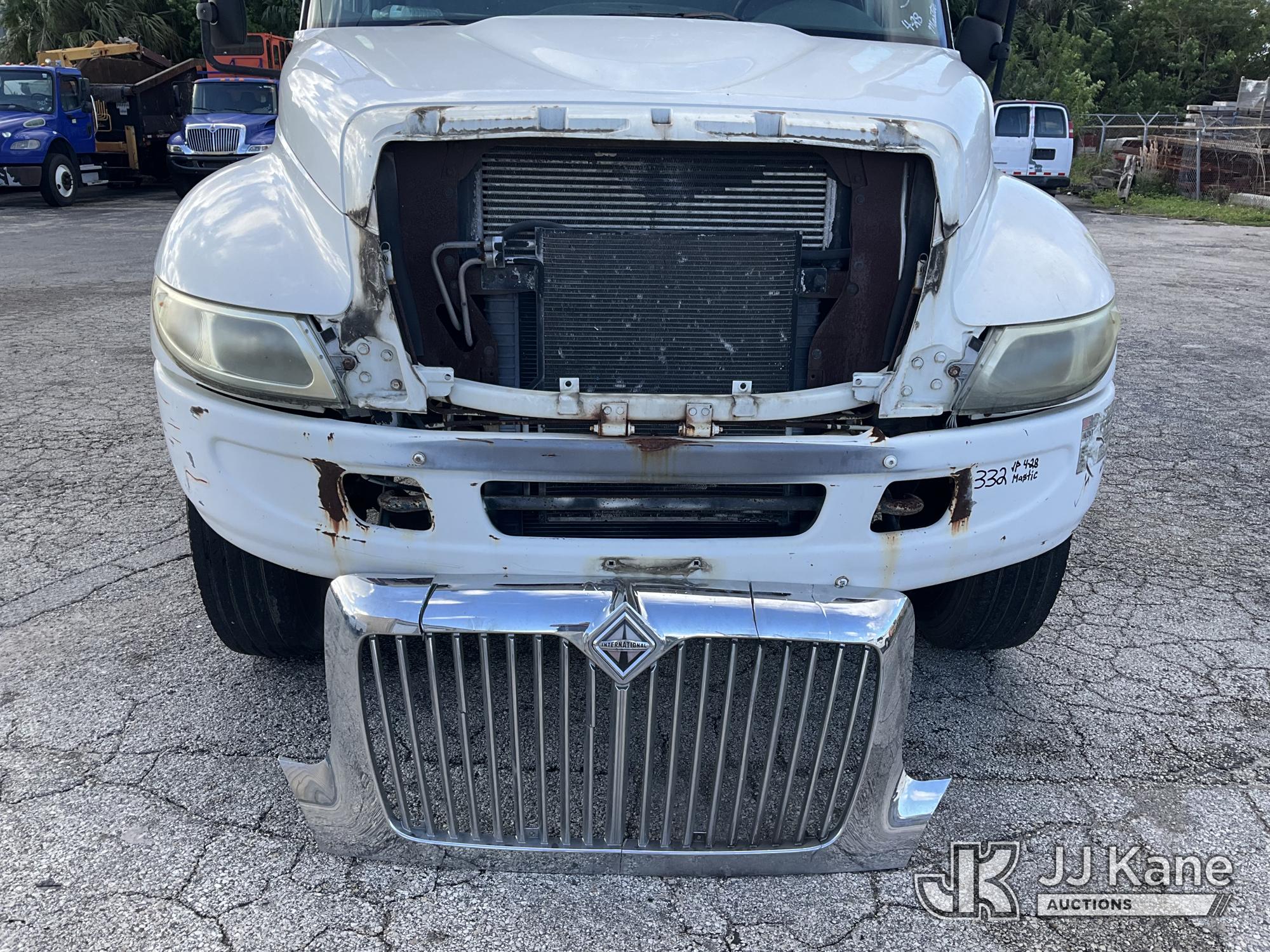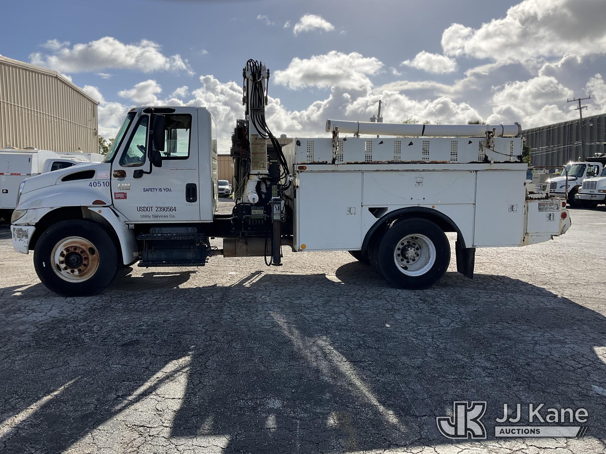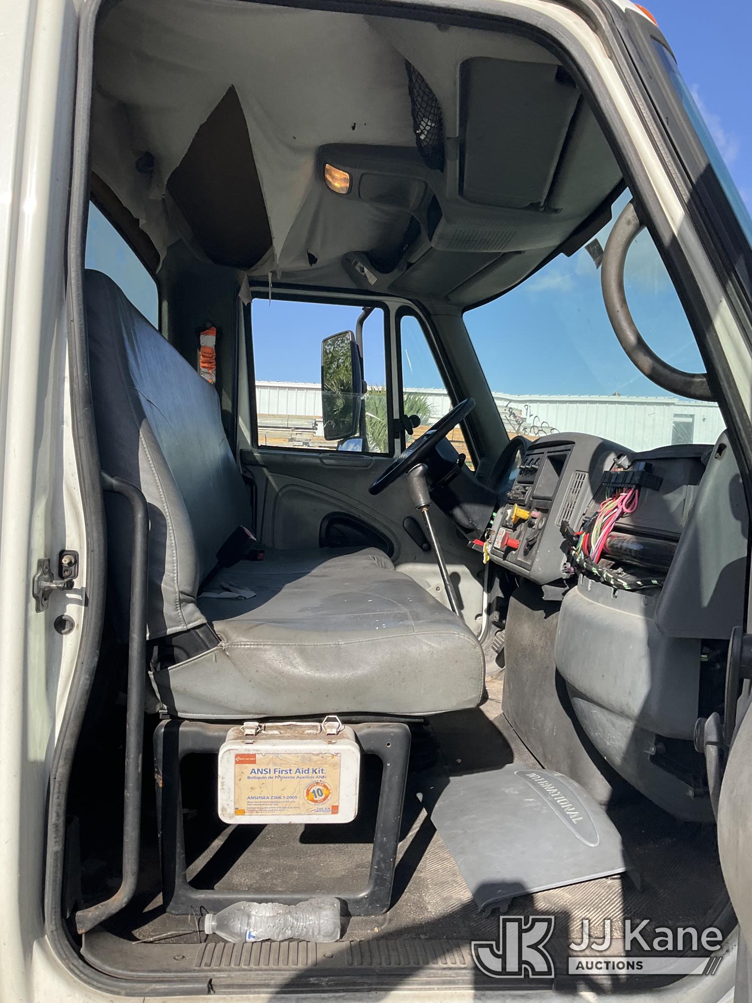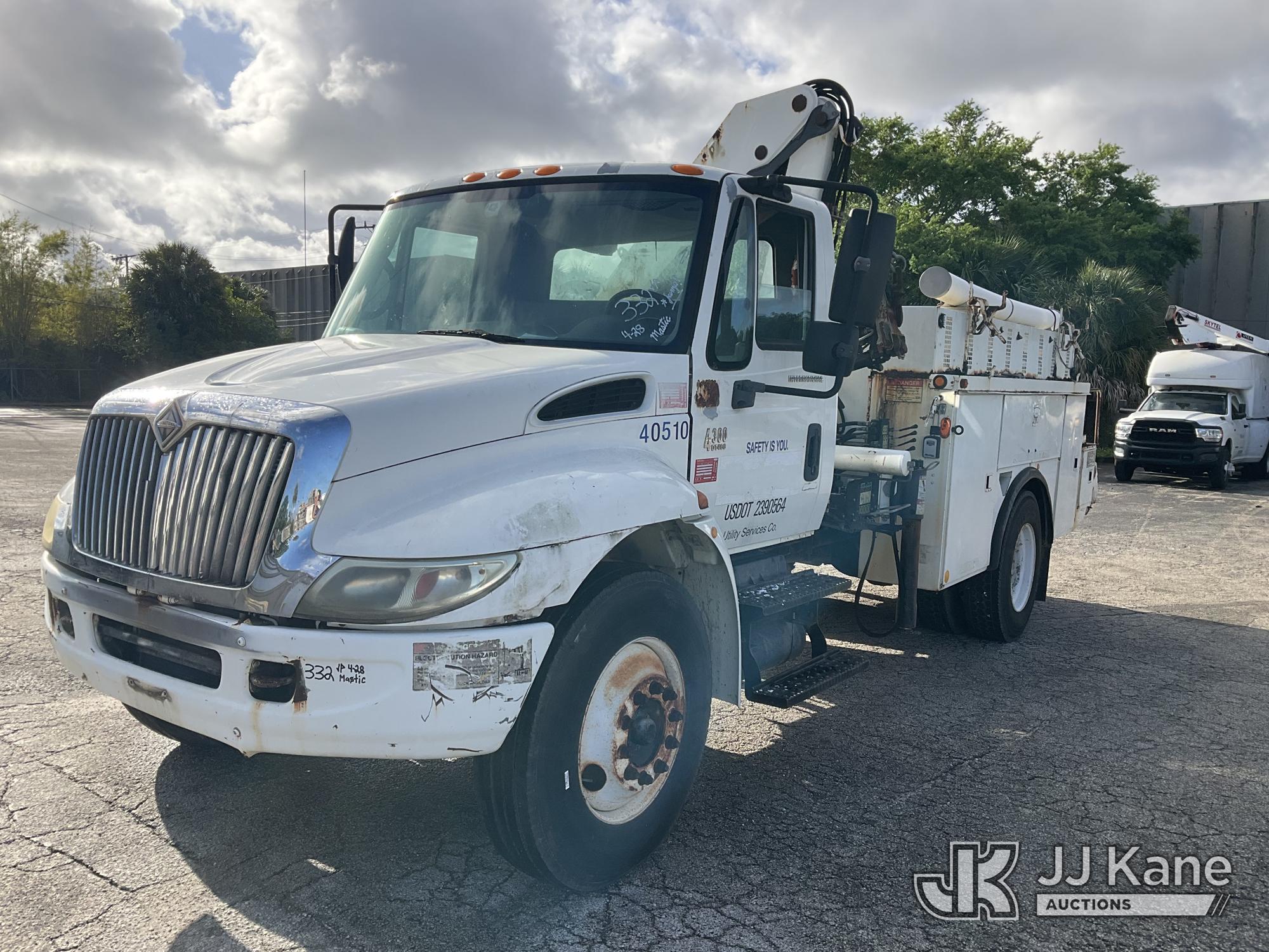 IMT 11/76-K3, 6,835 Lb Knuckleboom Crane s/n 761036, with 30 ft. reach, dual controls & 2 hyd outriggers, mounted behind cab on 2006 International 4300 URD/Flatbed Truck, 7.6L L6 Diesel, 6-spd, A/C, (Exempt from Odometer Disclosure - Reads 134,530 miles) (Runs & Moves With Jump, Blown Hydraulic Hoses, Boom Operating Condition Unknown, ABS Light On, Body Damage & Rust, Interior & Engine Grill Damaged) (FL Residents Purchasing Titled Items – tax, title & registration fees will be collected at the maximum rate of $400.00 under 25,999 and $800.00 for Over 26,000 and $250.00 for Trailers – Proof of insurance is mandatory; Out of State Residents Purchasing Title Items – tax will be collected based upon your state rate) (Reads 7,833 hours) This is a Titled Item*