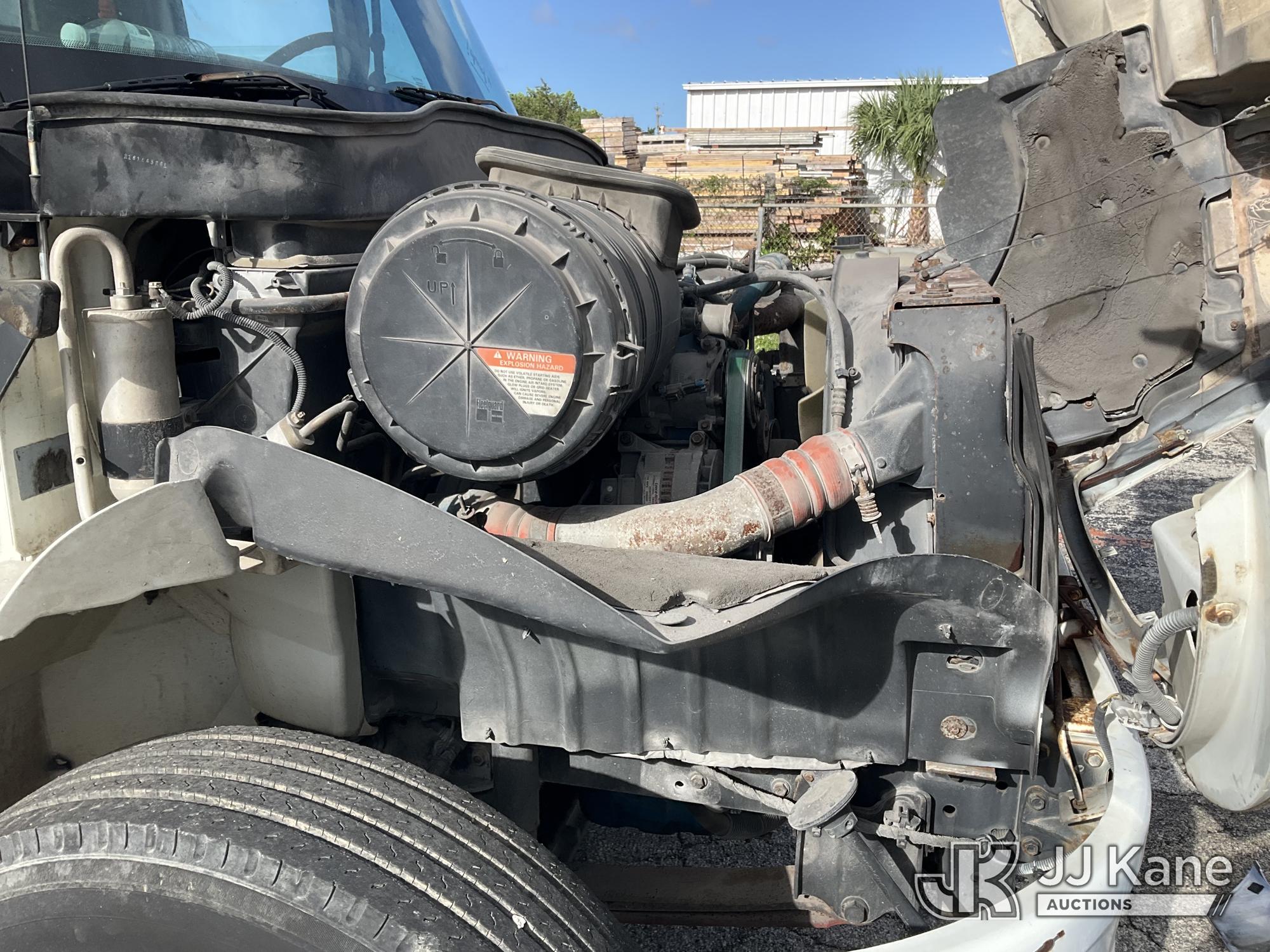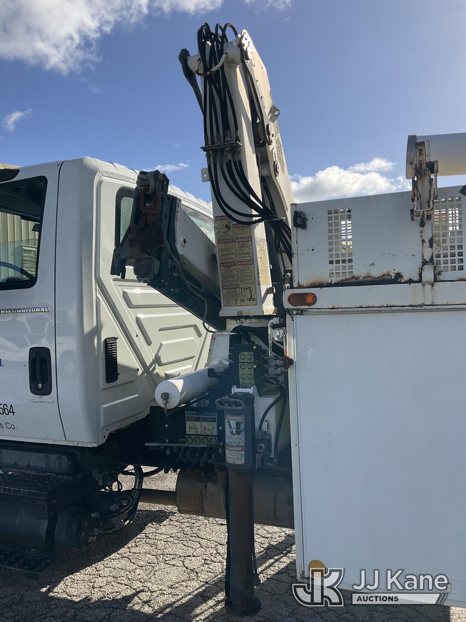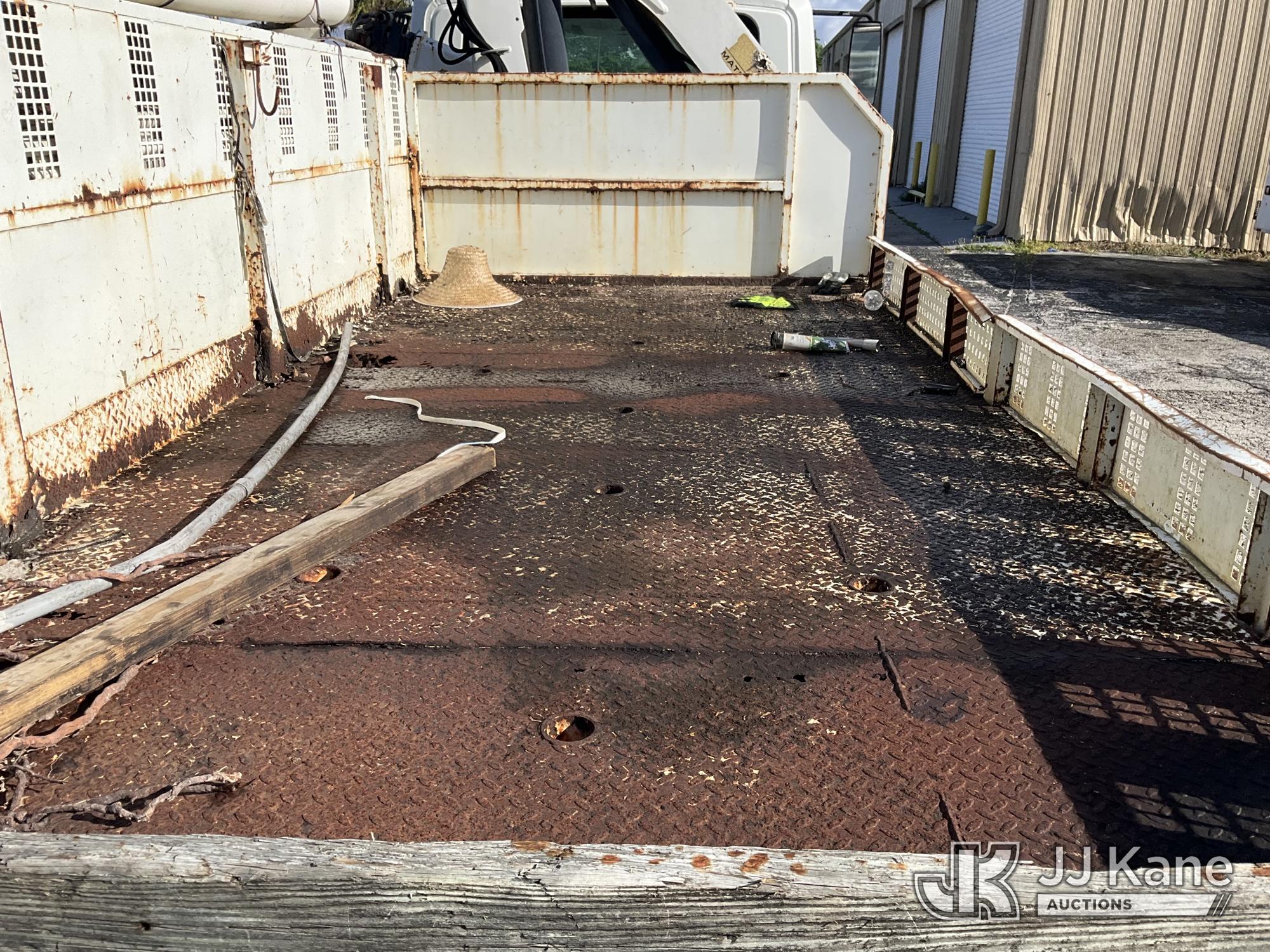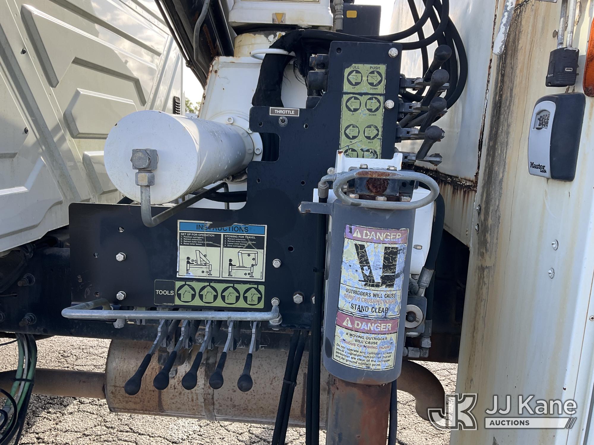 IMT 11/76-K3, 6,835 Lb Knuckleboom Crane s/n 761036, with 30 ft. reach, dual controls & 2 hyd outriggers, mounted behind cab on 2006 International 4300 URD/Flatbed Truck, 7.6L L6 Diesel, 6-spd, A/C, (Exempt from Odometer Disclosure - Reads 134,530 miles) (Runs & Moves With Jump, Blown Hydraulic Hoses, Boom Operating Condition Unknown, ABS Light On, Body Damage & Rust, Interior & Engine Grill Damaged) (FL Residents Purchasing Titled Items – tax, title & registration fees will be collected at the maximum rate of $400.00 under 25,999 and $800.00 for Over 26,000 and $250.00 for Trailers – Proof of insurance is mandatory; Out of State Residents Purchasing Title Items – tax will be collected based upon your state rate) (Reads 7,833 hours) This is a Titled Item*
