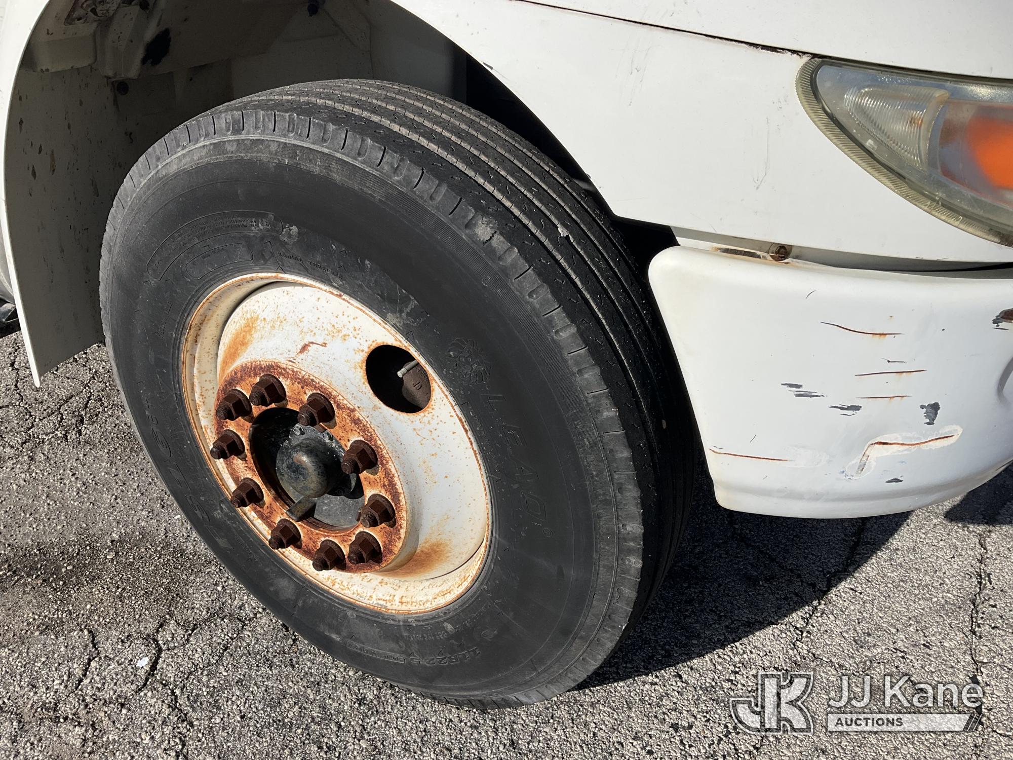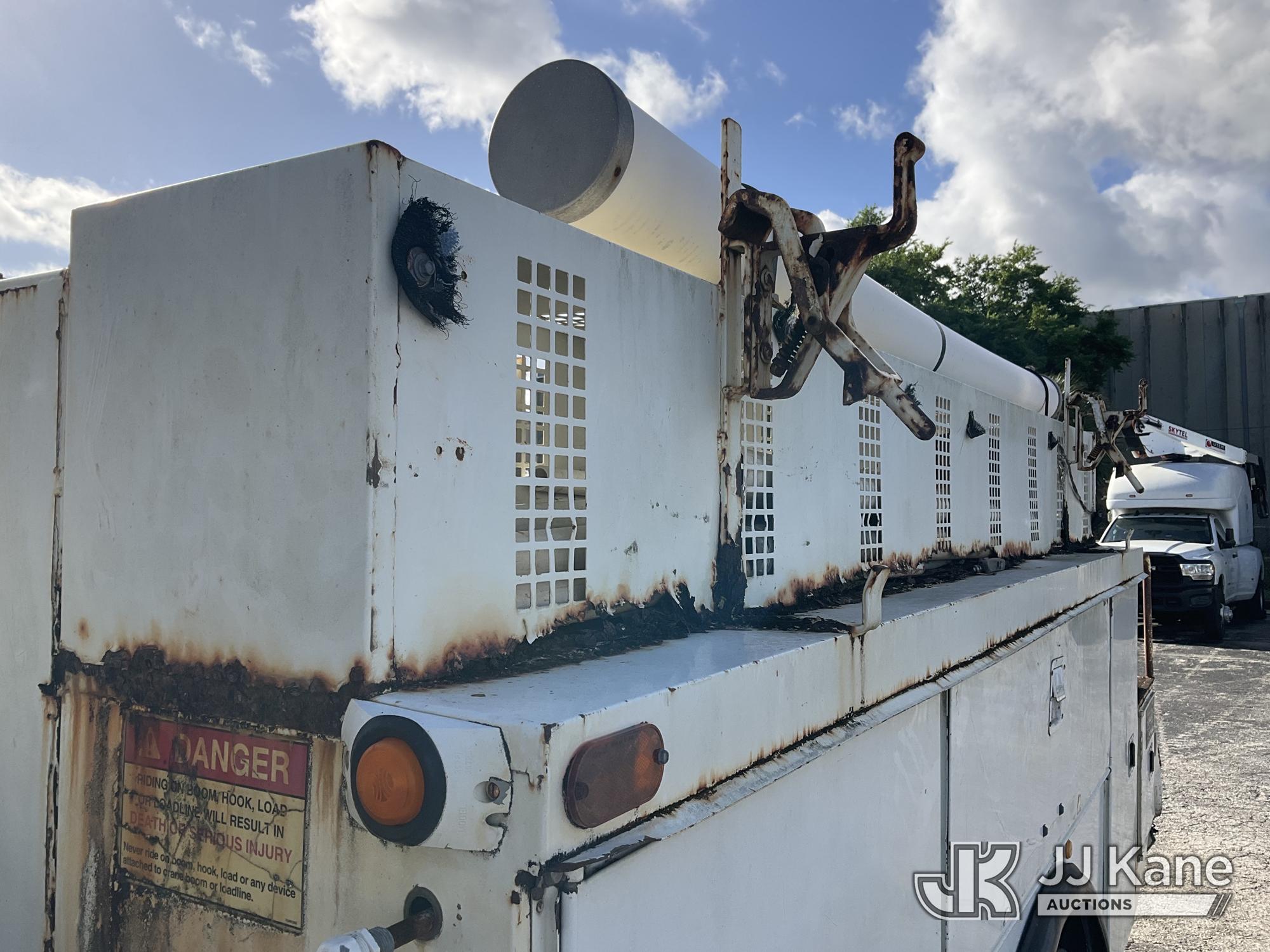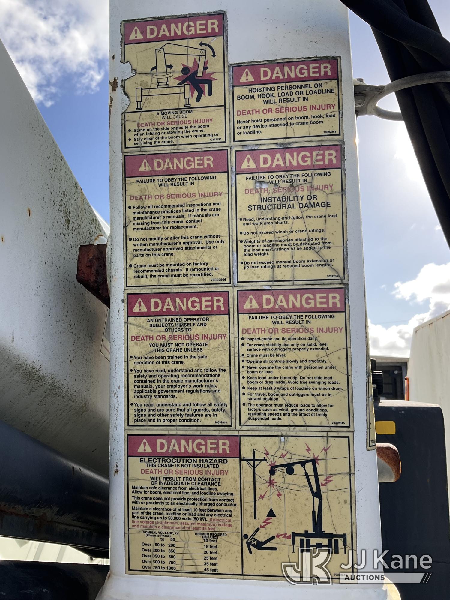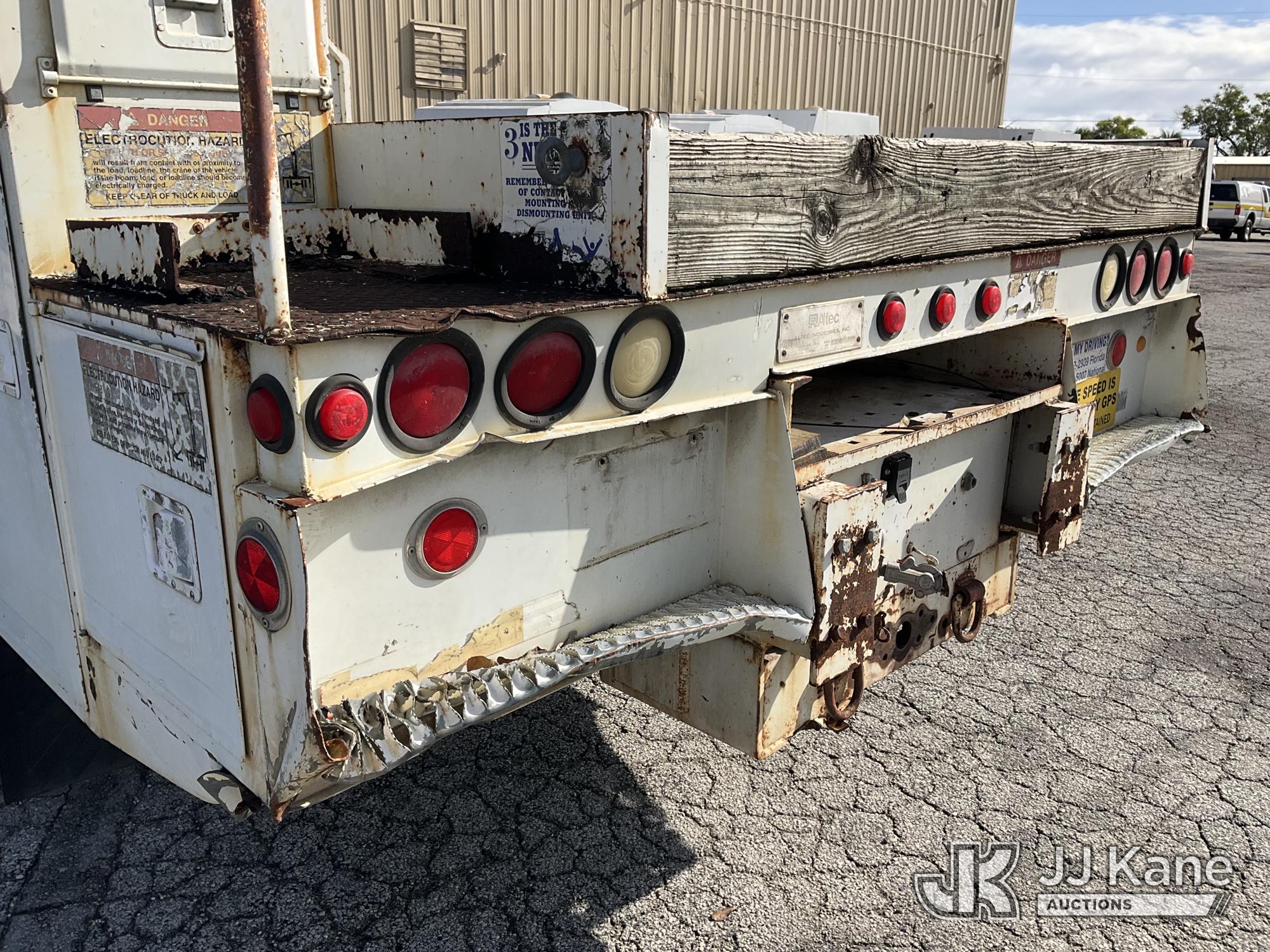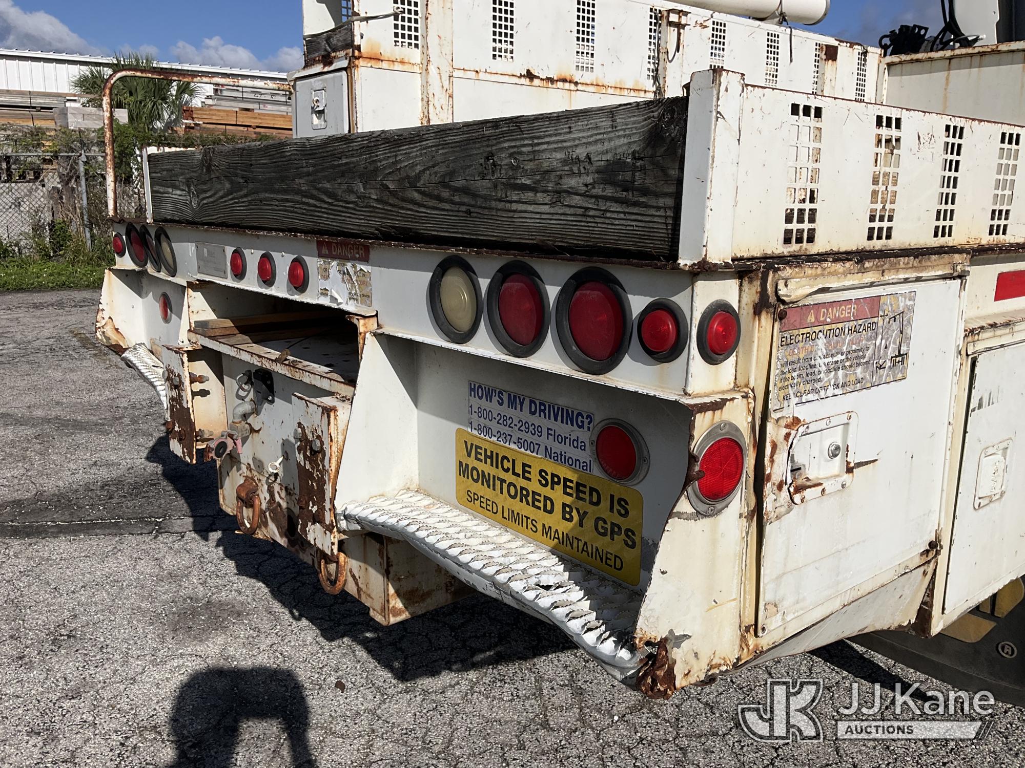 IMT 11/76-K3, 6,835 Lb Knuckleboom Crane s/n 761036, with 30 ft. reach, dual controls & 2 hyd outriggers, mounted behind cab on 2006 International 4300 URD/Flatbed Truck, 7.6L L6 Diesel, 6-spd, A/C, (Exempt from Odometer Disclosure - Reads 134,530 miles) (Runs & Moves With Jump, Blown Hydraulic Hoses, Boom Operating Condition Unknown, ABS Light On, Body Damage & Rust, Interior & Engine Grill Damaged) (FL Residents Purchasing Titled Items – tax, title & registration fees will be collected at the maximum rate of $400.00 under 25,999 and $800.00 for Over 26,000 and $250.00 for Trailers – Proof of insurance is mandatory; Out of State Residents Purchasing Title Items – tax will be collected based upon your state rate) (Reads 7,833 hours) This is a Titled Item*