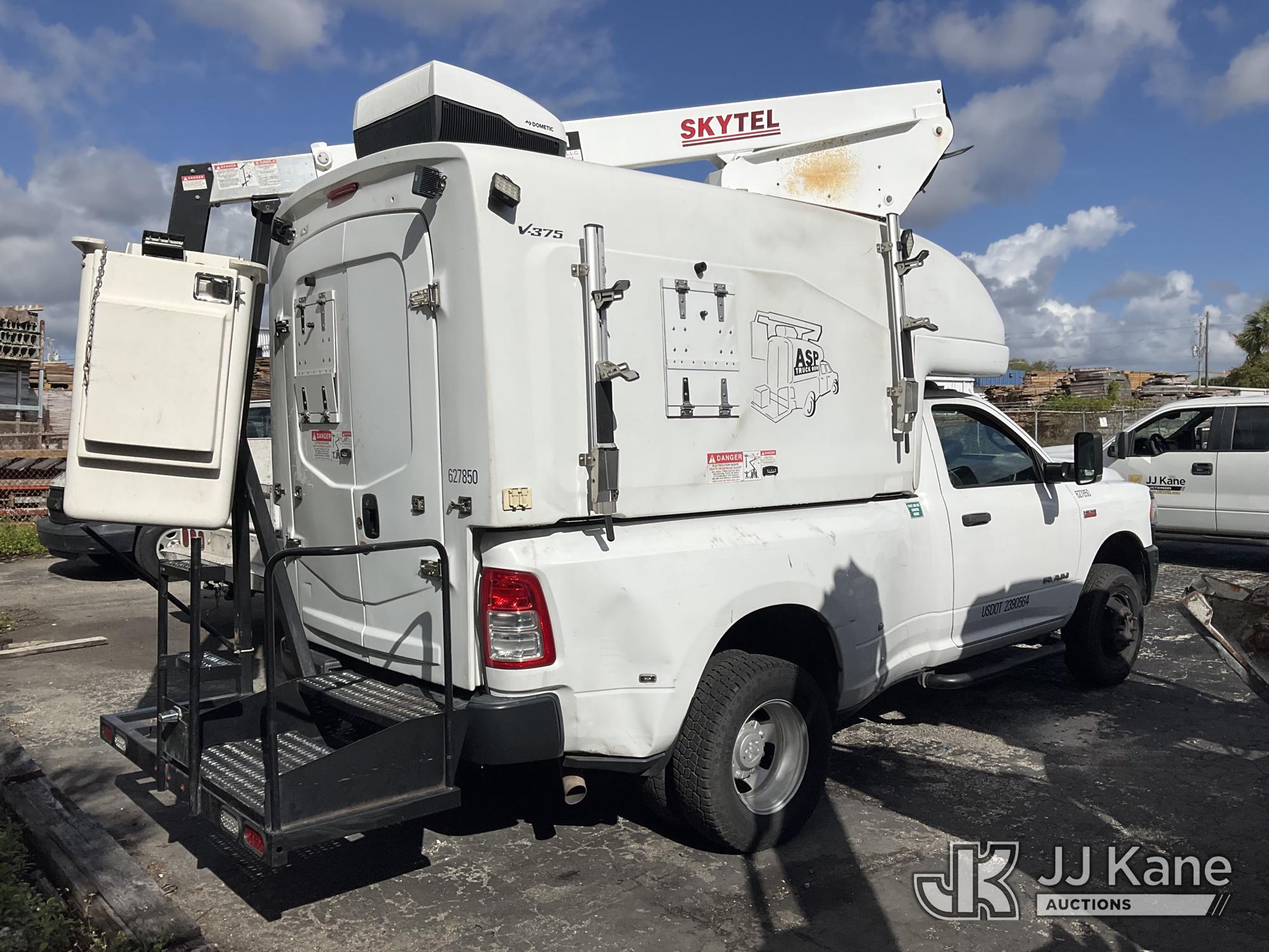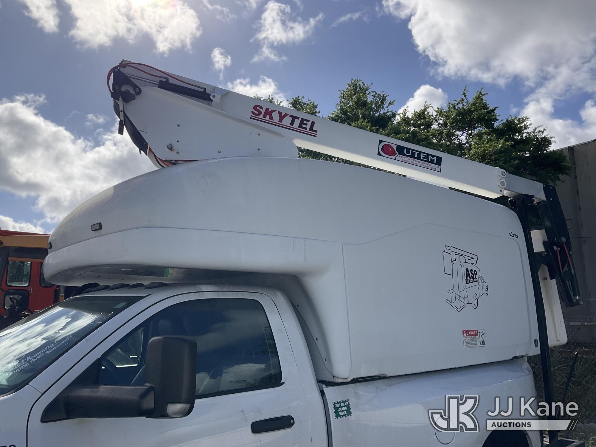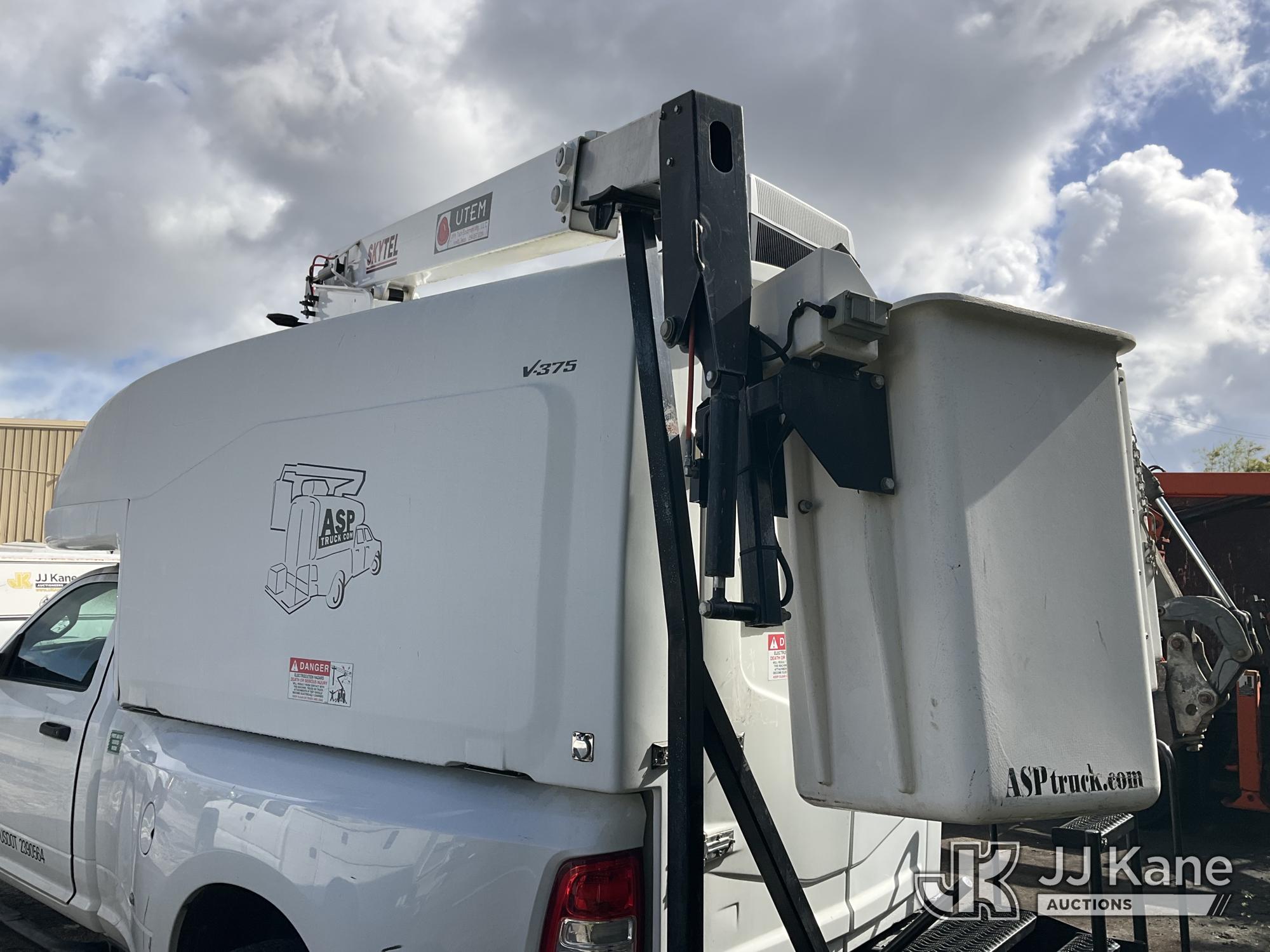UTEM SKYTEL V375, 39 ft, Telescopic Non-Insulated Bucket Truck with single-man bucket, mounted behind cab on 2020 RAM 3500 4x4 Fiber Optic Splicing Truck, 8-cyl gas, Auto, A/C, with Unit Height 12' Ft., True Mileage Unknown (Not Running, No Keys, Engine Parts Removed, Upper Unit Operating Condition Unknown) (FL Residents Purchasing Titled Items – tax, title & registration fees will be collected at the maximum rate of $400.00 under 25,999 and $800.00 for Over 26,000 and $250.00 for Trailers – Proof of insurance is mandatory; Out of State Residents Purchasing Title Items – tax will be collected based upon your state rate) This is a Titled Item*