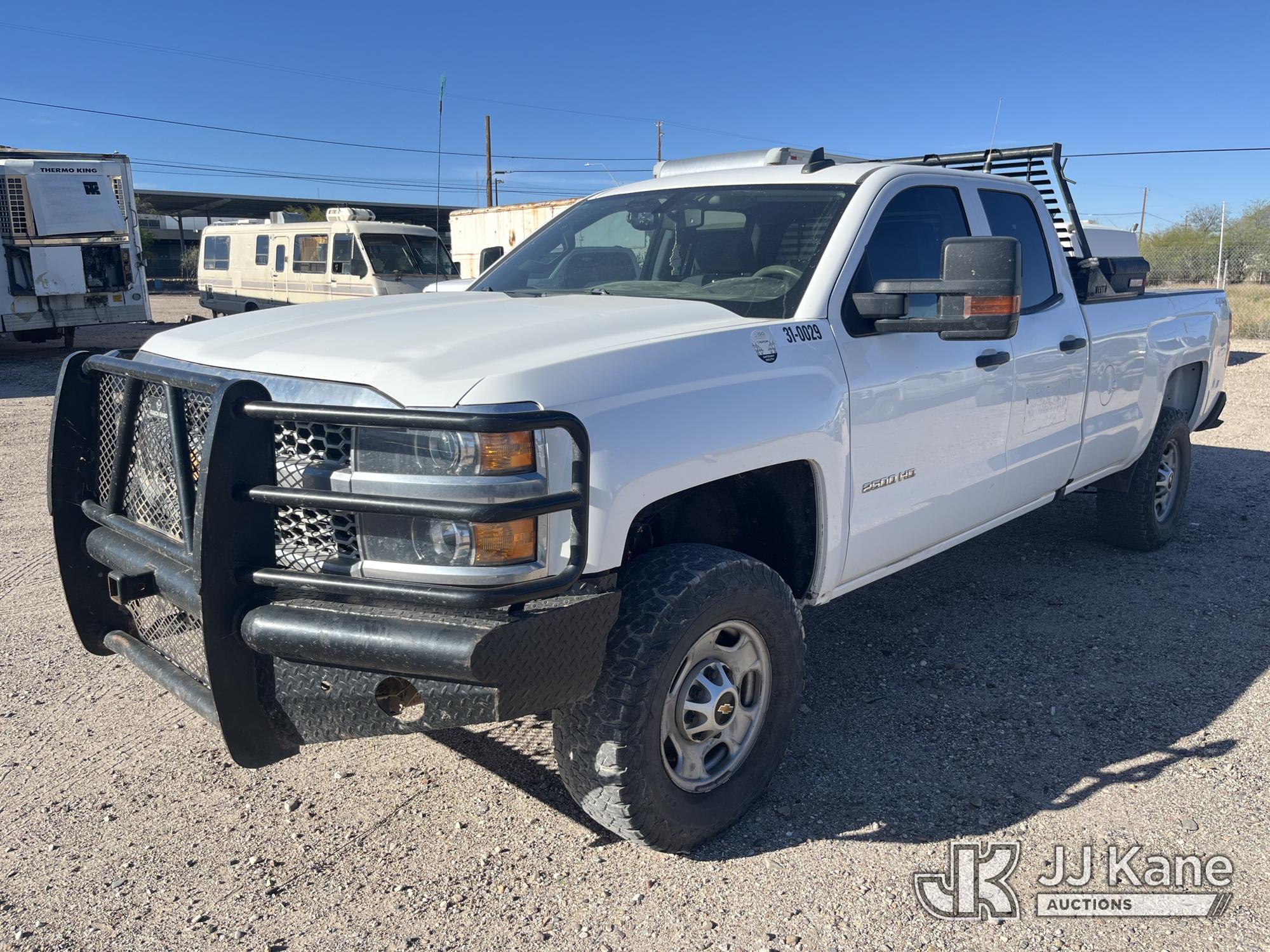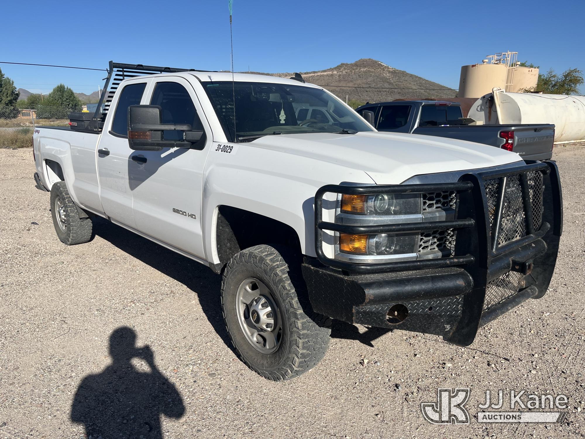 2019 Chevrolet Silverado 2500HD 4x4 Extended-Cab Pickup Truck, 8-cyl gas, 6-Speed Automatic, A/C, with aux fuel tank w/ pump, headache rack, (173,897 miles) (Runs & Moves) (Tire Pressure Light On) (Reads 9,995 hours) This is a Titled Item*