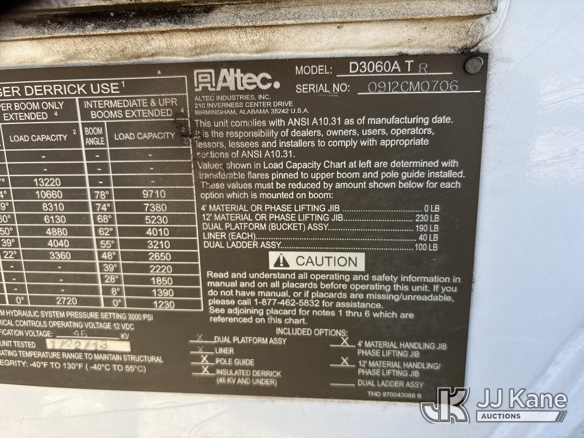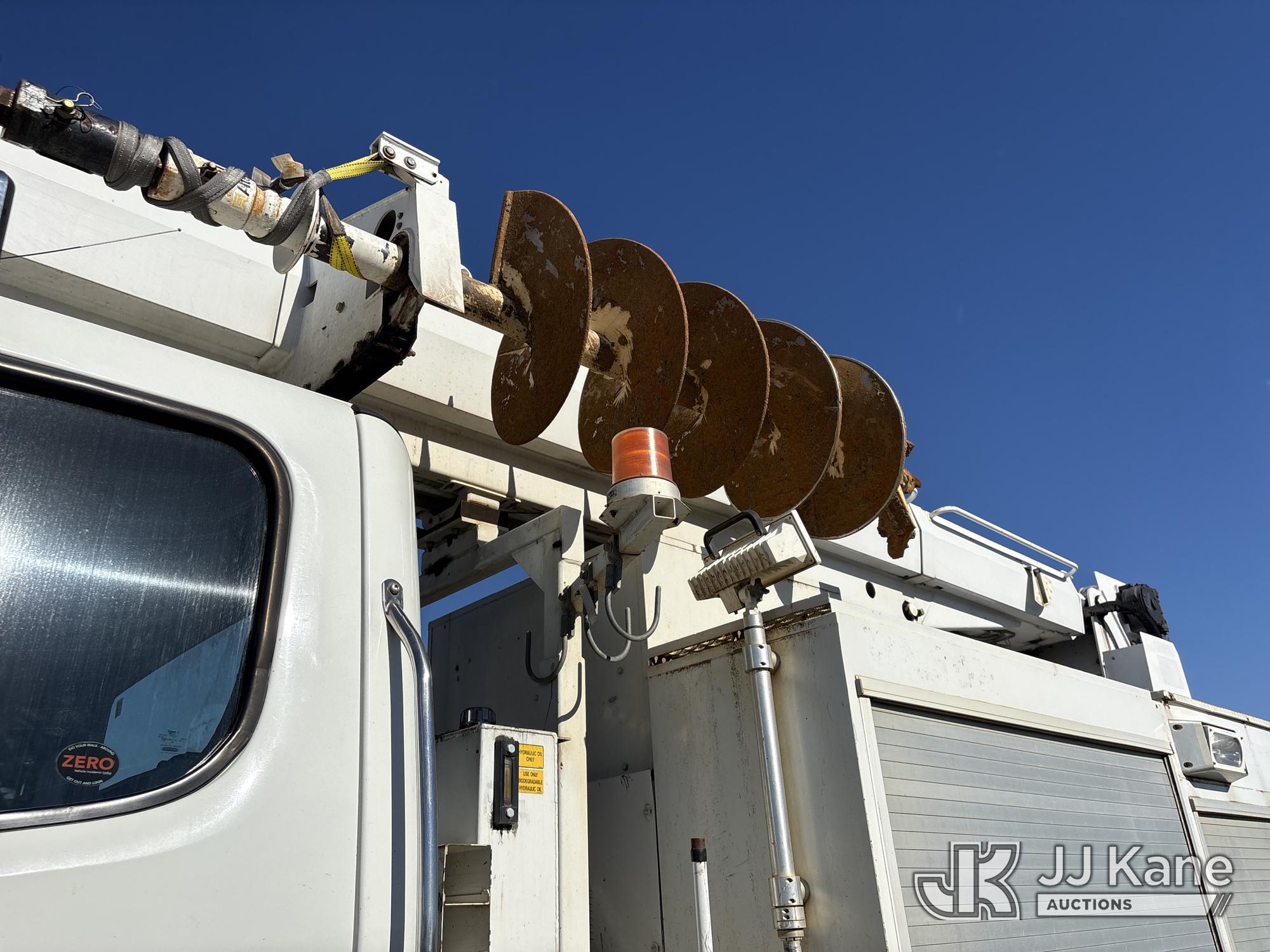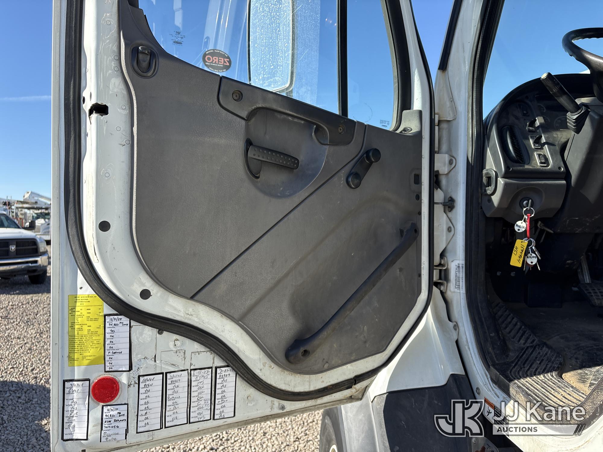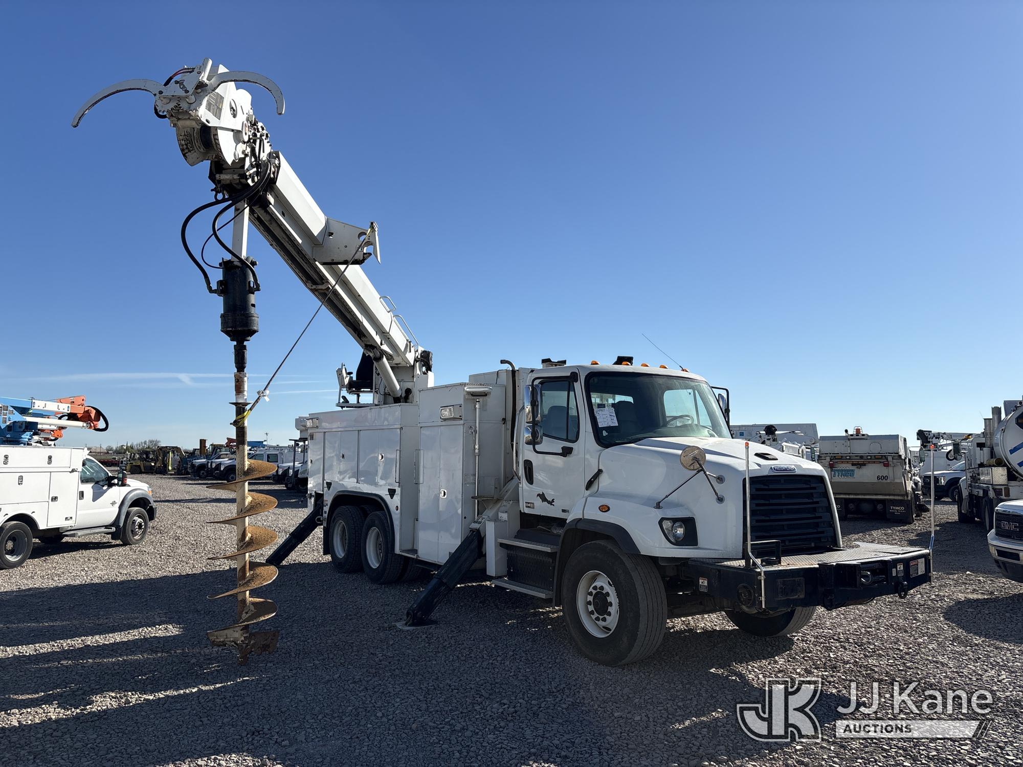 Altec D3060A-TR, 25,150 Lb Digger Derrick s/n 0912CM0706, with 60 ft. sheave height, 4 section hydraulic boom, 2 speed digger, heel winch, pole guides, riding console, 4 hydraulic outriggers, rear mounted on 2013 Freightliner 114SD Utility Truck, 12.8L L6 6X4, DIESEL, Auto, A/C, with front winch, (94,878 miles) (Runs, Moves & Operates ) (Reads 2,818 hours) May be subject to ARB Regulations This is a Titled Item*