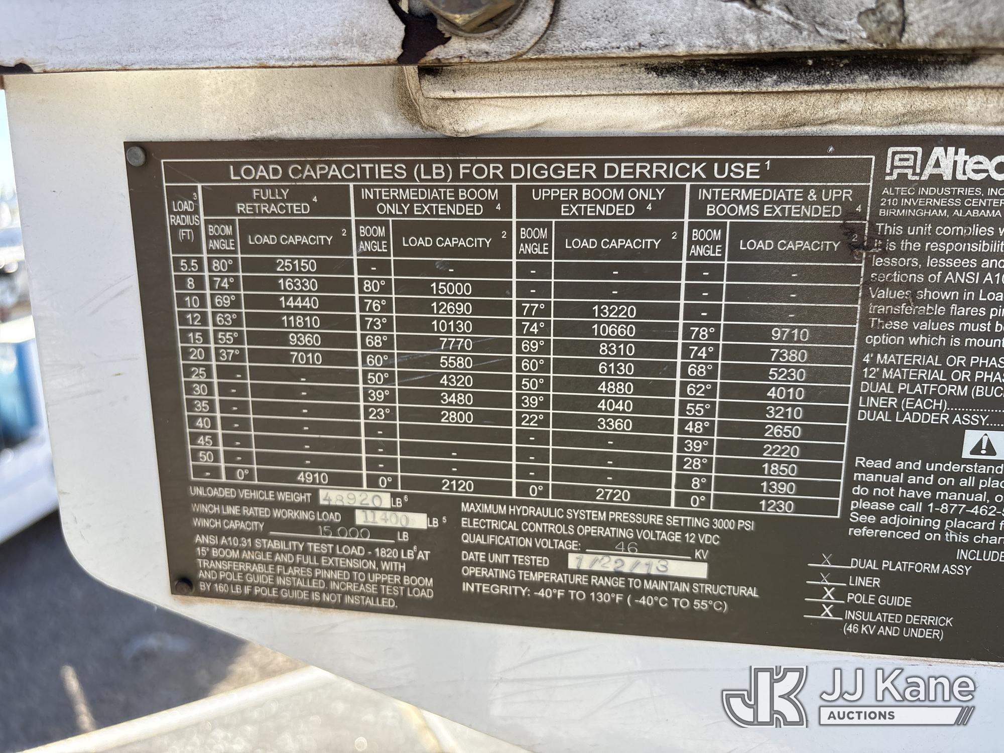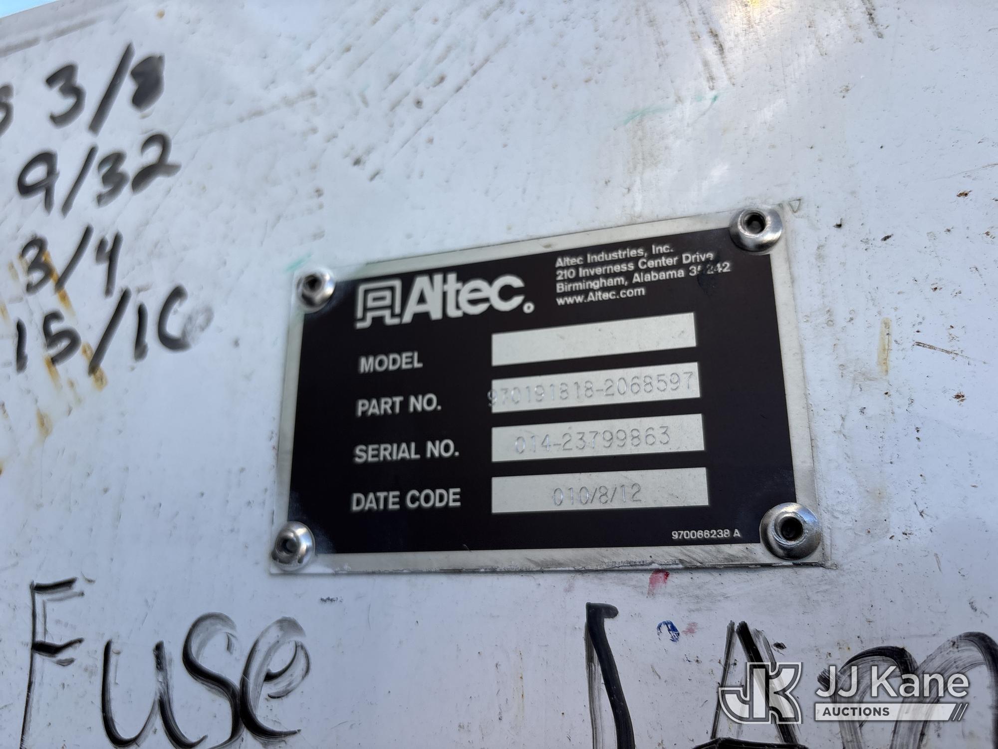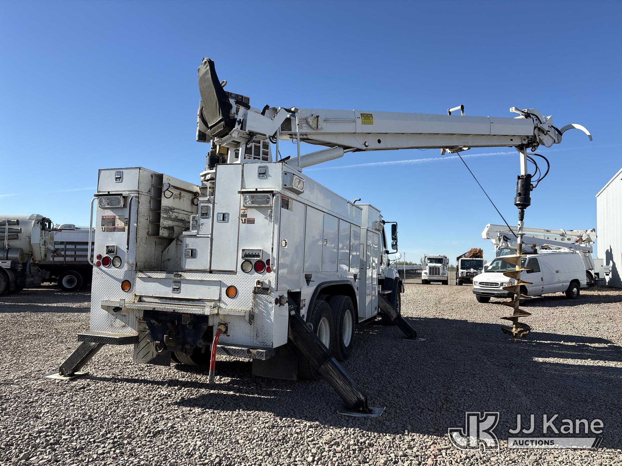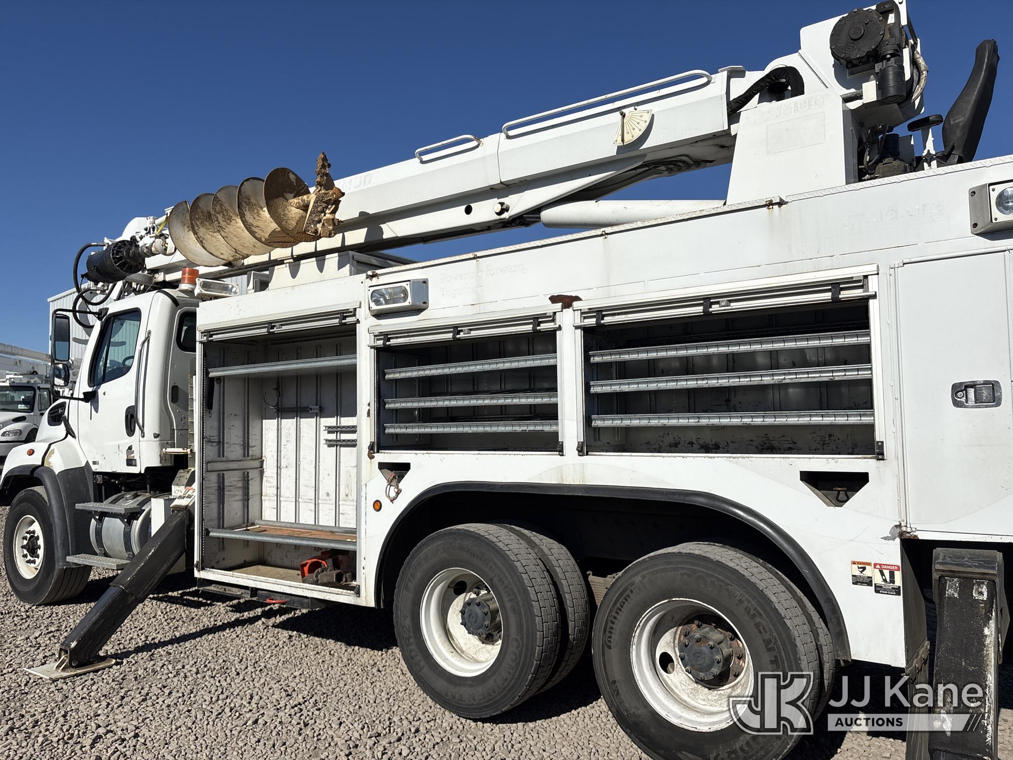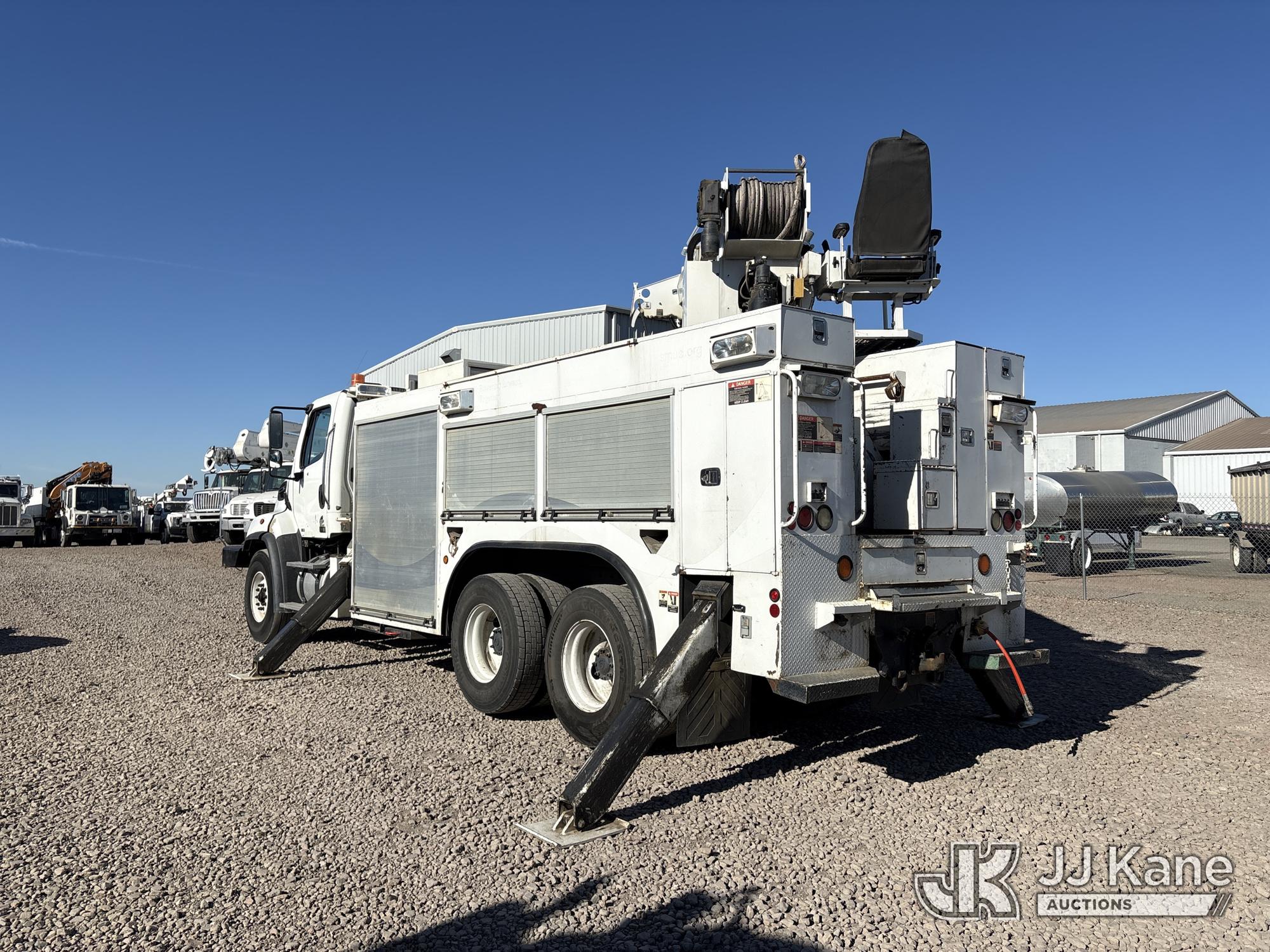 Altec D3060A-TR, 25,150 Lb Digger Derrick s/n 0912CM0706, with 60 ft. sheave height, 4 section hydraulic boom, 2 speed digger, heel winch, pole guides, riding console, 4 hydraulic outriggers, rear mounted on 2013 Freightliner 114SD Utility Truck, 12.8L L6 6X4, DIESEL, Auto, A/C, with front winch, (94,878 miles) (Runs, Moves & Operates ) (Reads 2,818 hours) May be subject to ARB Regulations This is a Titled Item*