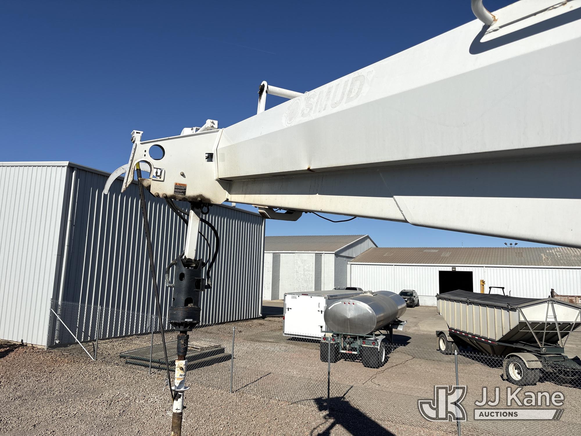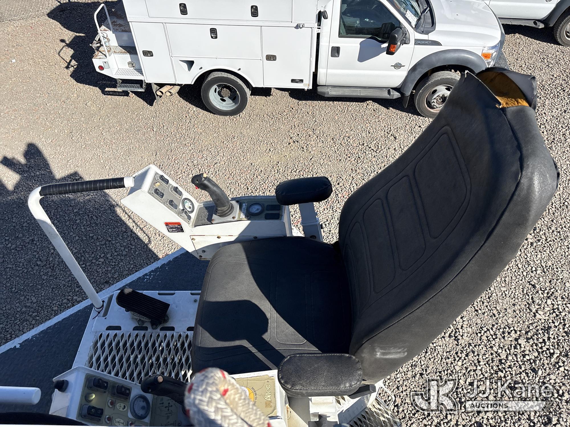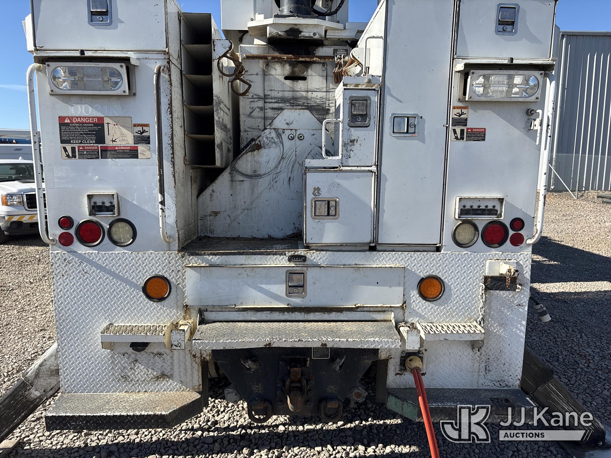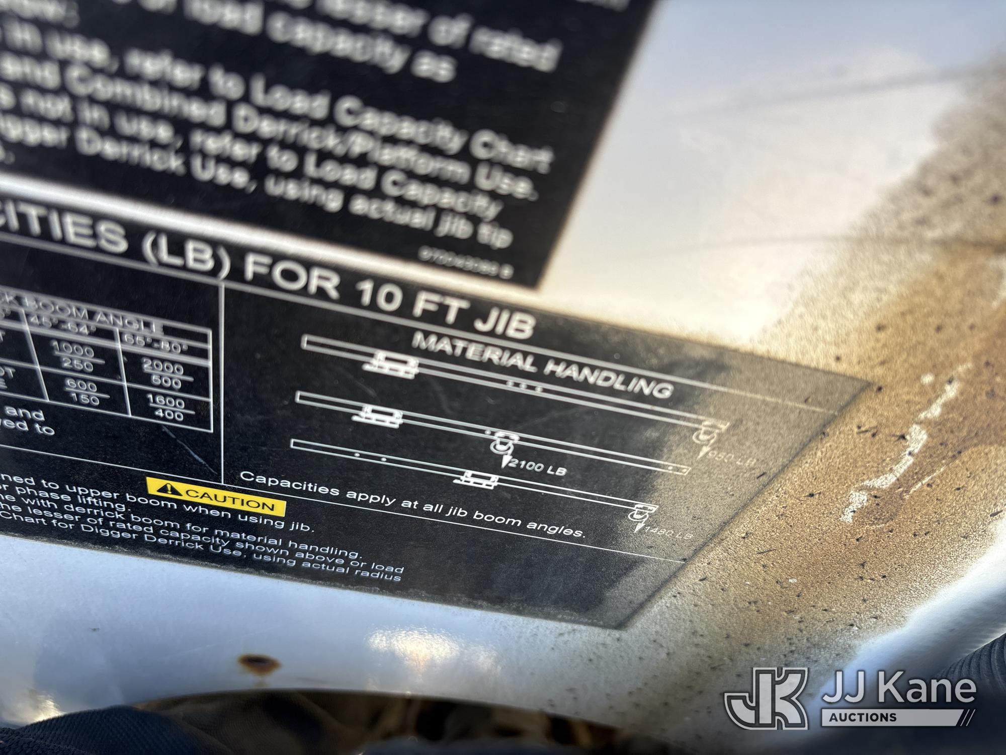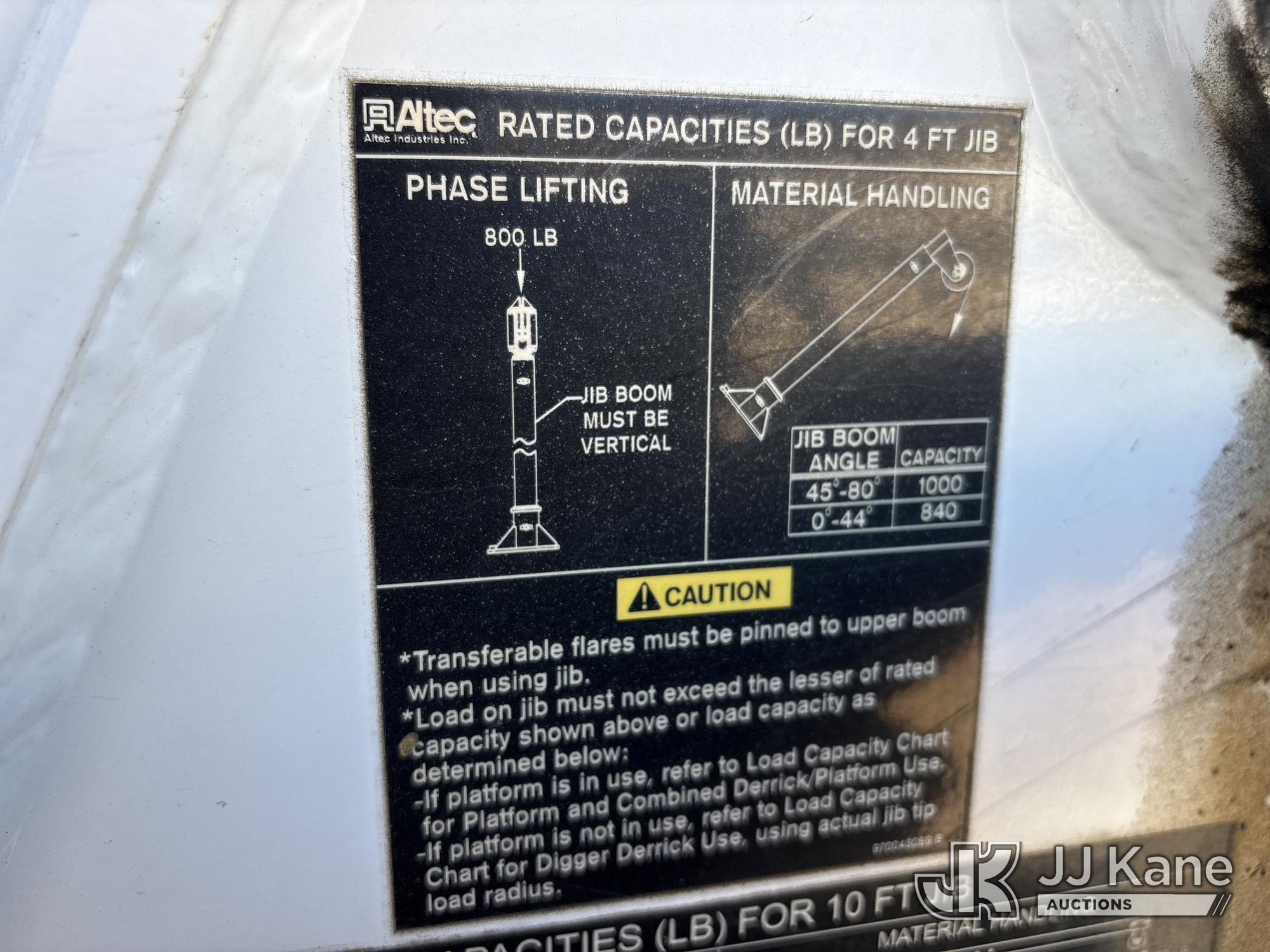 Altec D3060A-TR, 25,150 Lb Digger Derrick s/n 0912CM0706, with 60 ft. sheave height, 4 section hydraulic boom, 2 speed digger, heel winch, pole guides, riding console, 4 hydraulic outriggers, rear mounted on 2013 Freightliner 114SD Utility Truck, 12.8L L6 6X4, DIESEL, Auto, A/C, with front winch, (94,878 miles) (Runs, Moves & Operates ) (Reads 2,818 hours) May be subject to ARB Regulations This is a Titled Item*