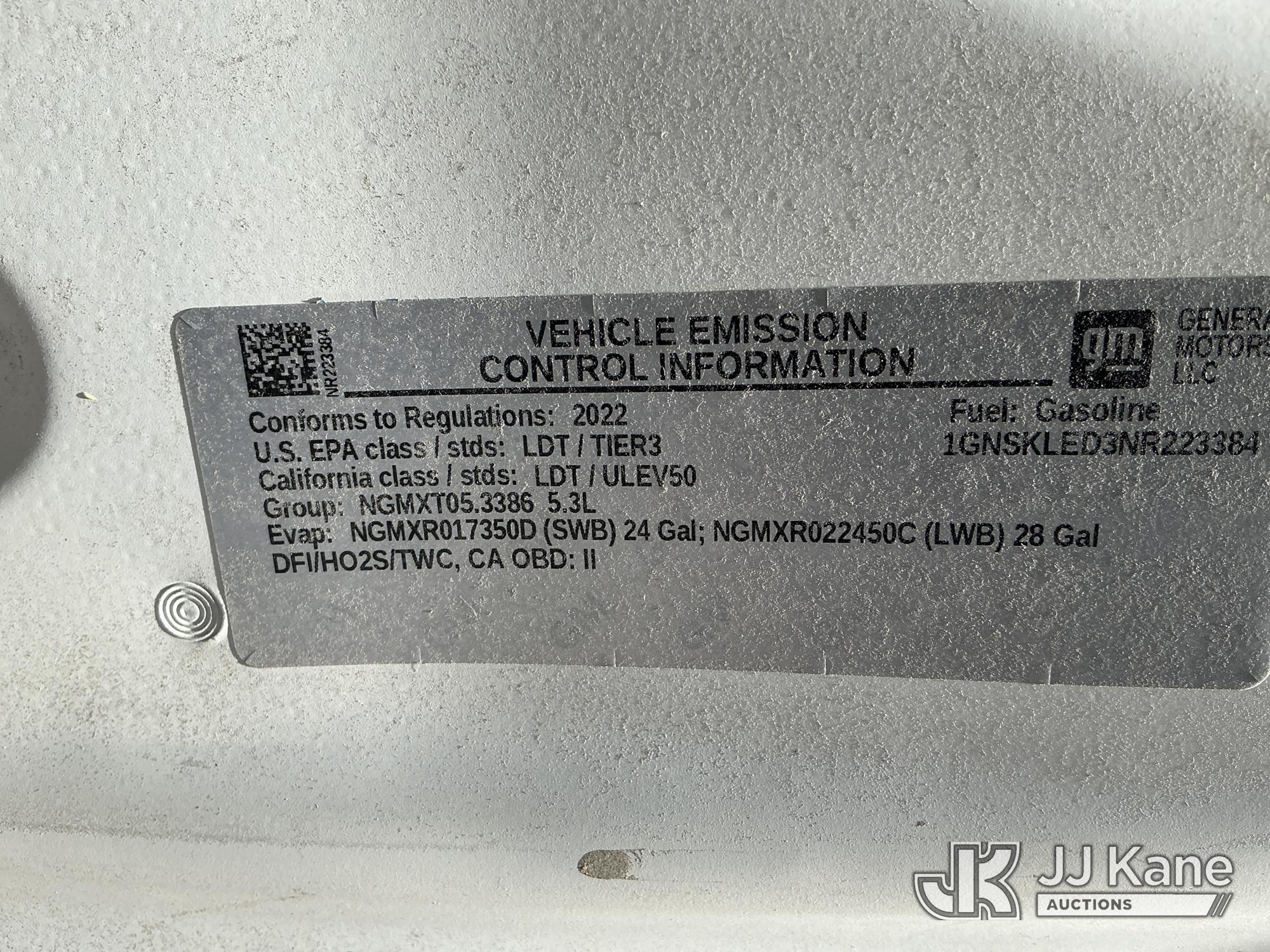 2022 Chevrolet Tahoe 4x4 4-Door Sport Utility Vehicle, 5.3L V8 OHV 16V gas, 10-Speed Automatic, A/C, (84,628 miles) (Runs & Moves) (Body Damage) This is a Titled Item*