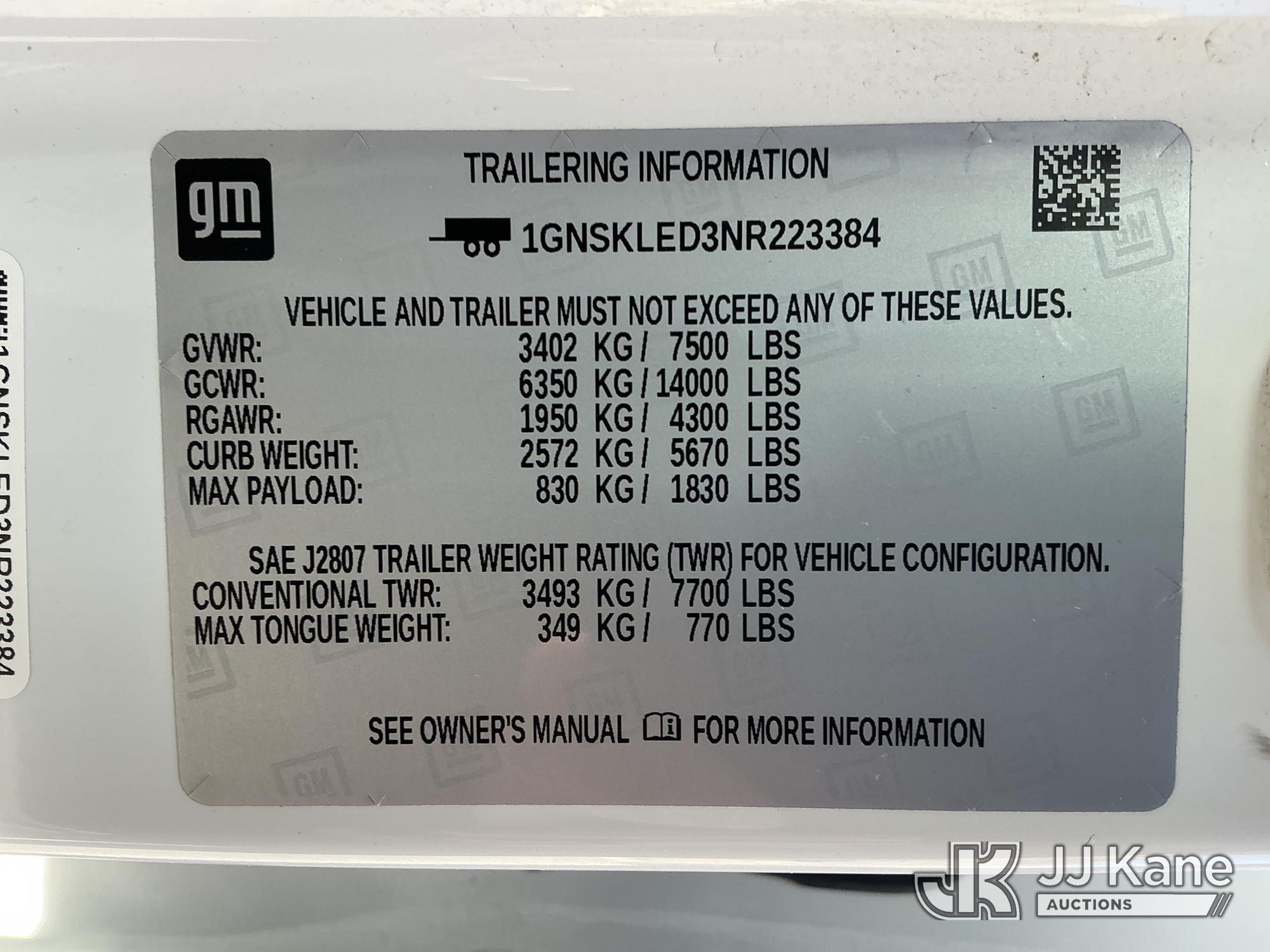| VIN: | 1GNSKLED3NR223384 |