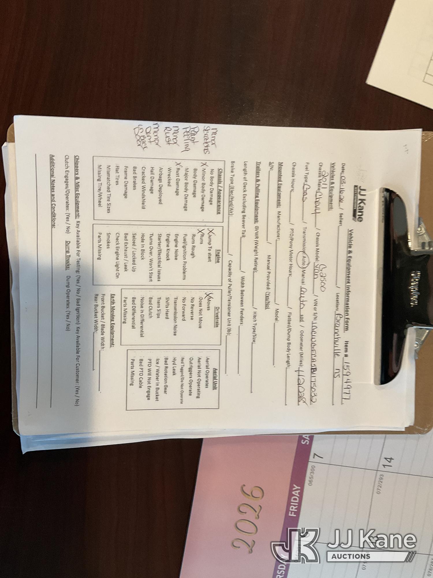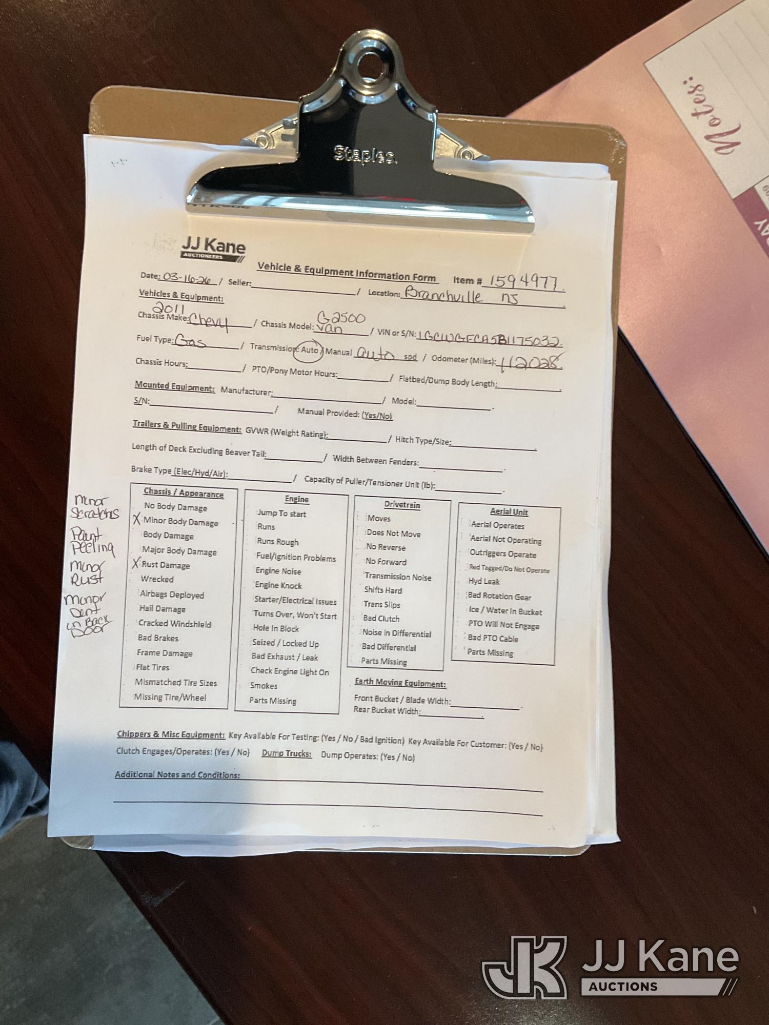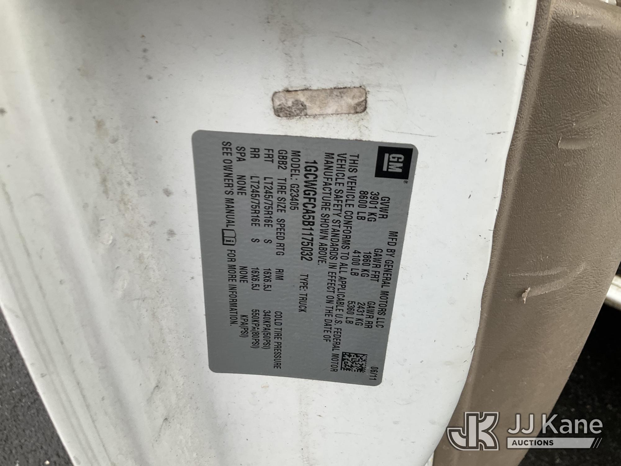 2011 Chevrolet G2500 Cargo Van, 8-cyl gas, Auto, A/C, (112,028 miles) (Runs & Moves) (Engine Light On, Jump To Start, Minor Body Damage, Rust Damage, Needs Tow) This is a Titled Item*