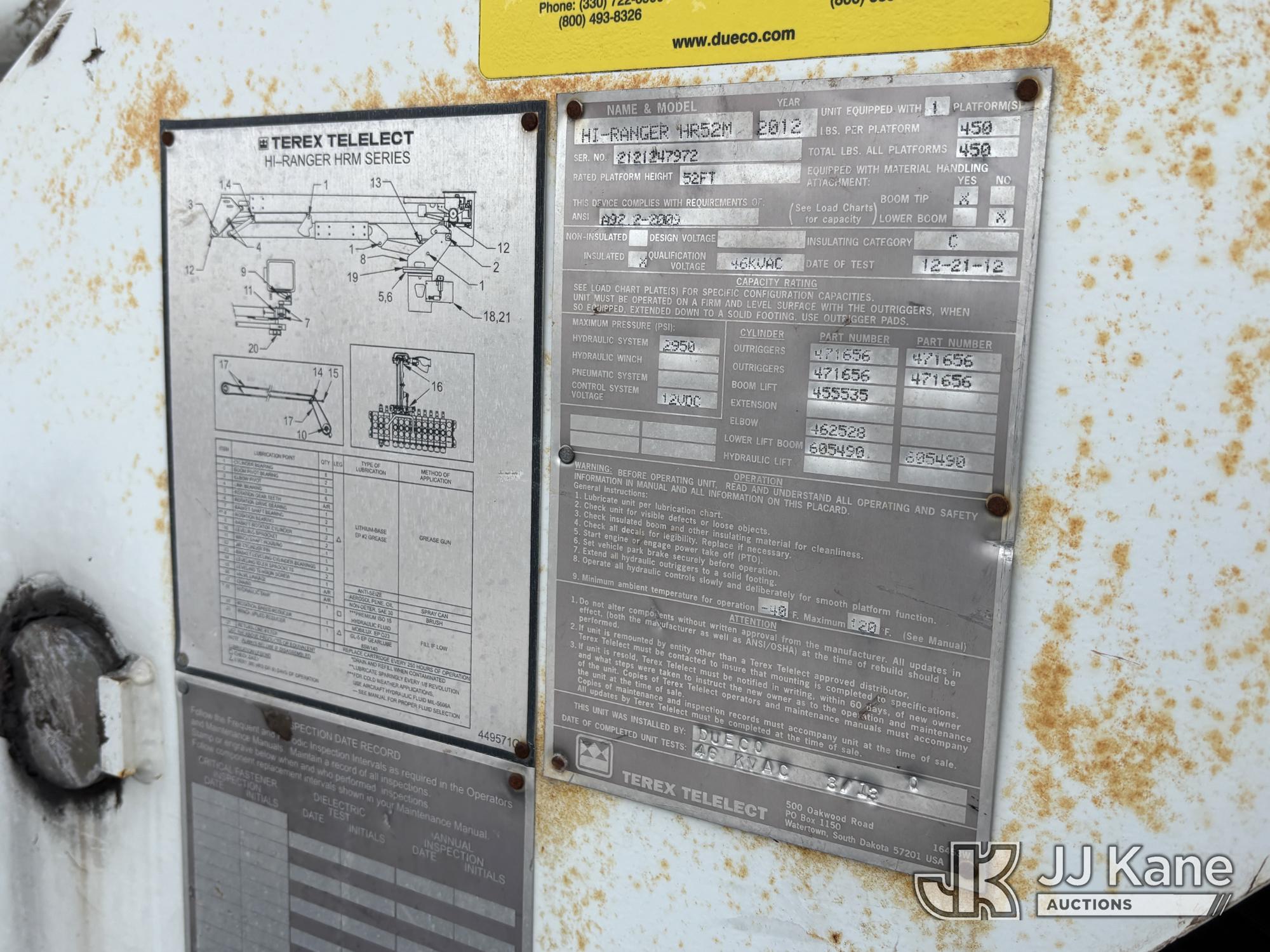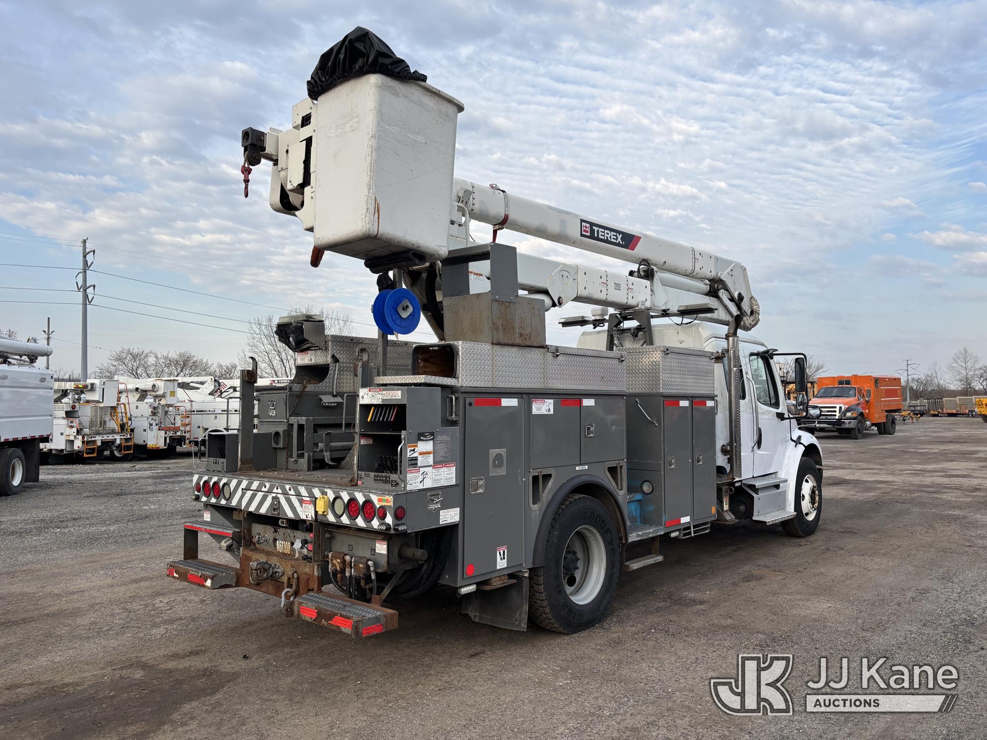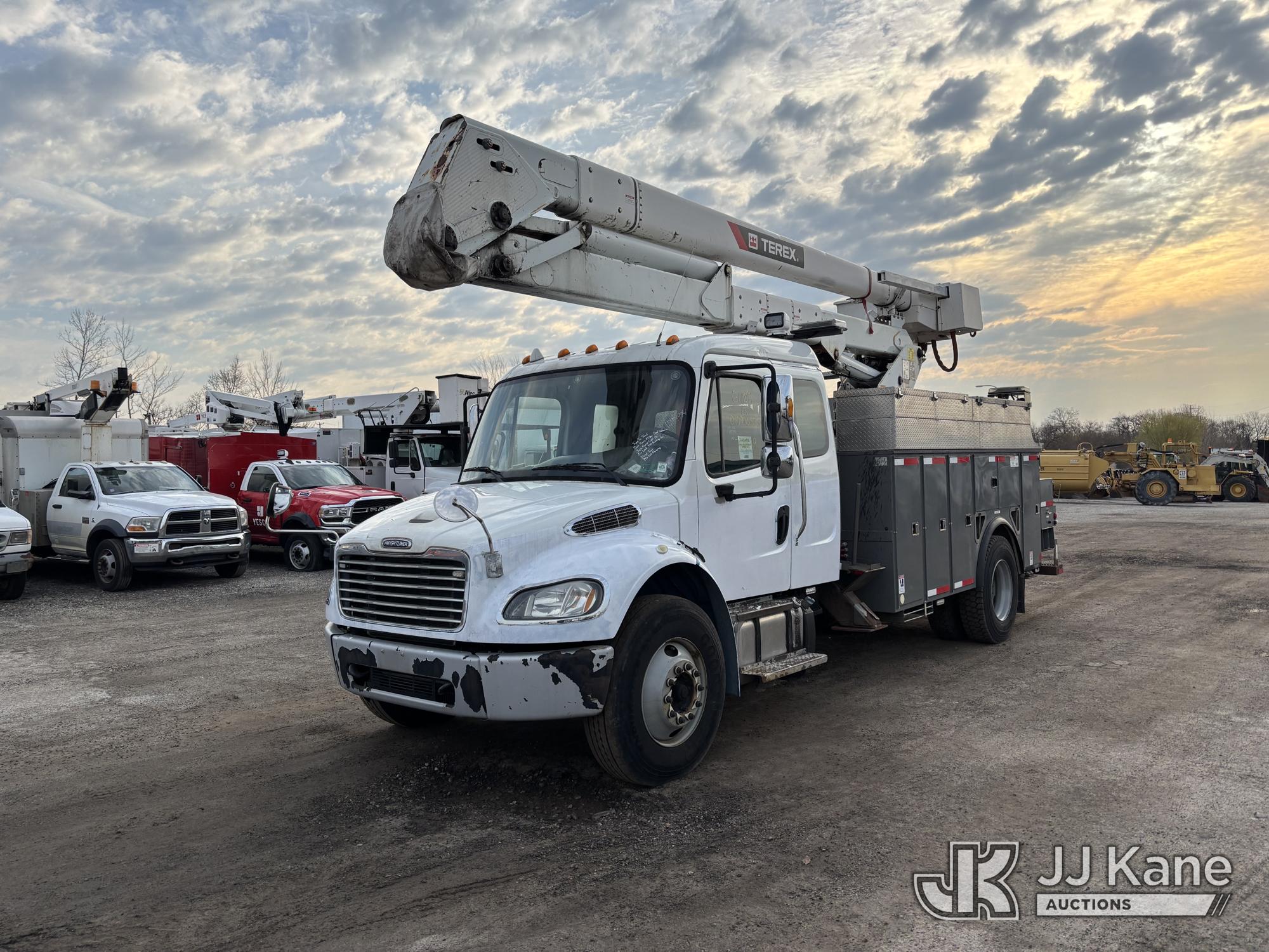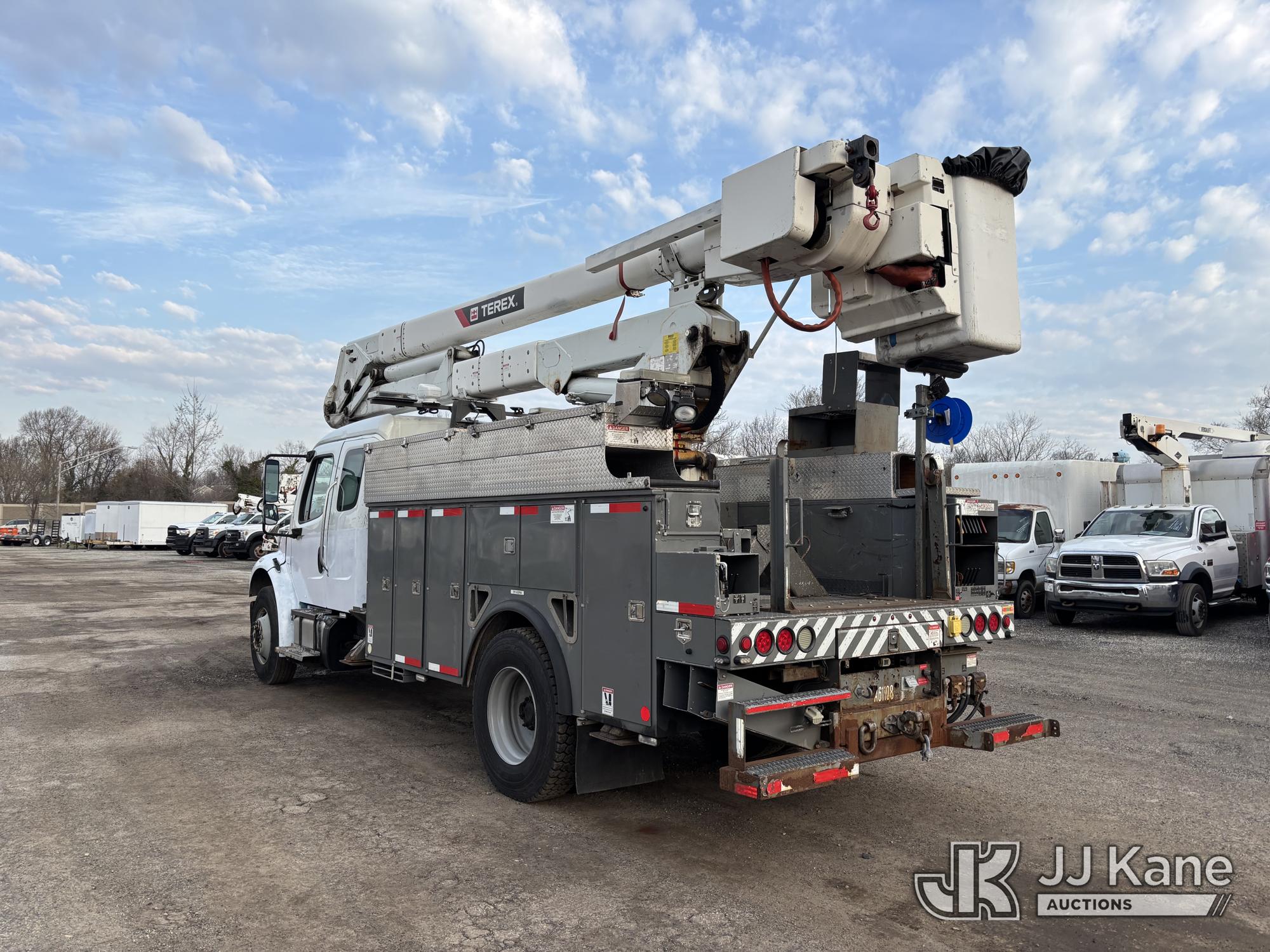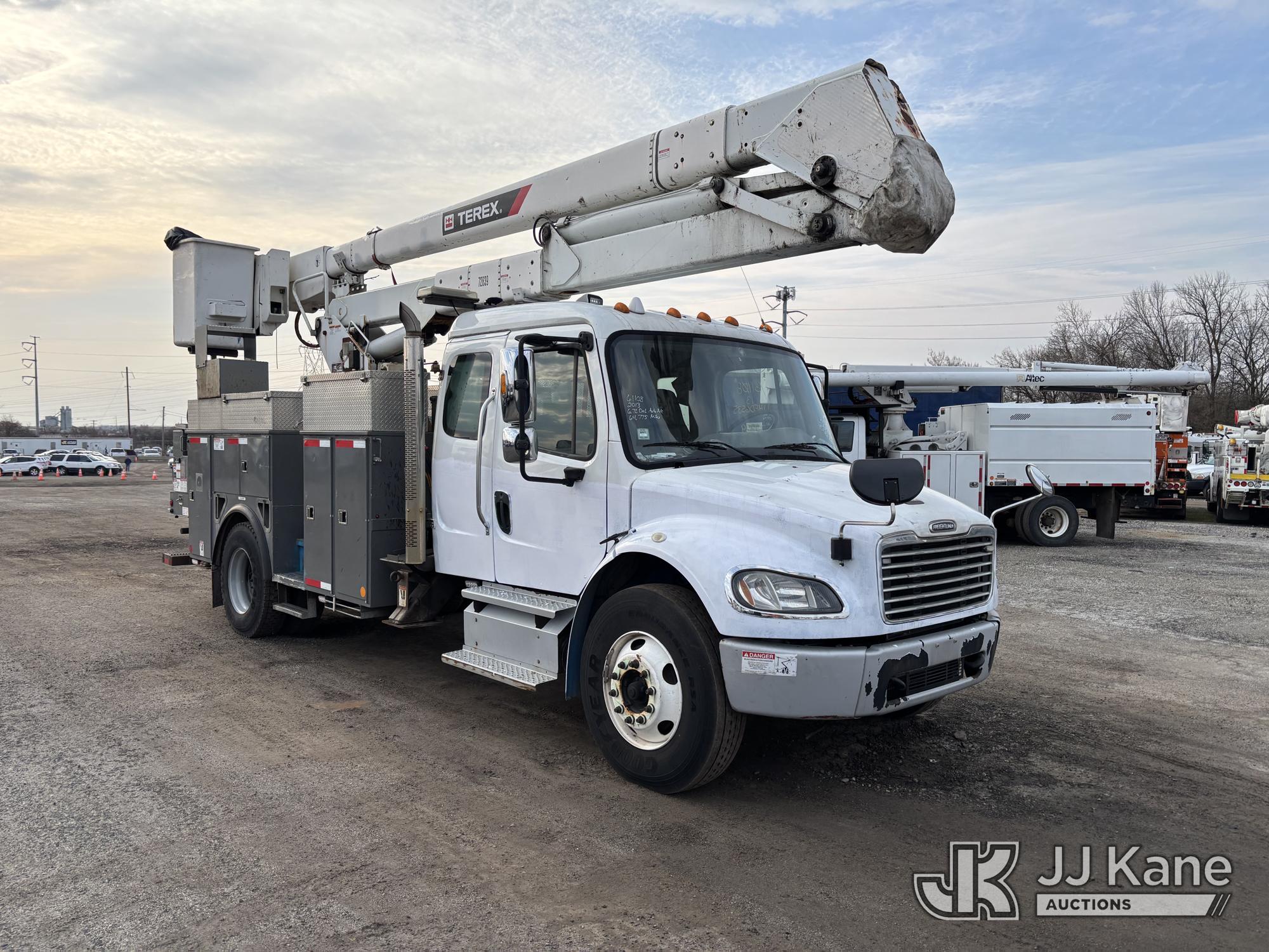 Terex/Telelect Hi-Ranger HR-52M, 57 ft, Material Handling Bucket Truck s/n 2121247922, with single-man bucket, 4 outriggers, center mounted on 2013 Freightliner M2 106 Extended-Cab Utility Truck, 6.7L diesel, Auto, A/C, (64,775 miles) (Runs Moves & Upper Condition Unknown, PTO Not Engaging, Jump To Start, Check Engine Light On, Air Leak, Not Building Air, Must Tow) This is a Titled Item*