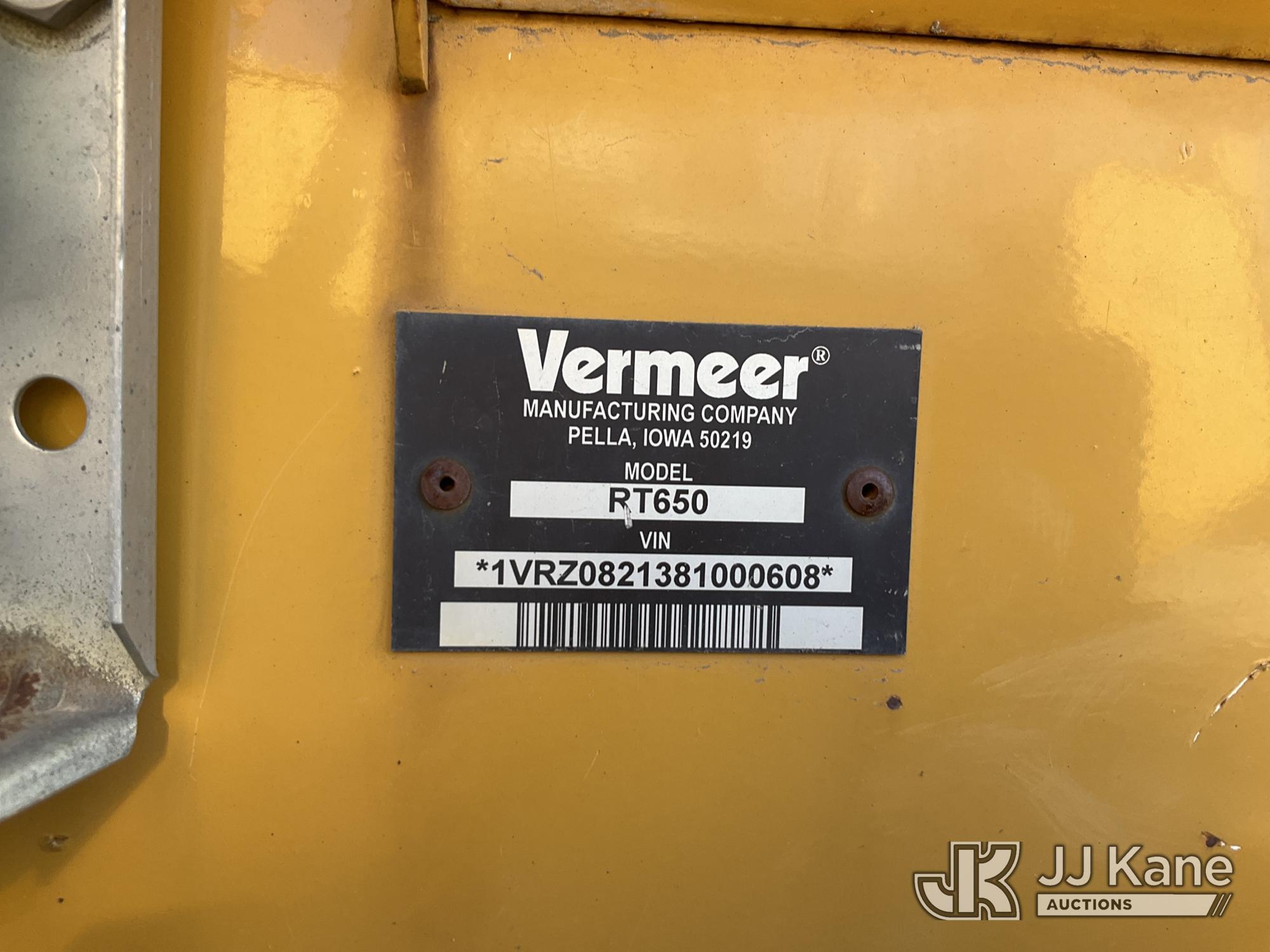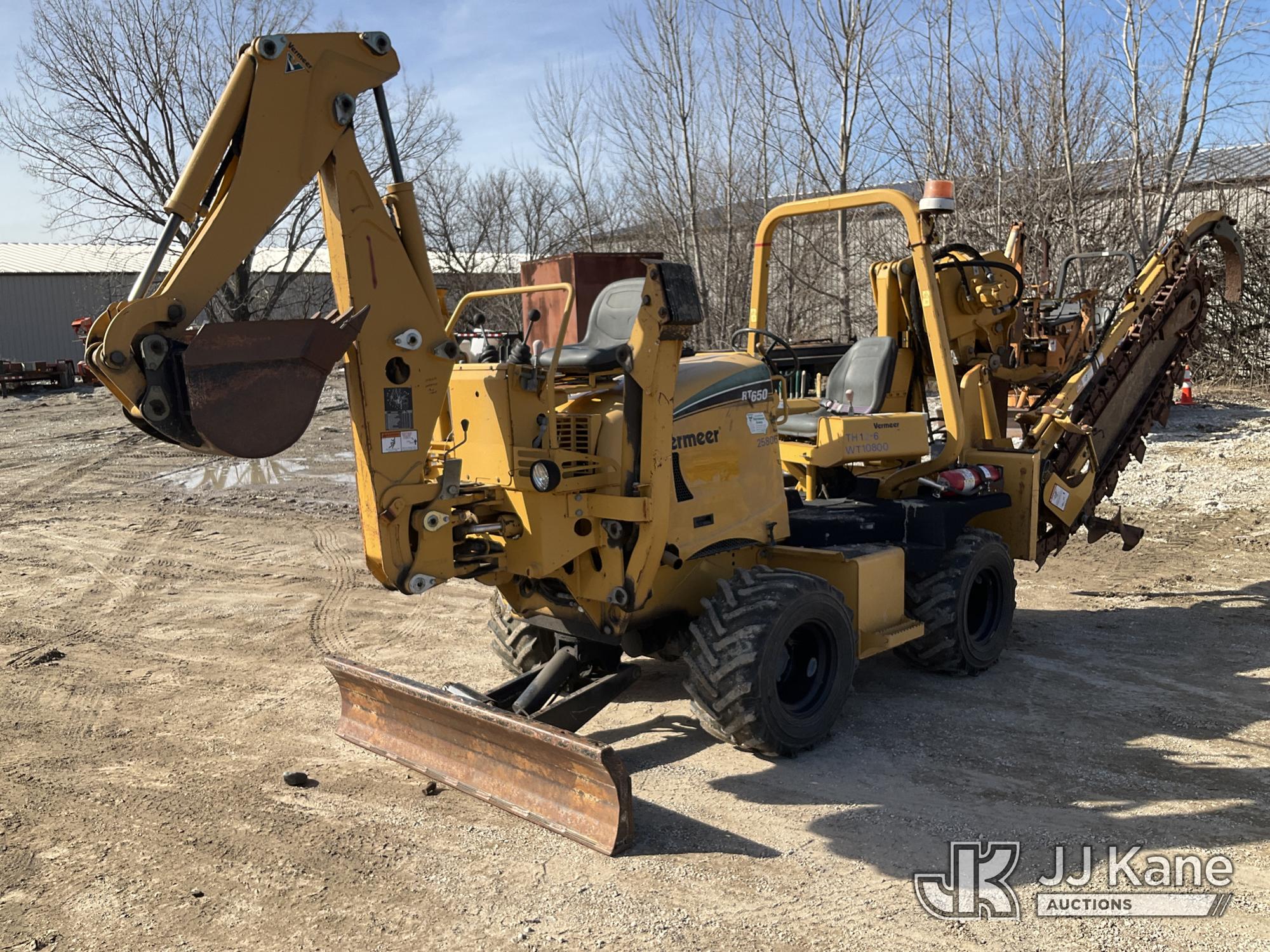 2008 Vermeer RT650 Rubber Tired Vibratory Cable Plow/Trencher, Deutz diesel, Hydrostatic, with front digging attachment, backfill blade, ROPS post, (Runs, Moves, & Operates (Jump to Start)) (Reads 966 hours) This is a Titled Item*