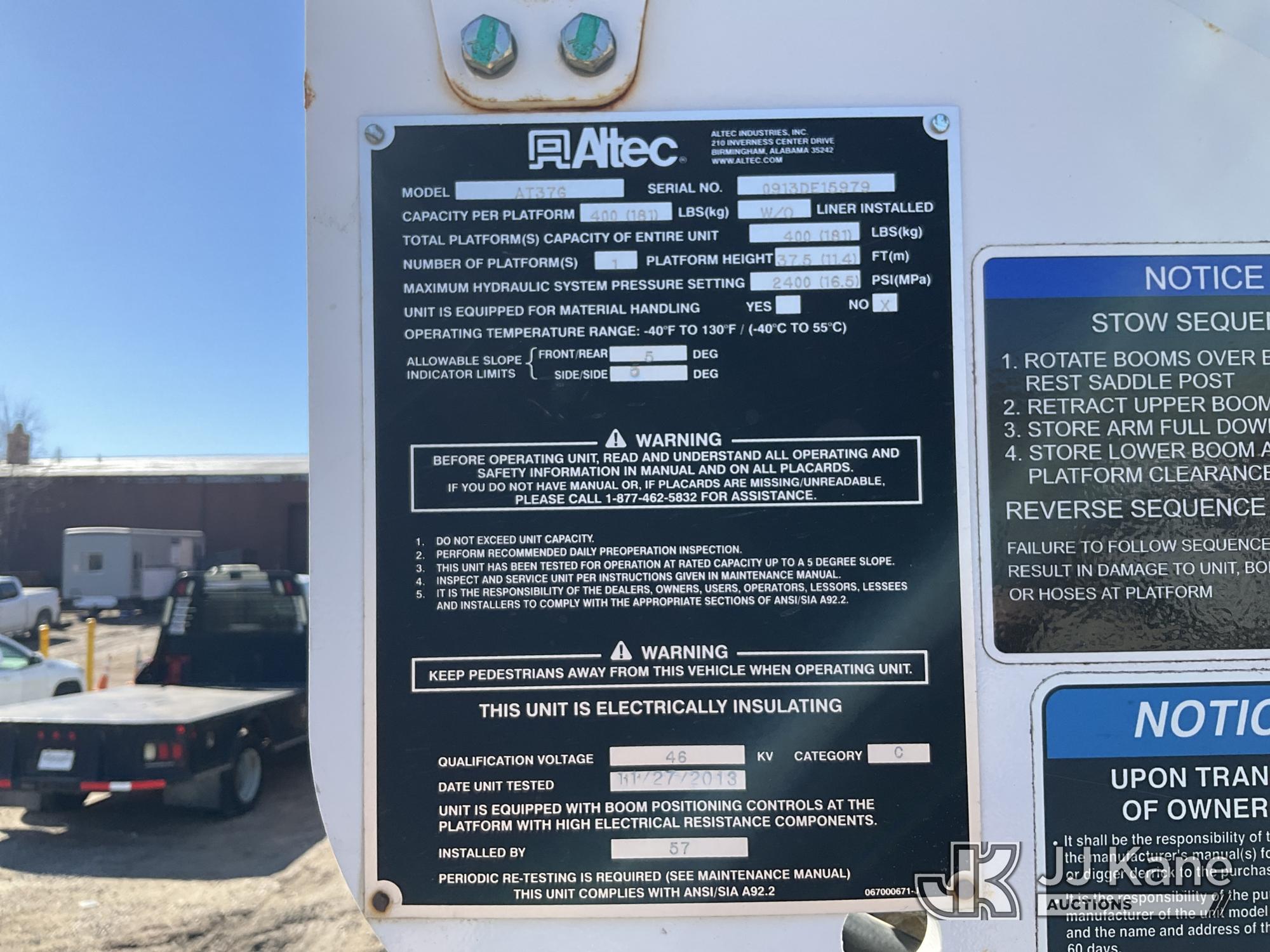 Altec AT37G, 42 ft, Articulating & Telescopic Bucket Truck s/n 0913DE15979, with Single man bucket , mounted behind cab on 2013 RAM 5500 Regular Cab 4WD Service Truck, 6.7L L6 OHV 24V DIESEL, Auto, A/C, with 1221 PTO Hours , (239,073 miles) (Runs, Moves, Operates (Check Engine Light)) (Reads 4,118 hours) This is a Titled Item*