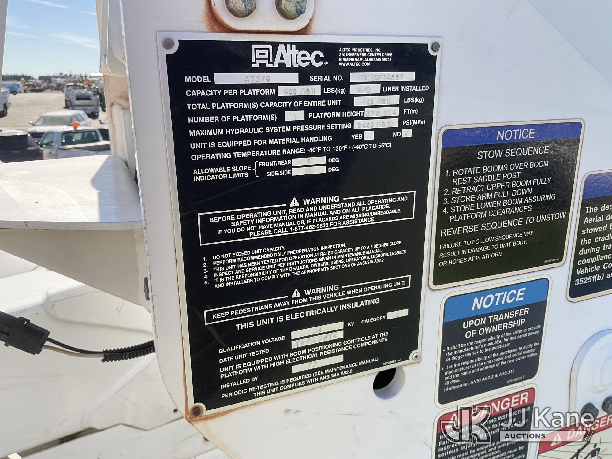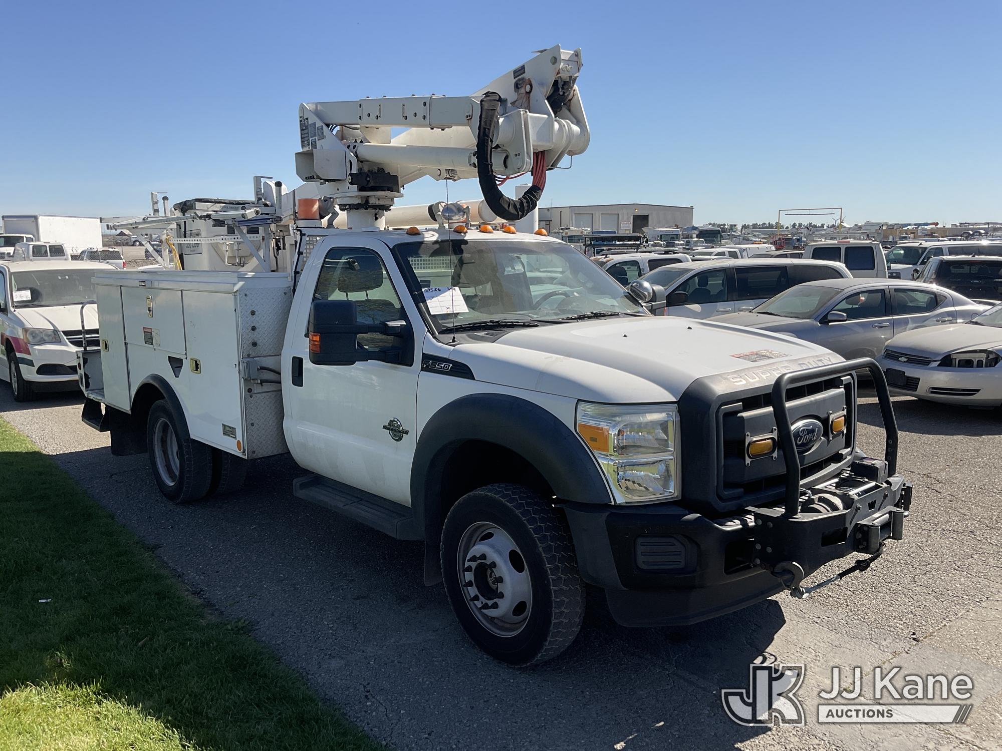 Altec AT37G, 42 ft, Articulating & Telescopic Bucket s/n 1012DE14887, with single-man bucket, mounted behind cab on 2012 Ford F-550 Regular Cab DRW 4WD Service Truck, s/n 1FDUF5HT6CEC96687, 6.7L V8 OHV 16V DIESEL, Auto, A/C, with Front Bumper Winch, (207,385 miles) (Runs & Moves, Upper Does Not Operate) May be subject to ARB Regulations This is a Titled Item*