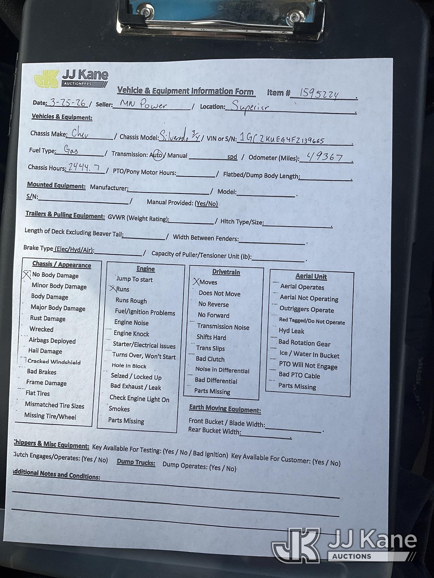 2015 Chevrolet Silverado 2500HD Extended-Cab Pickup Truck, 8-cyl gas, 4WD, 6-Speed Automatic, A/C, with Liftgate, The Boss front hitch, (49,367 miles) (Runs & Moves) (No Body Damage) This is a Titled Item*