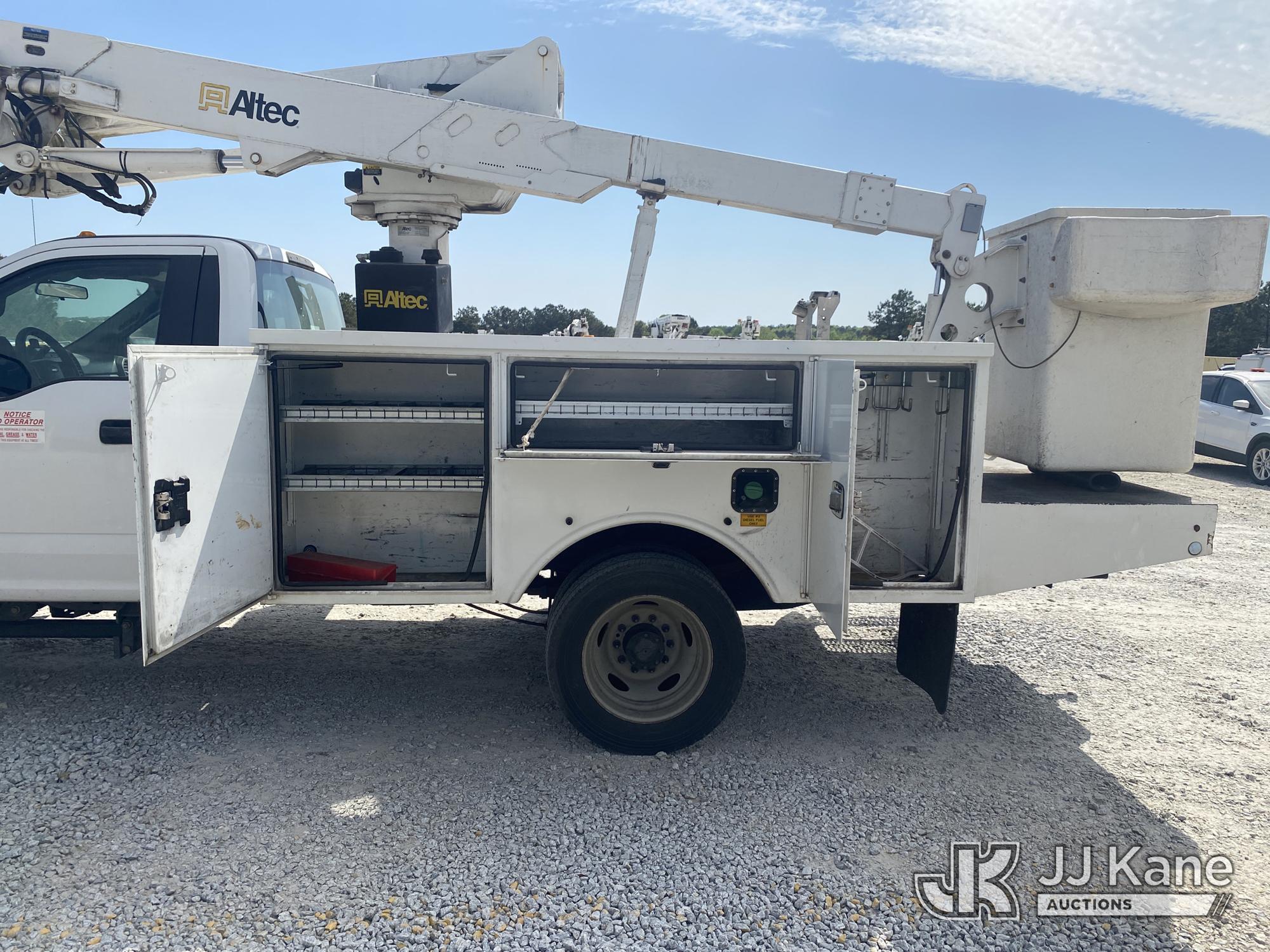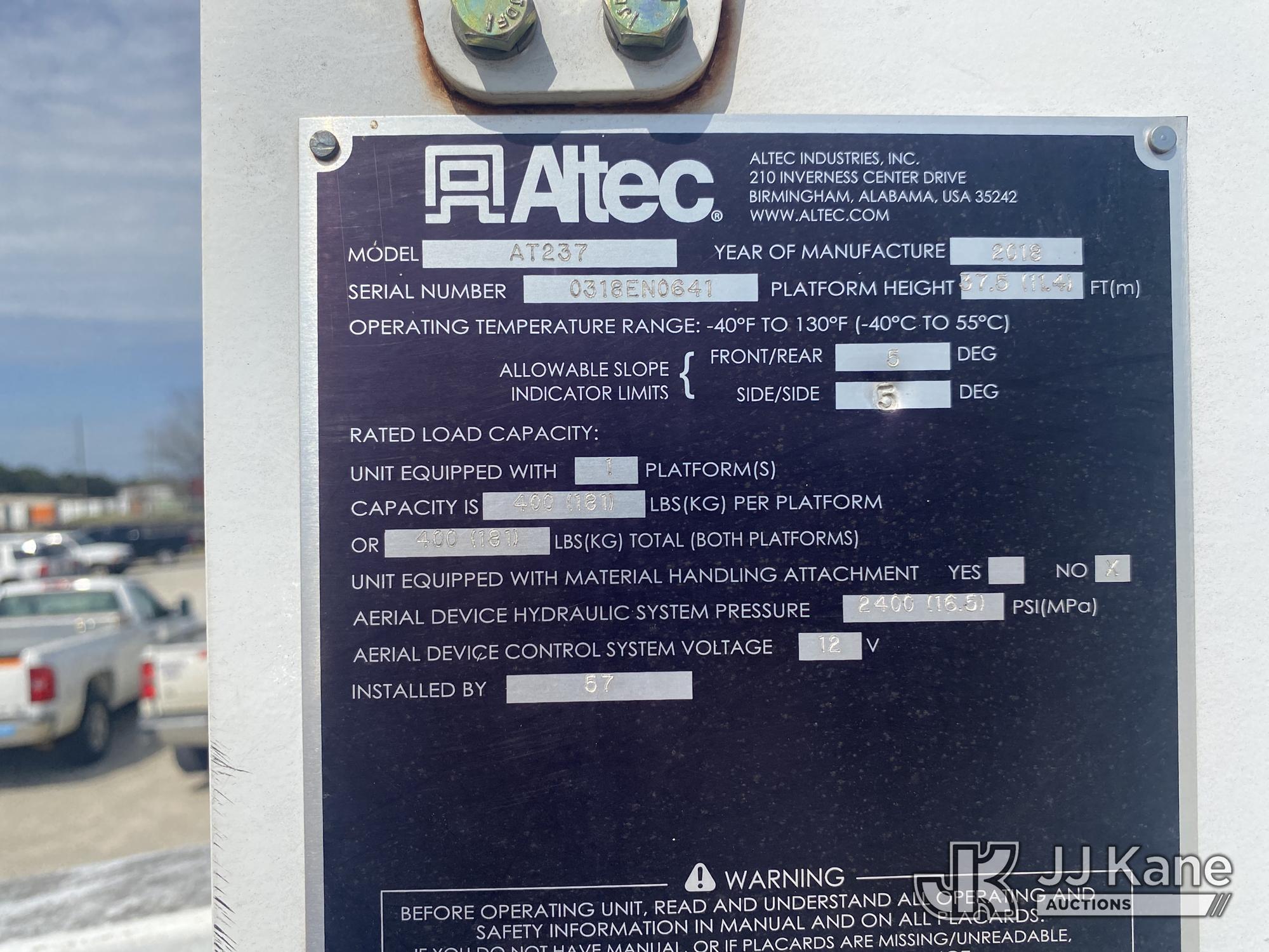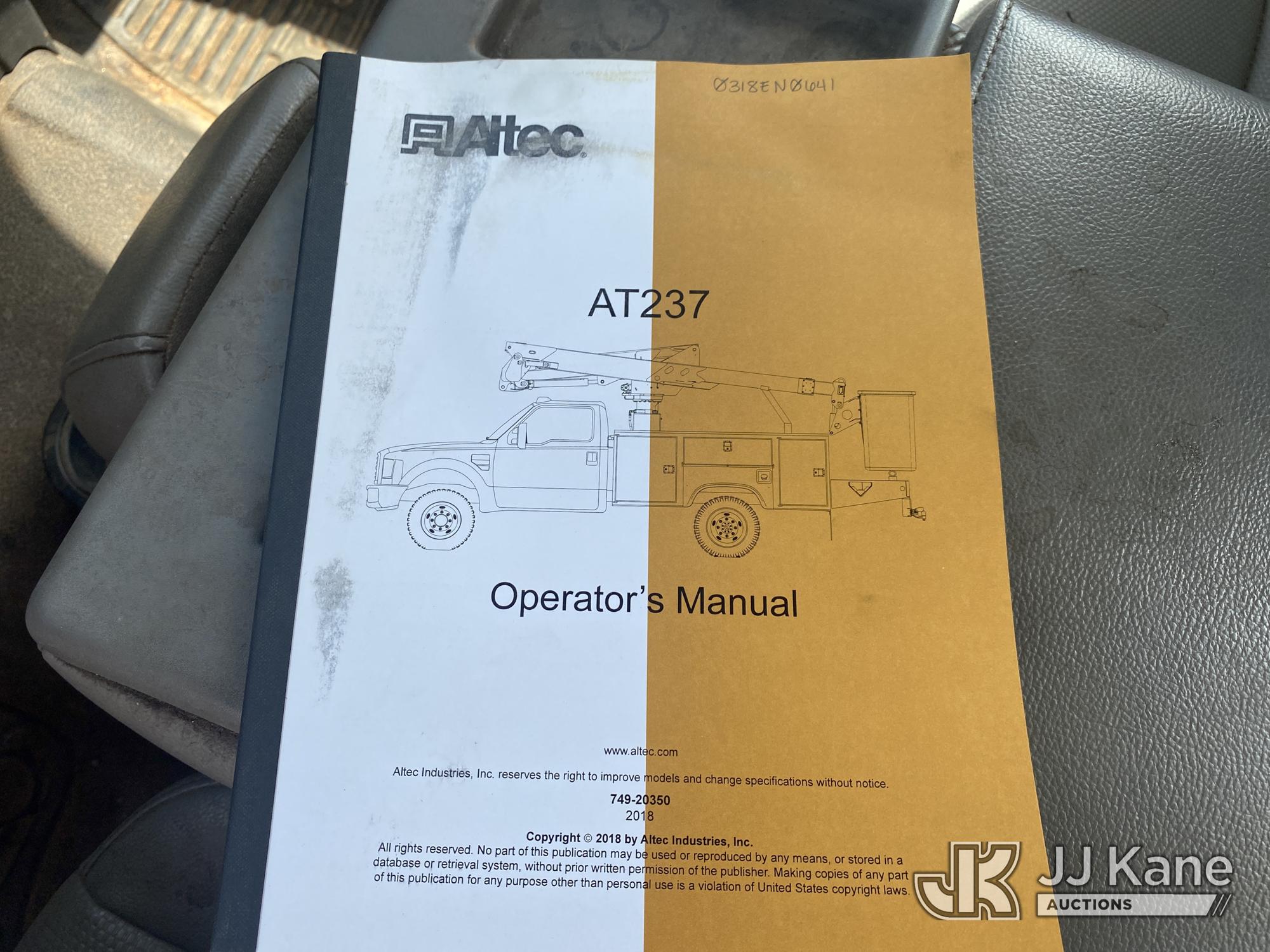 Altec AT237, 43 ft, Articulating & Telescopic Non-Insulated Bucket Truck s/n 0318EN0641, with single-man bucket, mounted behind cab on 2018 Ford F550 Service Truck, 6.7L V8 OHV 16V DIESEL RWD, Auto, A/C, (181,336 miles) (Runs & Moves) (Upper Does Not Operate, Condition Unknown, Check Engine Light On, Traction Control Light On ) This is a Titled Item*