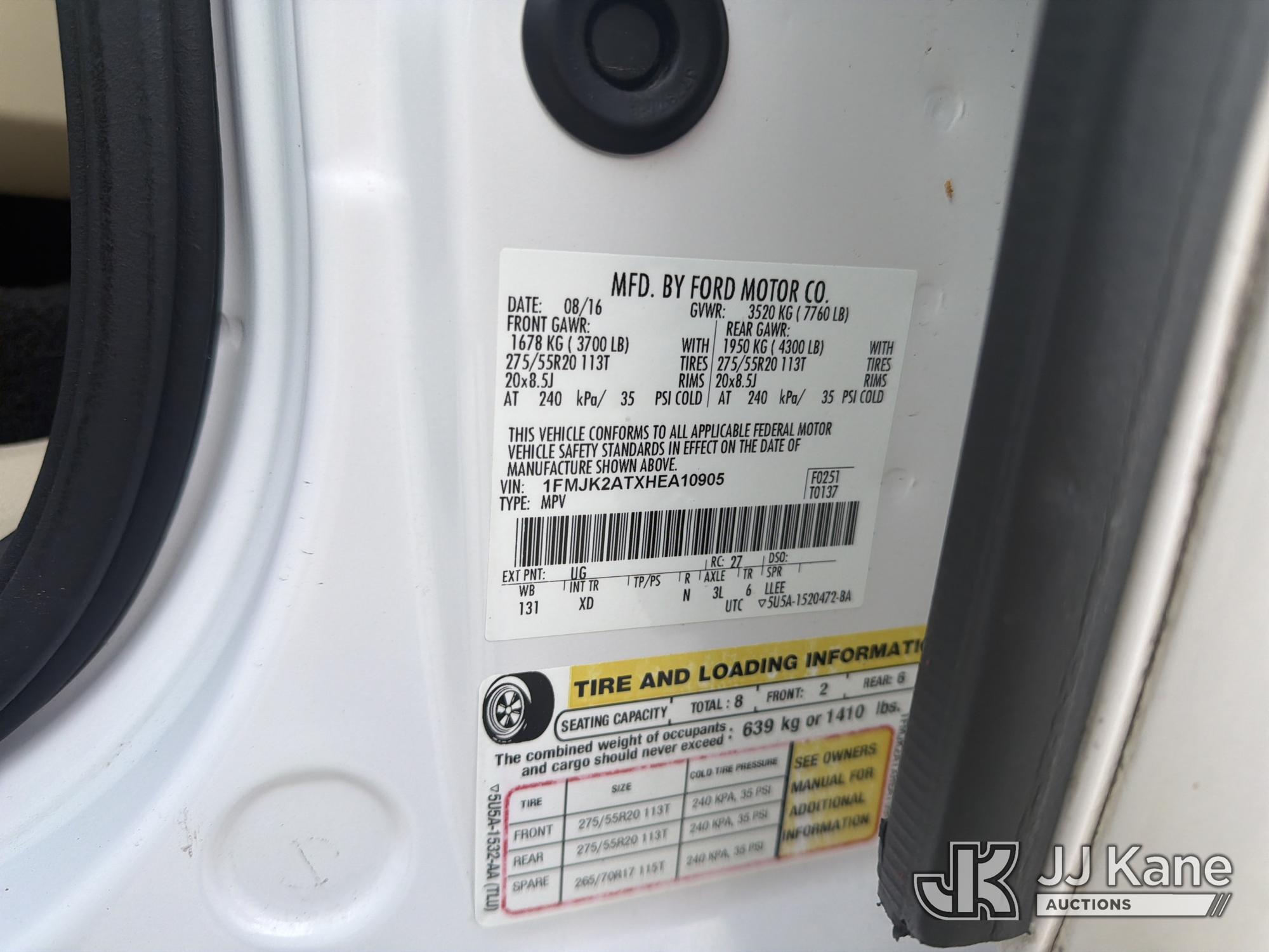 2017 Ford Expedition 4x4 4-Door Sport Utility Vehicle, 6-cyl gas, Auto, A/C, with 3rd row seating, (100,388 miles) (Runs & Moves) This is a Titled Item*