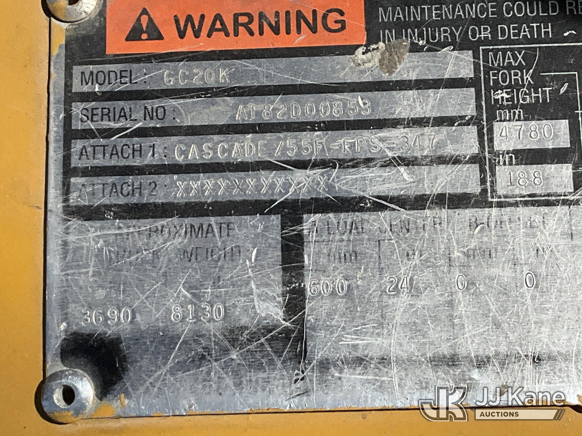 Caterpillar GC20K Forklift, s/n AT82D00853, LPG, (Runs, Moves & Operates) (Reads 6,508 hours)*