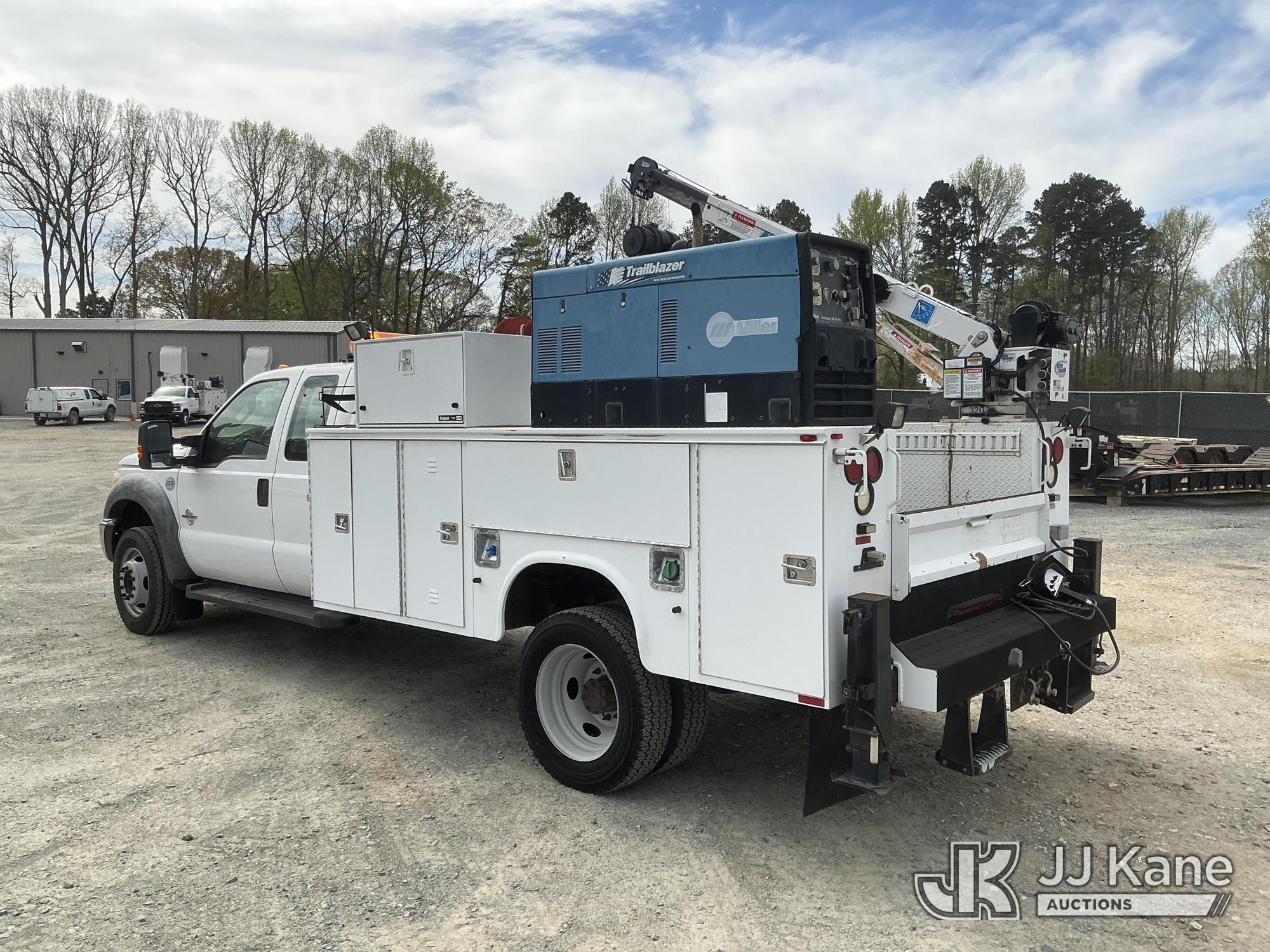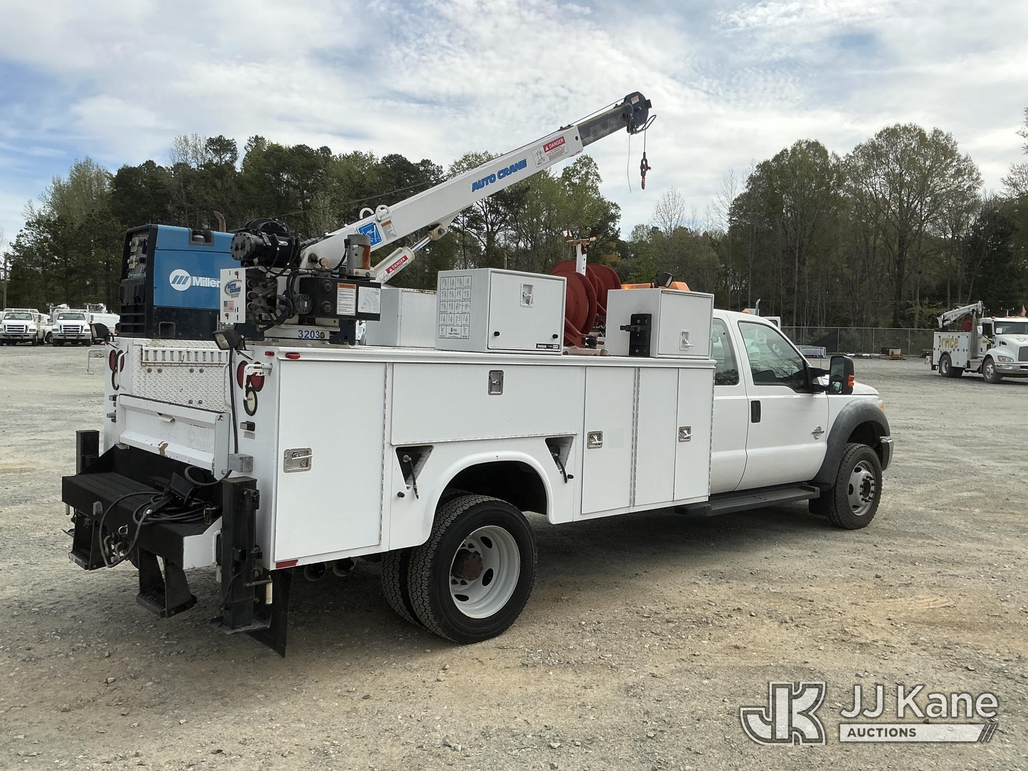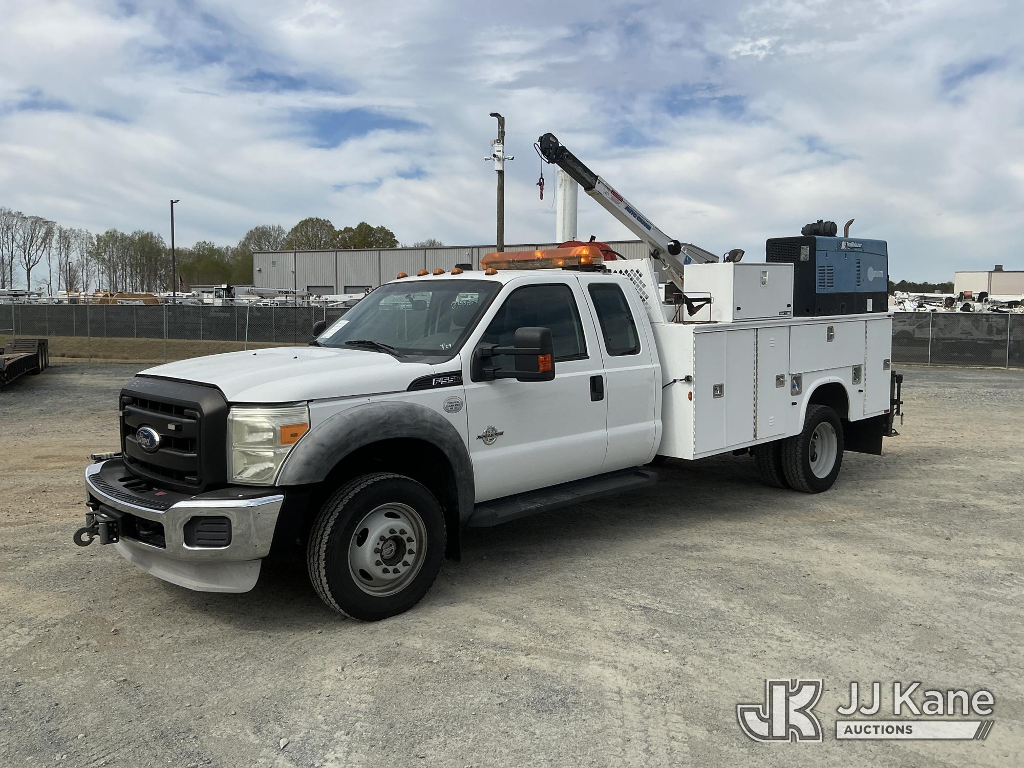 2011 Ford F550 4X4 Extended-Cab Mechanics Service Truck, 6.7L diesel, Auto, A/C, with Auto Crane 3203 material crane, Miller Trailblazer 302 Air Pak welder/generator & air compressor w/hose reel, waste oil recovery system, front winch & 2 product tanks w/hose reel, (83,162 miles) (Duke Unit) (Runs, Moves & Material Crane Operates) (Welder Jump To Start) This is a Titled Item*