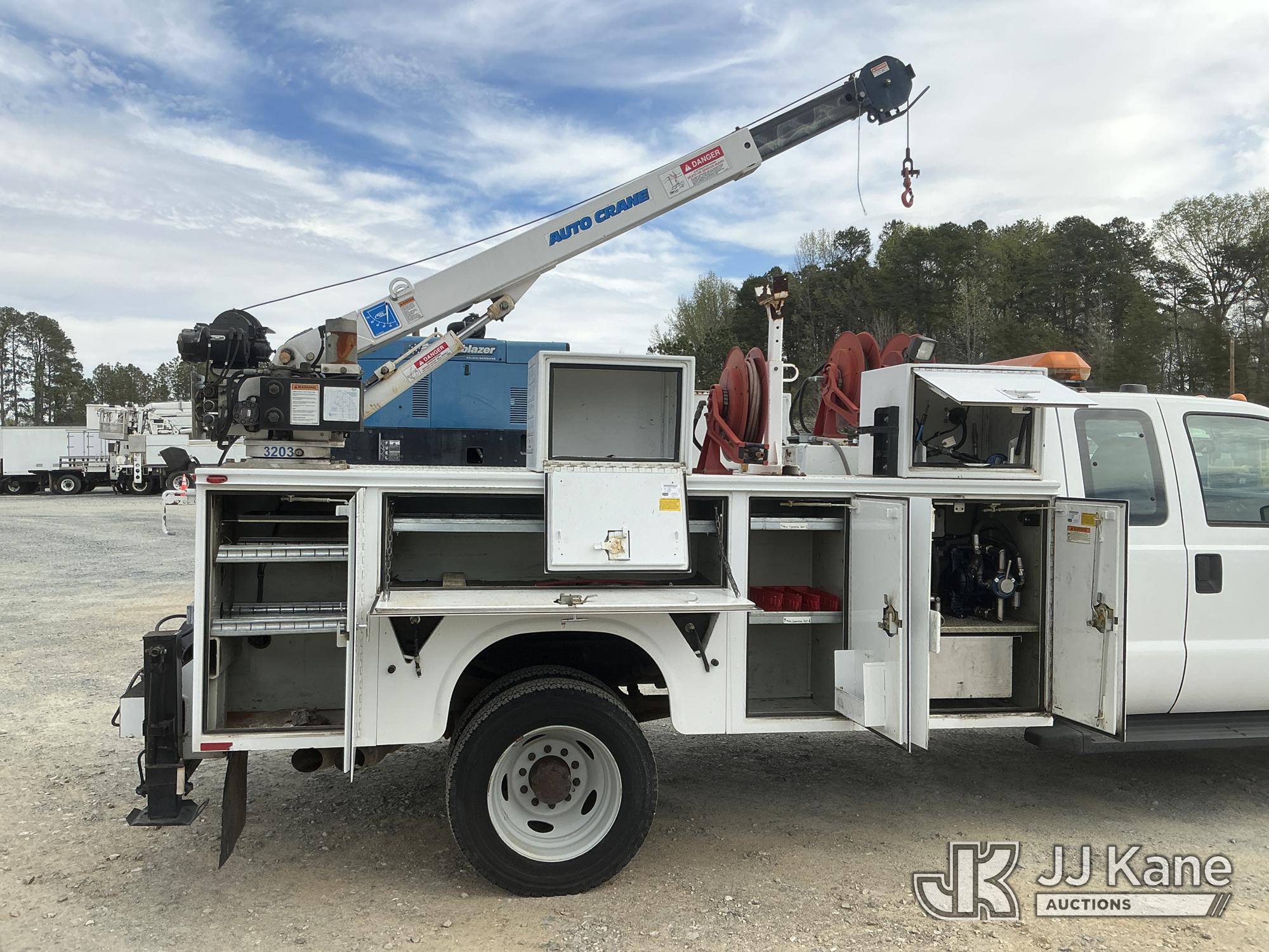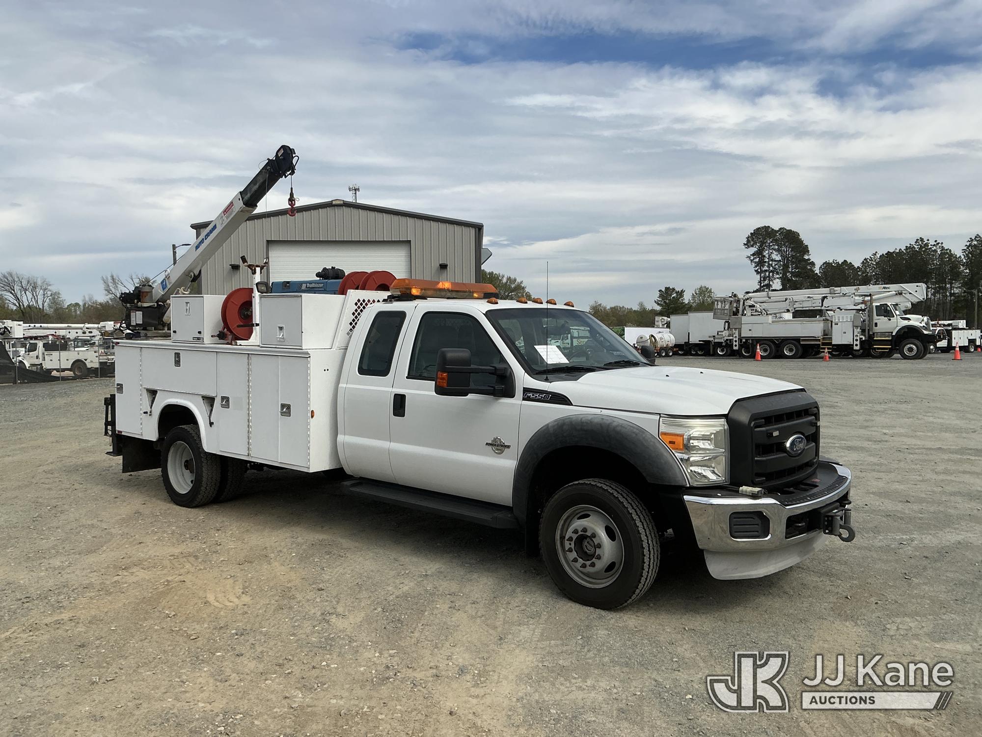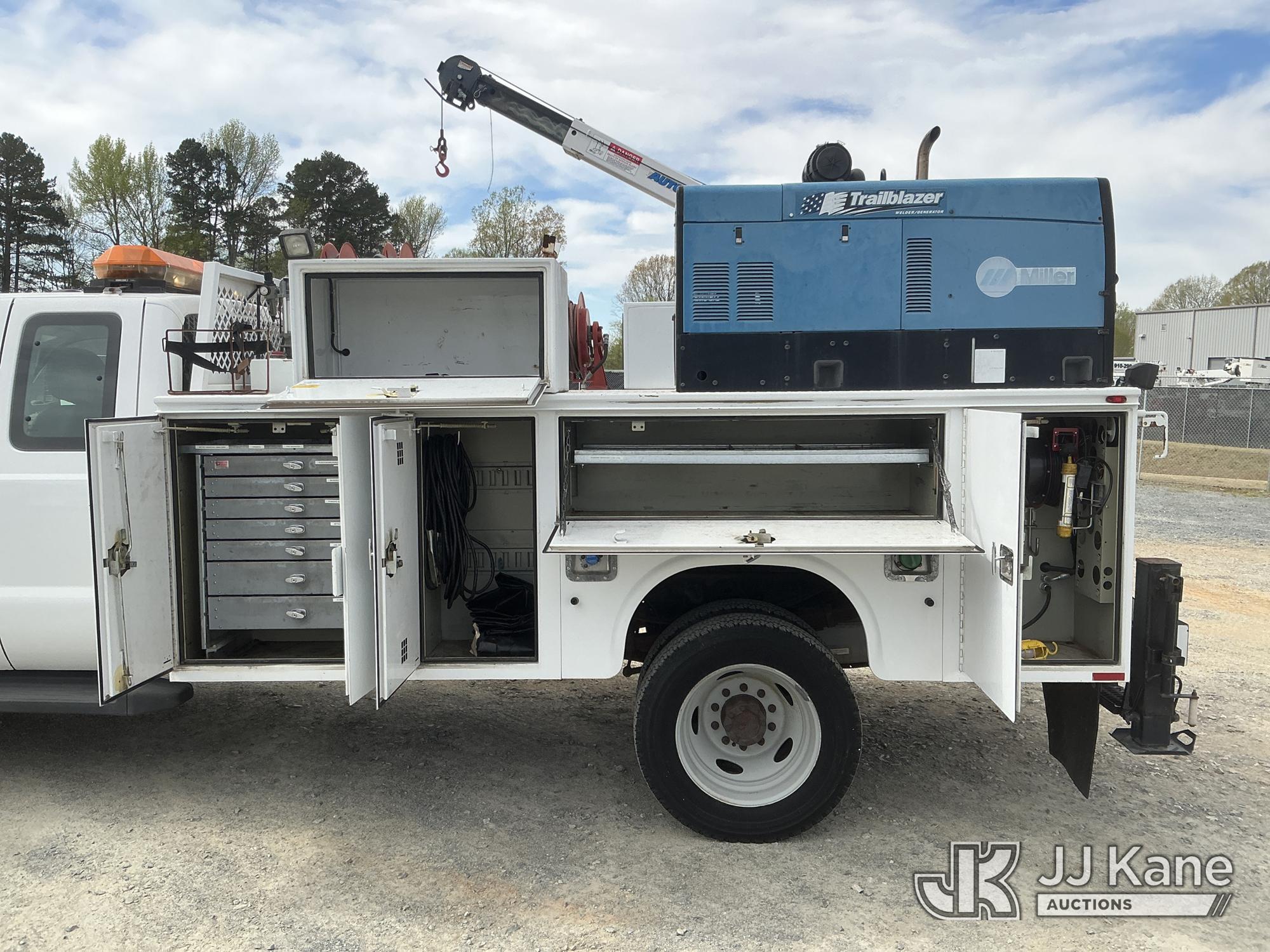 2011 Ford F550 4X4 Extended-Cab Mechanics Service Truck, 6.7L diesel, Auto, A/C, with Auto Crane 3203 material crane, Miller Trailblazer 302 Air Pak welder/generator & air compressor w/hose reel, waste oil recovery system, front winch & 2 product tanks w/hose reel, (83,162 miles) (Duke Unit) (Runs, Moves & Material Crane Operates) (Welder Jump To Start) This is a Titled Item*