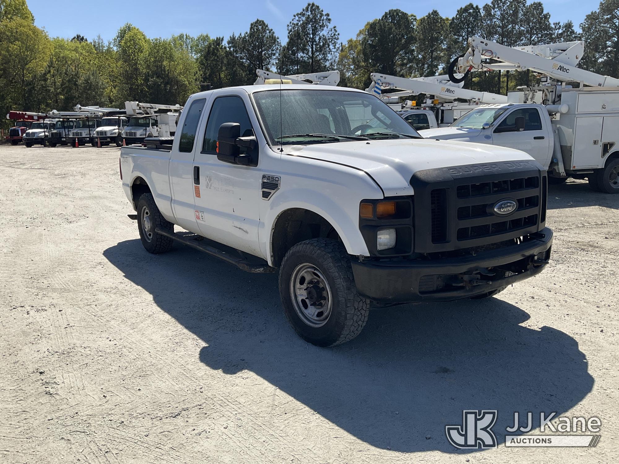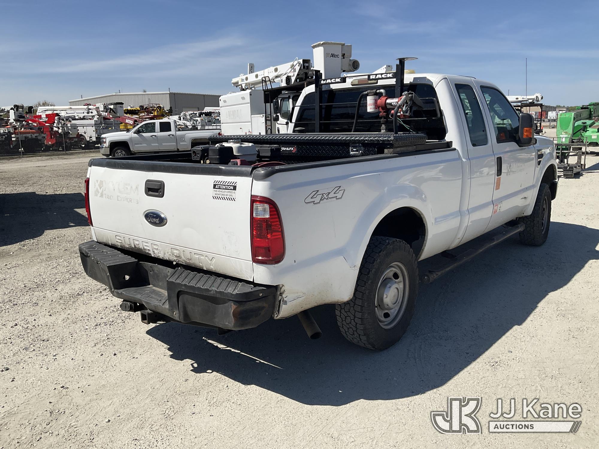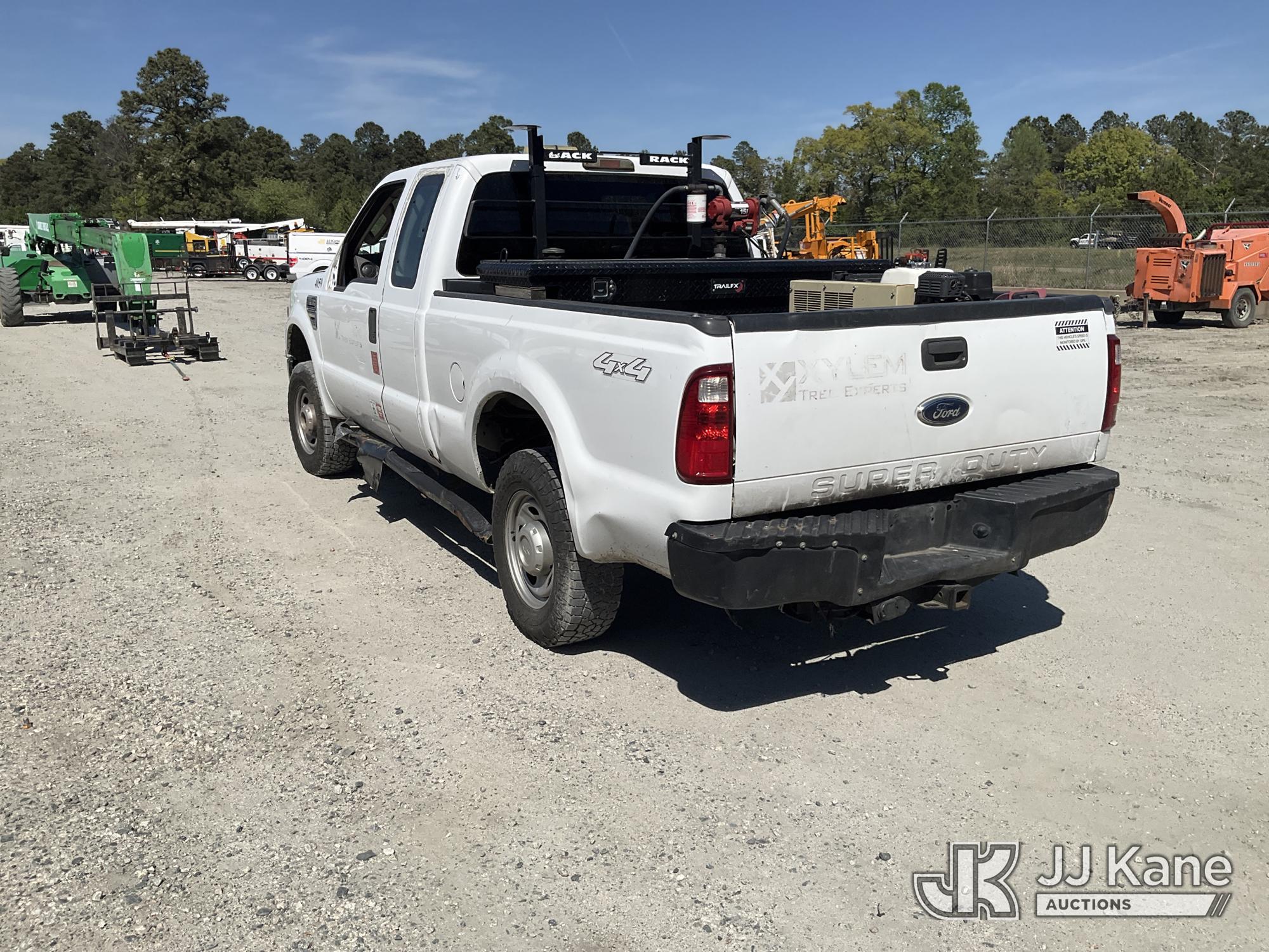 2009 Ford F250 4x4 Extended-Cab Pickup Truck, 8-cyl gas, Auto, A/C, with fuel transfer tank, air compressor, True Mileage Unknown (Not Running, Condition Unknown, Drivers Door Window Glass & Mirror Missing, Drivers Door Panel Off, Rust Damage) This is a Titled Item*