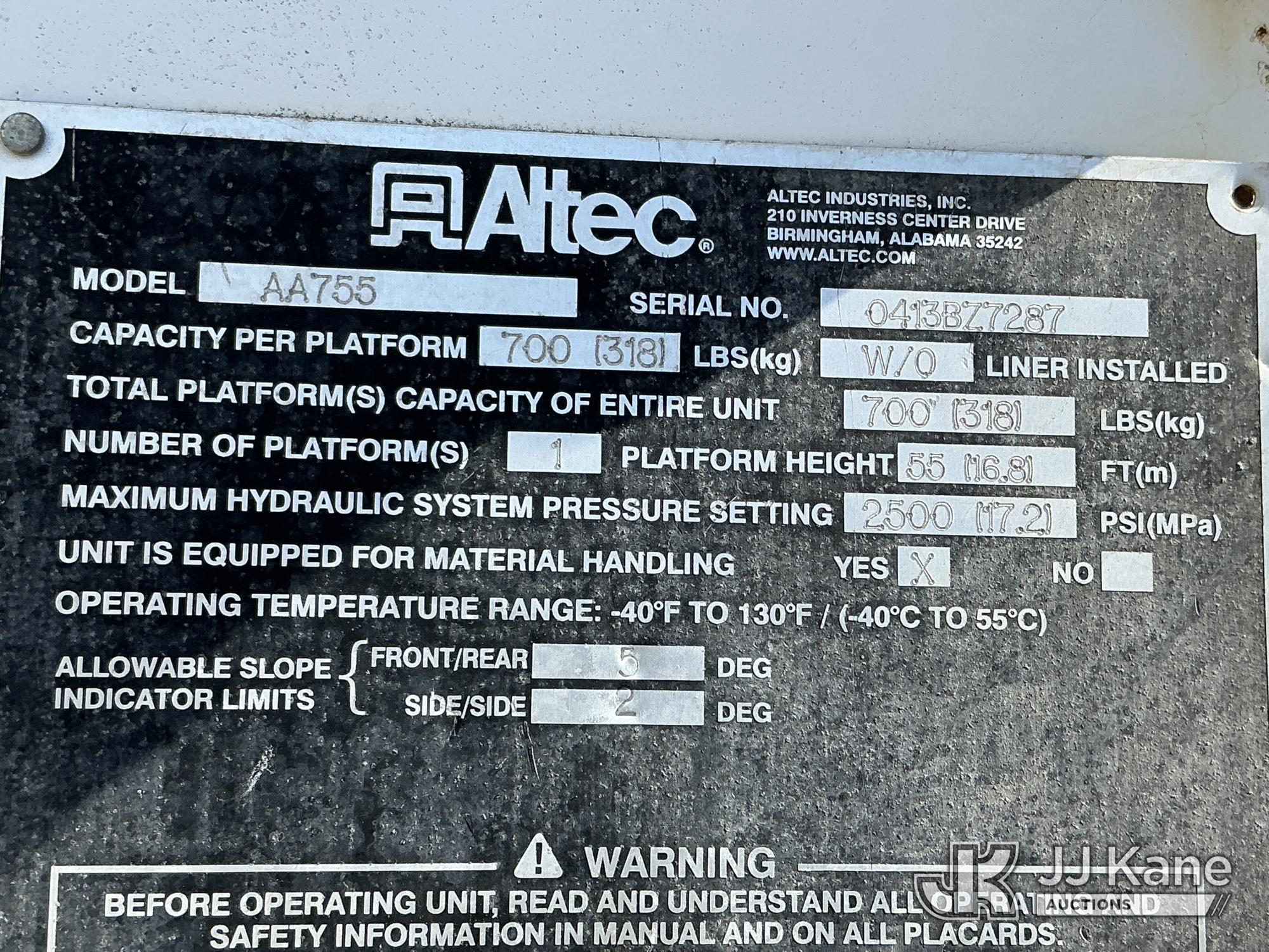 Altec AA755-MH, 60 ft, Material Handling Bucket Truck s/n 0413BZ7287, with two-man bucket, rear mounted on 2014 Freightliner M2 106 4x4 Utility Truck, Cummins ISB-250 6.7L diesel, Auto, A/C, (90,824 miles) (Runs, Moves & Upper Operates ) This is a Titled Item*