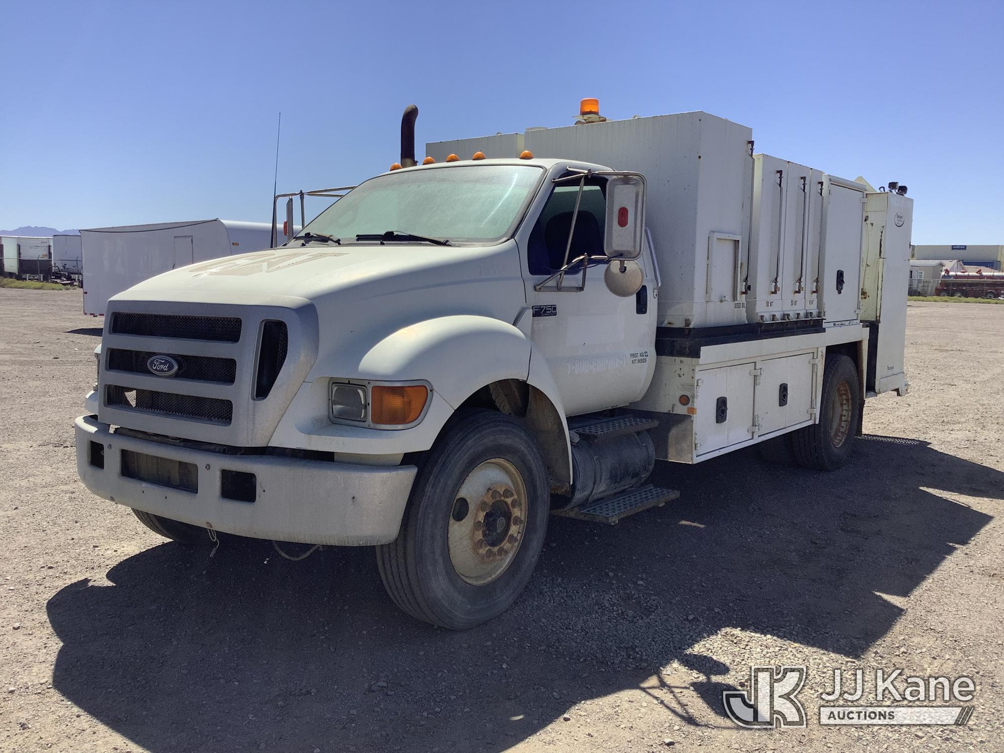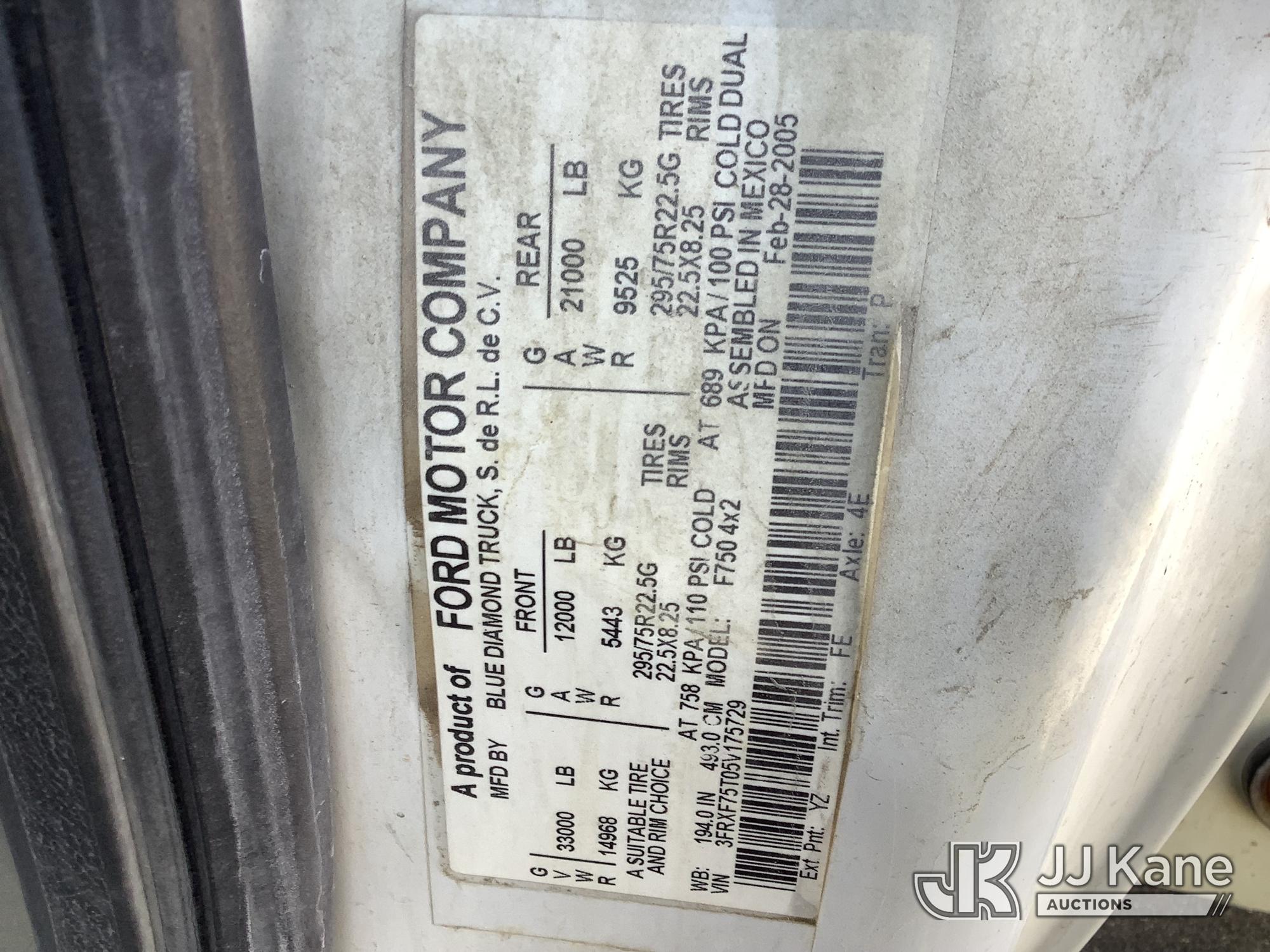 2005 Ford F-750 Utility Truck, 7.2L diesel, 4X2, 7-spd, A/C, (Exempt from Odometer Disclosure - Reads 171,132 miles) (Runs & Moves) (Jump To Start, Service Engine Soon Light On, ABS Light On) This is a Titled Item*