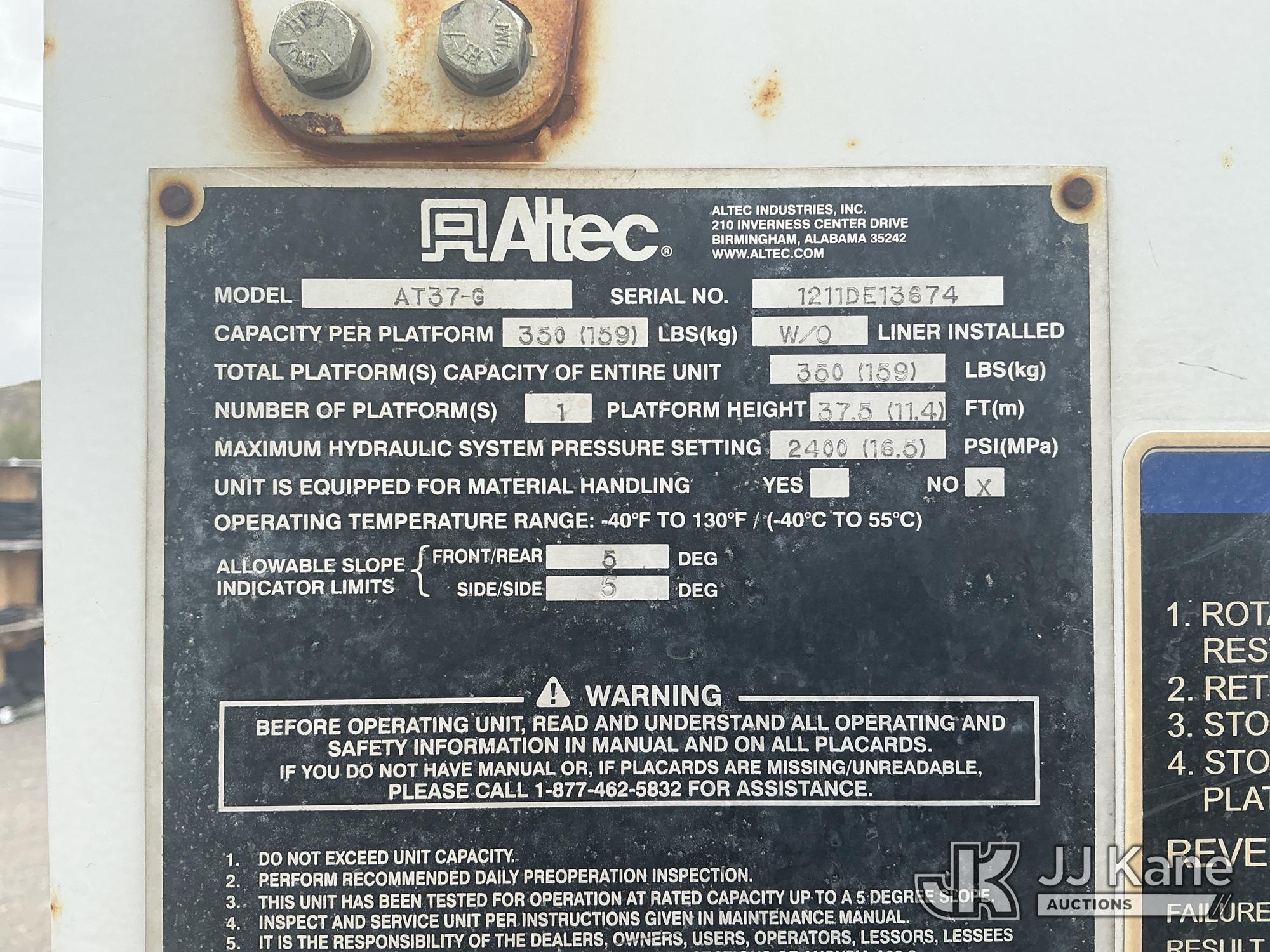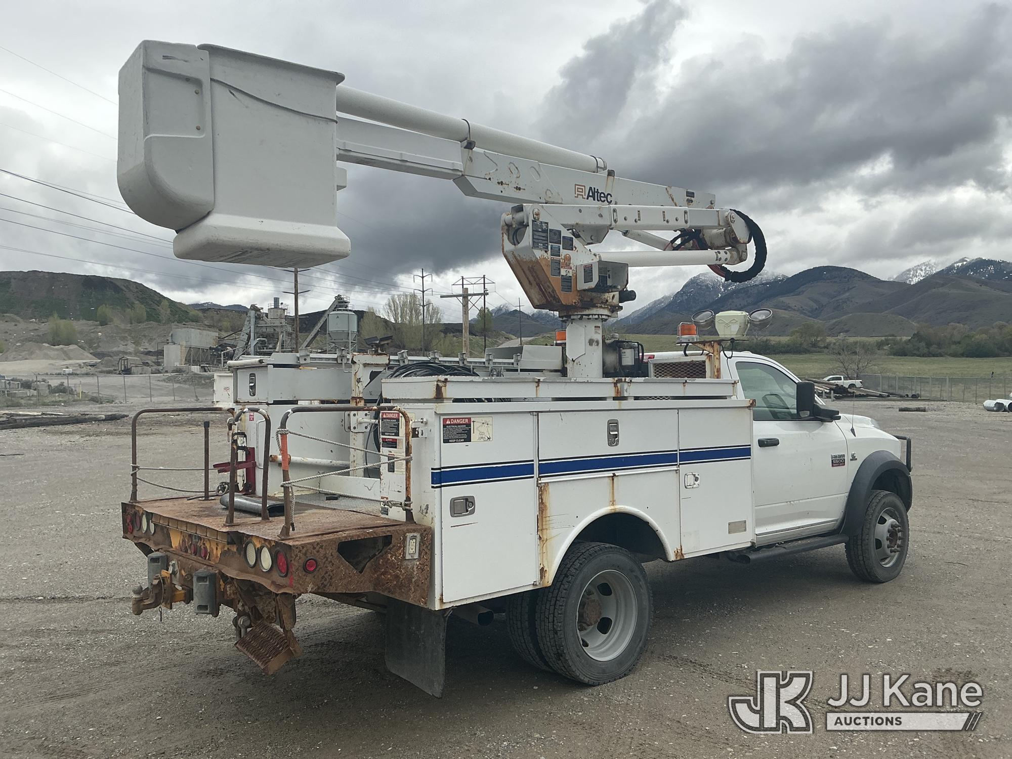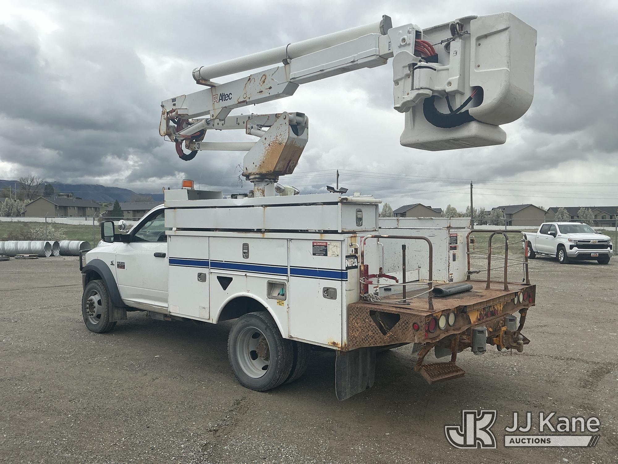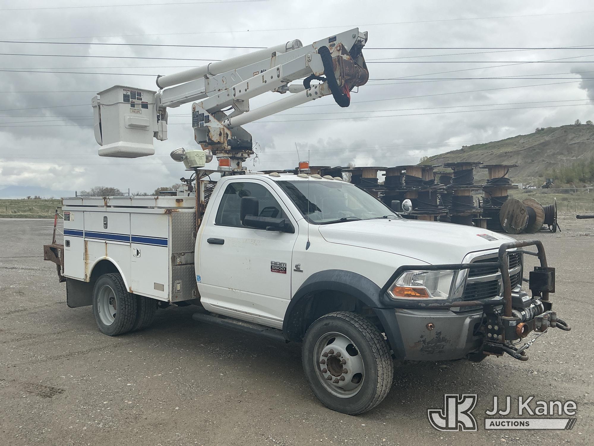 Altec AT37G, 43 ft, Articulating & Telescopic Bucket Truck s/n 1211DE13674, with Single-Man Bucket, mounted behind cab on 2011 Dodge Ram 5500 Service Truck, s/n 3D6WU7EL6BG624422, Cummins 6.7L Bucket 4wd, 6-Speed Automatic, A/C, with Winch, Inverter , (287,878 miles) (Runs, Moves & Upper Operates) (DEF Light On, Seller States: front wheel bearings, rod ends, draglink, rear leaf springs and various boom repairs) This is a Titled Item*