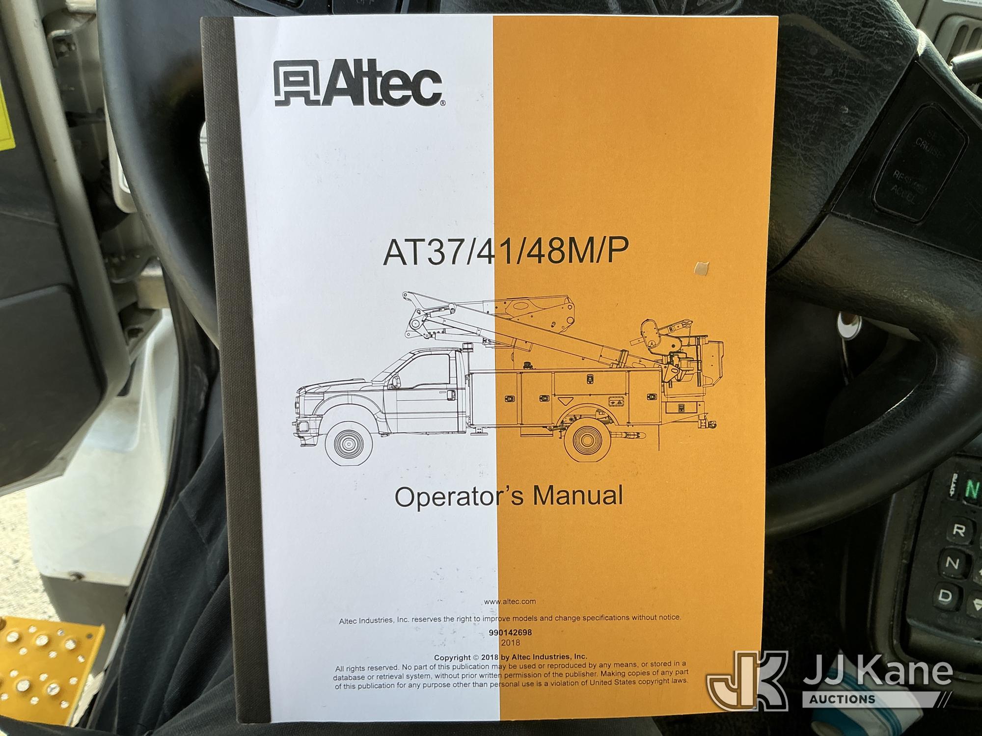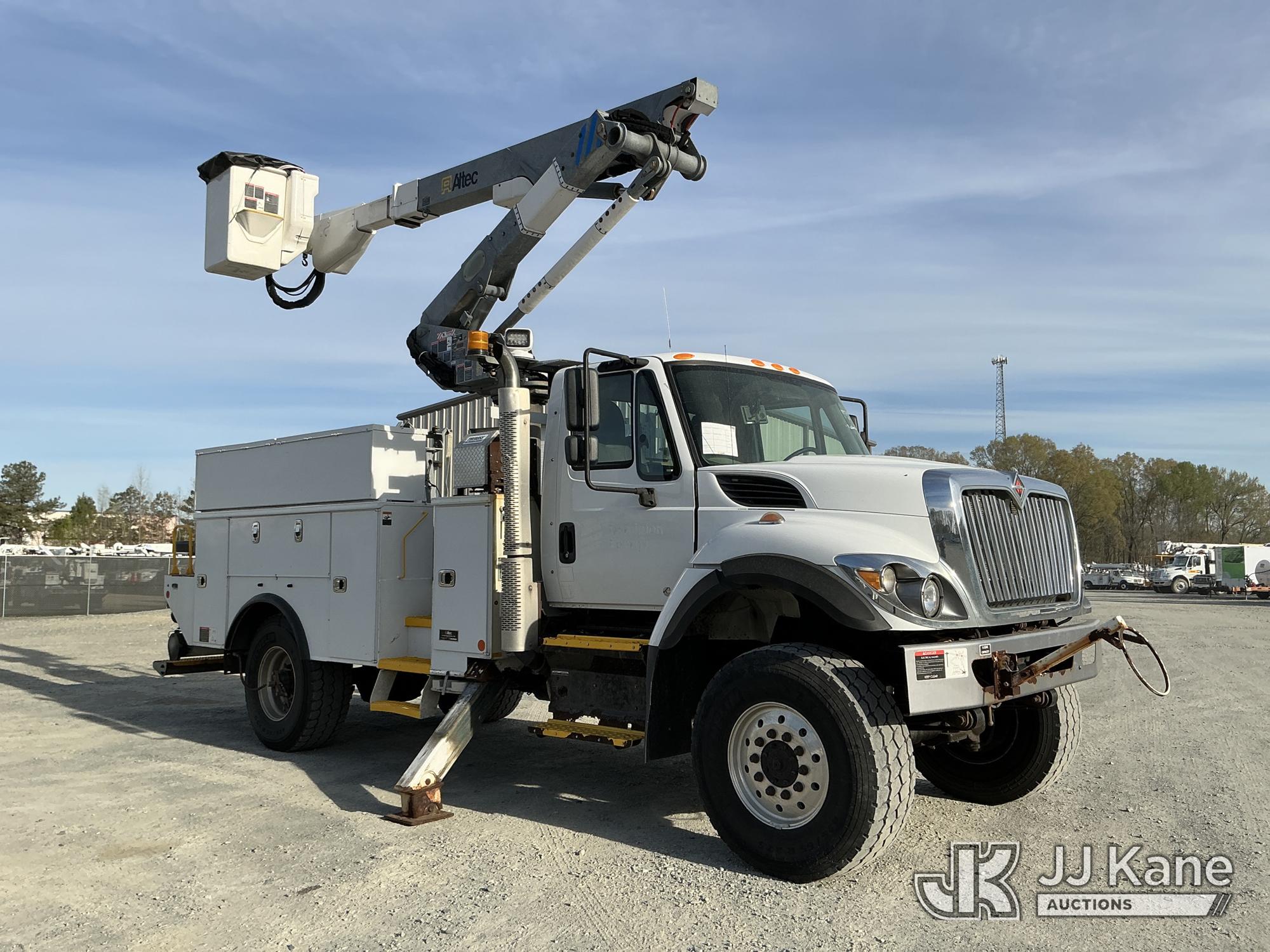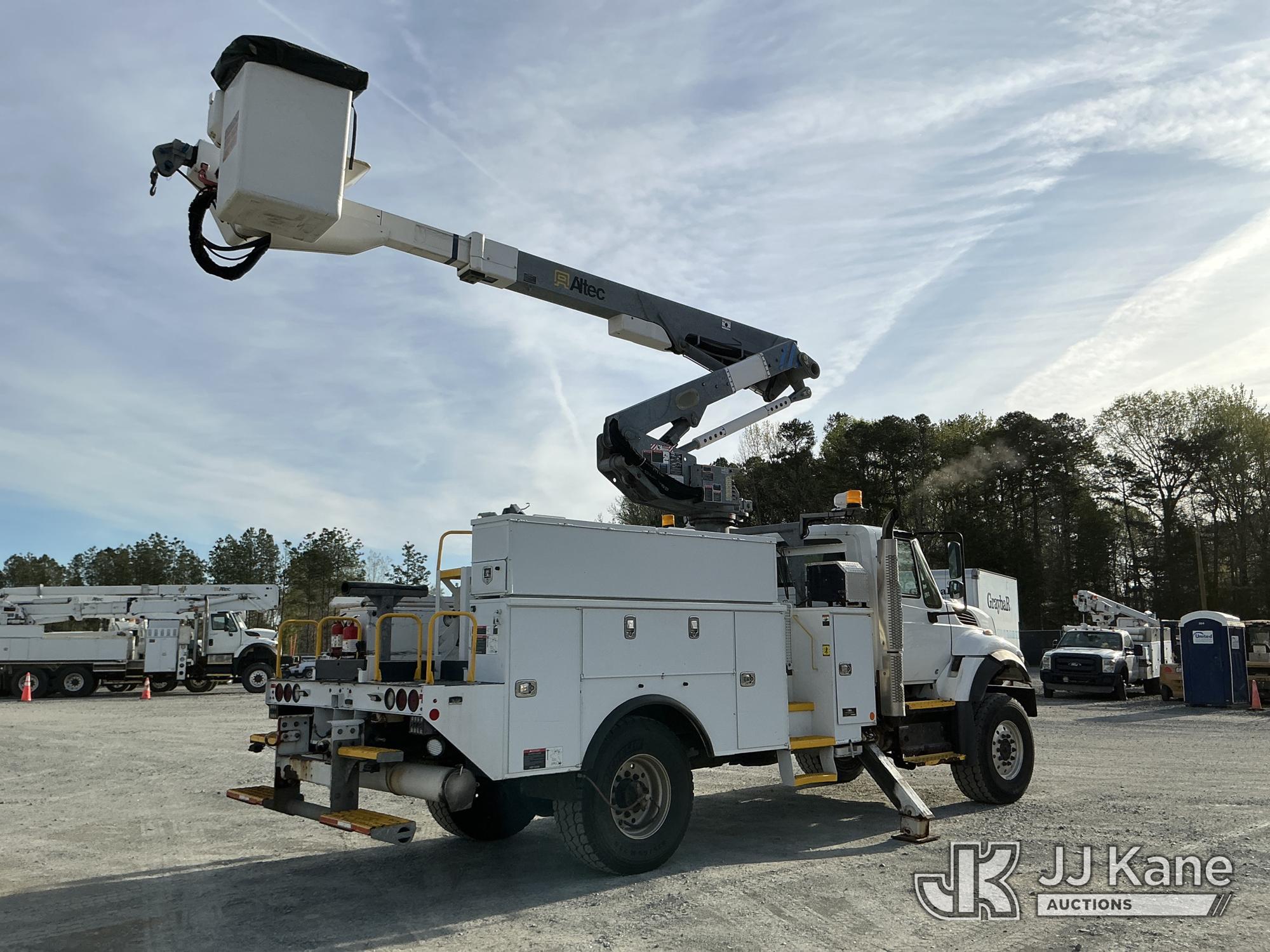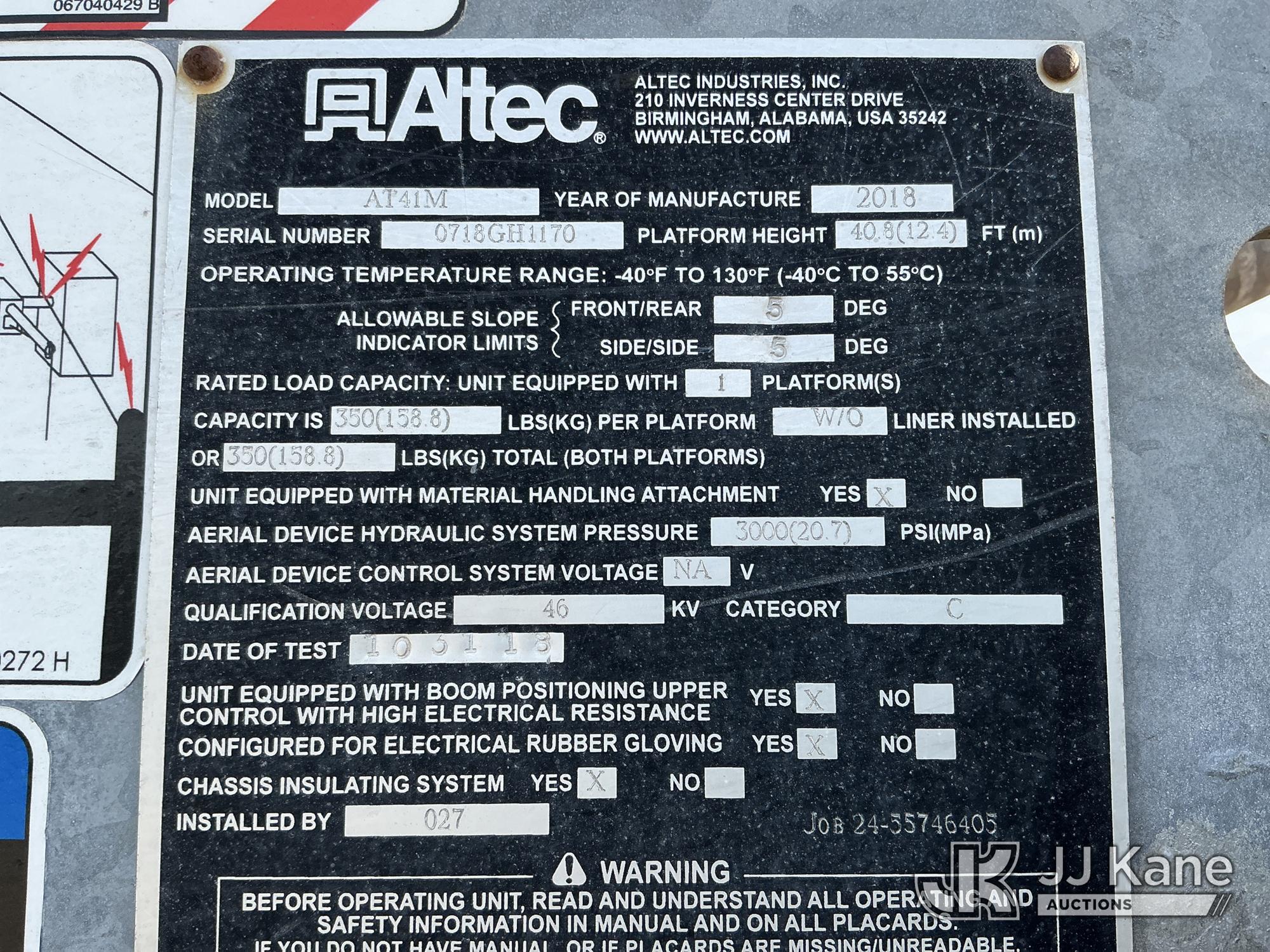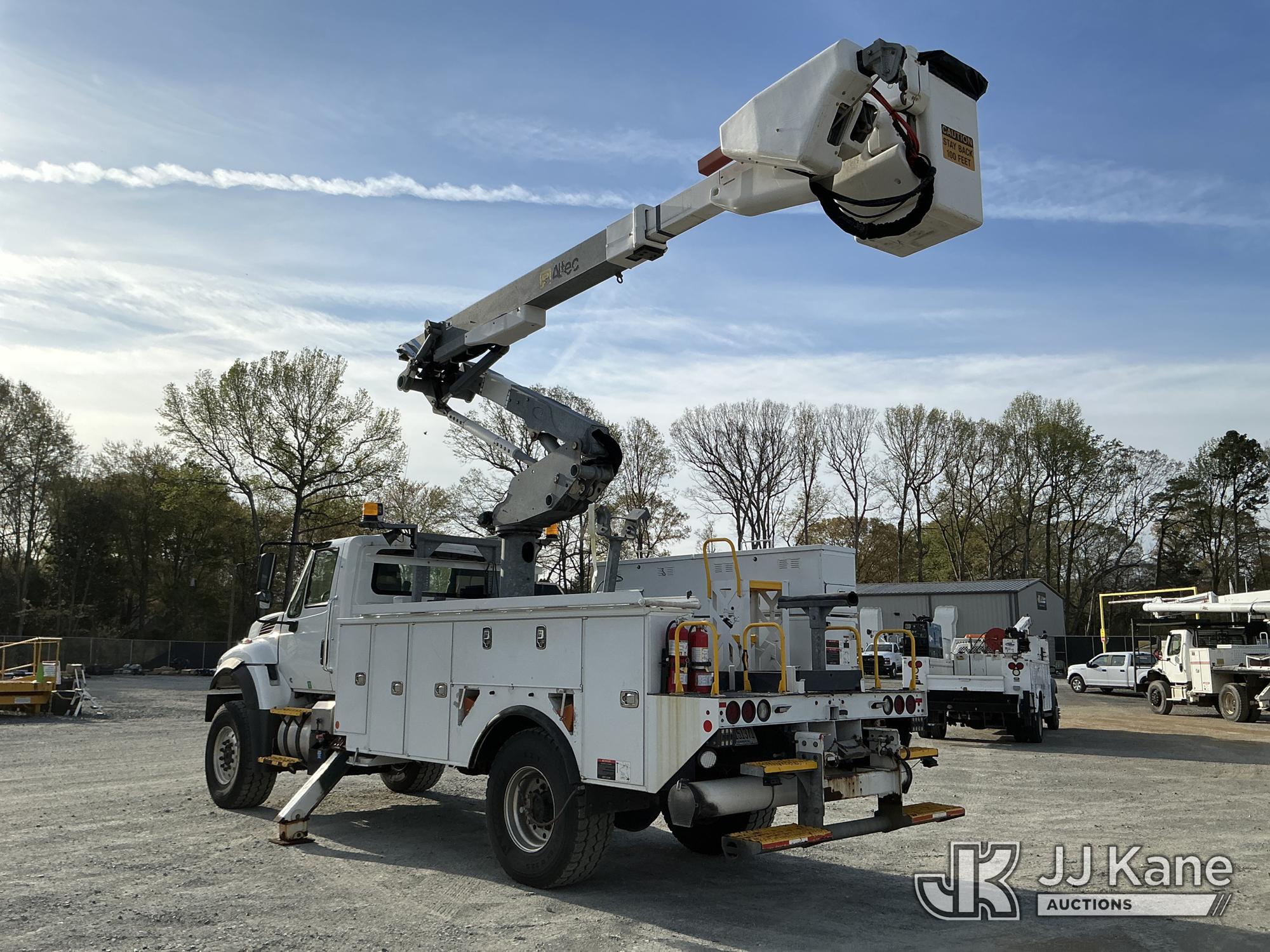 Altec TA41-MH, 45 ft, Articulating & Telescopic Material Handling Bucket Truck s/n 0718GH1170, with single man bucket & 2 hyd outriggers, rear mounted on 2019 International 7300 4X4 Utility Truck, Cummins 6.7L diesel, Auto, A/C, with Tire Boss Inflation System, (93,346 miles) (Runs, Moves & Upper Operates) (Maintenance Light On) (TITLE DELAY) This is a Titled Item*
